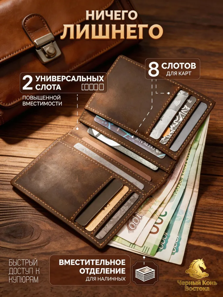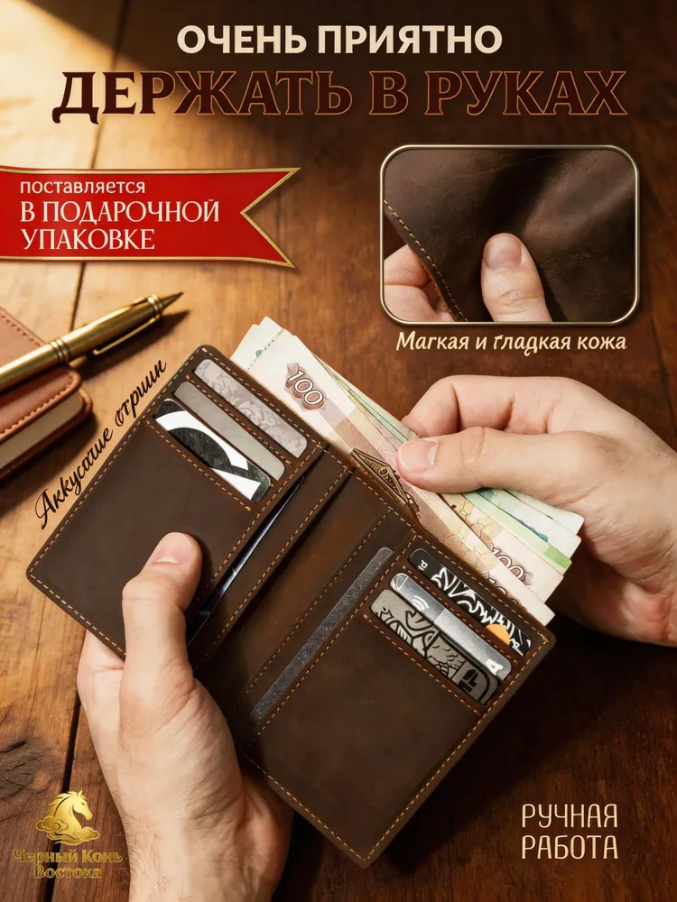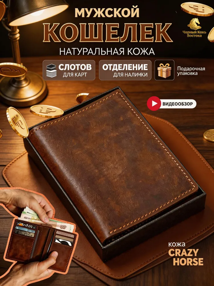 Кошелек мужской из натуральной кожи, кожаный портмоне, бумажник