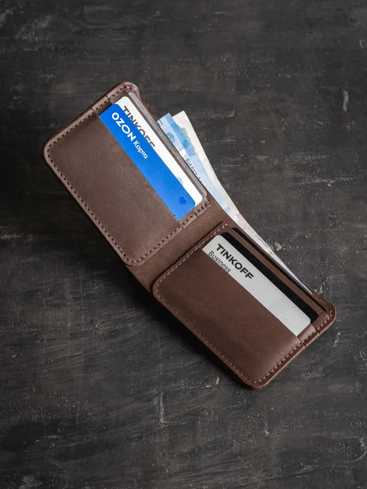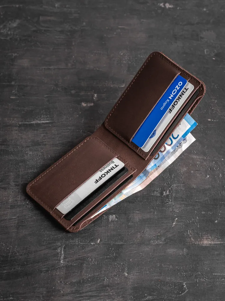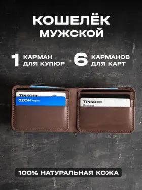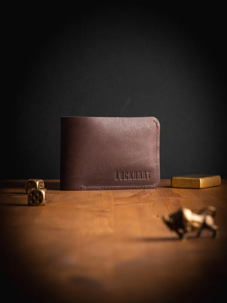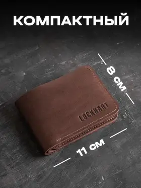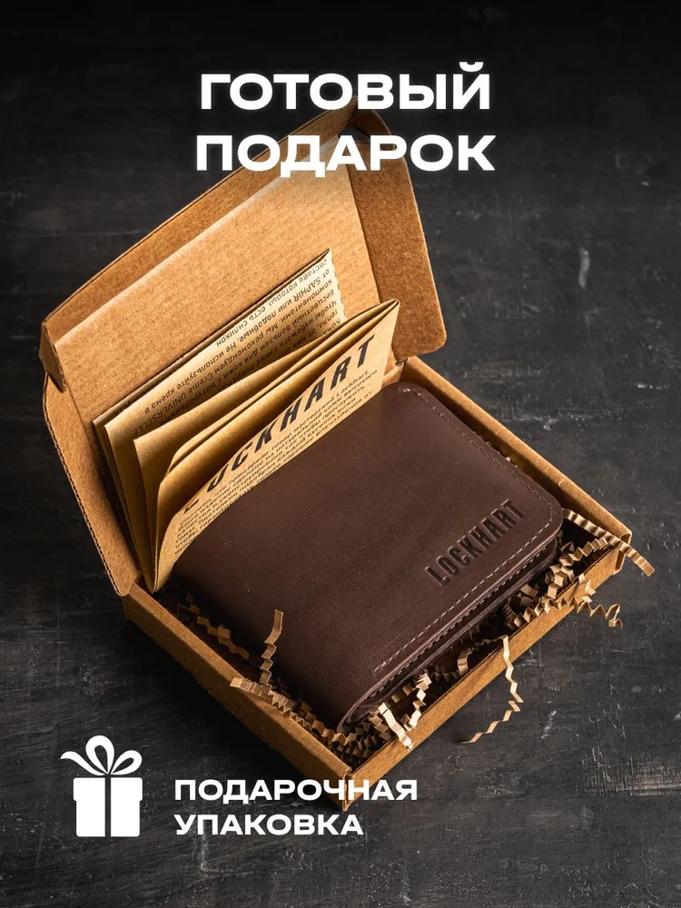 Кошелек из натуральной кожи Lockhart Кошелек разработан и сшита с любовью нашими мастерами, имеющими более 10 лет опыта работы с натуральной кожей. Наше производство автоматизировано, при этом каждое изделие проходит через руки мастера, что сохраняет дух индивидуального подхода и ручного труда. Бумажник имеет простой и стильный дизайн, выполнен из натуральной кожи коричневого цвета, прошит прочной нитью. Портмоне надежно предохранит ваши деньги и пластиковые карты. В кошелек поместятся: Купюры 6 пластиковых карт Поставляется в фирменной коробке нашего магазина.