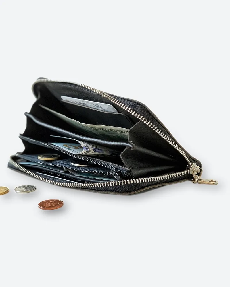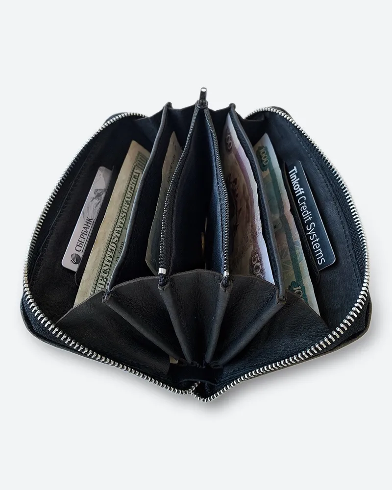 Большой кошелек из натуральной кожи • Внешние размеры 10см Х 19см (+/-5мм). Закрывается на молнию. • Вмещает в себя: бумажные купюры, банковские или дисконтные карточки, монеты. • Имеет 4 отделения для бумажных денег; 2 отделения для пластиковых карт; 1 отделение для мелочи на молнии. • Мы используем качественную плотную, но при этом мягкую кожу толщиной 1.2-1.4 мм. • Гладкая кожа достаточно устойчива к загрязнениям, легко протереть влажной тканью. • Изображение выжжено (не стирается и не трескается со временем). • Кошельки нашего бренда качественные и созданы для повседневного пользования взрослых мужчин или молодых женщин. • Женский кожаный кошелек – это идеальный подарочный вариант каждой женщине, девушке или девочке, коллеге или близкой подруге. Прекрасное дополнение любой сумки, рюкзака или портфеля. Картхолдер любимой маме (мамочке) на день матери или сестре на 8 марта. Любимому преподавателю на День учителя. • Портмоне – это роскошный подарок мужчине на день рождения (др). Стильные аксессуары брату или другу на 23 февраля (С Днём Защитника Отечества). Папе от дочки на Новый год (нг). Нужный подарок мужу на годовщину свадьбы или любимому парню ко Дню Святого Валентина (14 февраля). • Универсальные, классические, красивые аксессуары от кожевенной мастерской KAZA на праздники. Корпоративные подарки клиентам или коллегам. Презент российского производства начальнику или директору. • Ручная работа. • Производим с 2009 года.