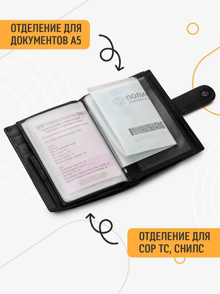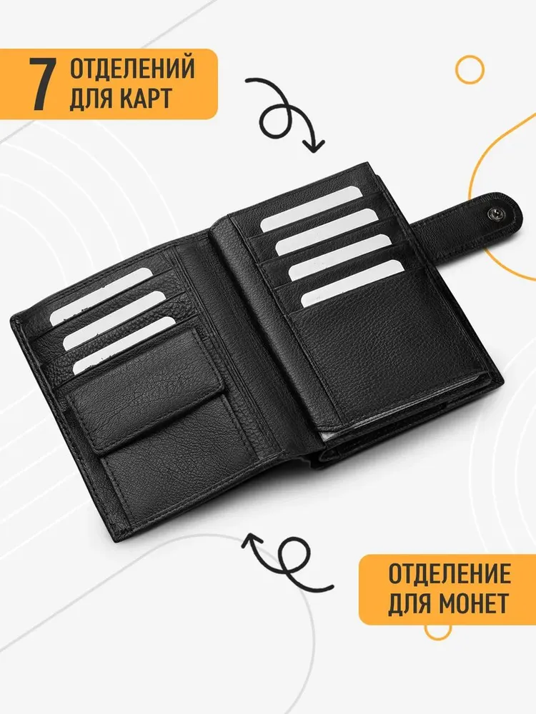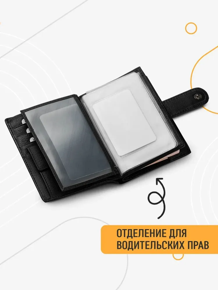 Элегантный мужской портмоне тип: ПОРТМОНЕ ВОДИТЕЛЯ. Черный графитовый портмоне выполнен из натуральной кожи, сочетая прочность и безупречный внешний вид. Он идеально подходит для повседневного использования благодаря продуманной компоновке: три отделения для купюр, двенадцать карманов для карт, специальные секции для документов, паспорта и фотографий. Функциональность и комфорт Застёжки на кнопках и молнии обеспечивают быстрый доступ к содержимому и надёжную защиту. Размеры (14 см высотой и 11 см шириной) позволяют удобно поместить его в сумку. Подкладка из плотной ткани добавляет долговечности конструкции. Подарок с гарантией качества Портмоне поставляется в подарочной упаковке, готовой к презентации. Бренд BERGINILUX гарантирует высокое качество исполнения и предлагает 60-дневную уверенность в покупке. Этот аксессуар станет незаменимым элементом образа современного мужчины.