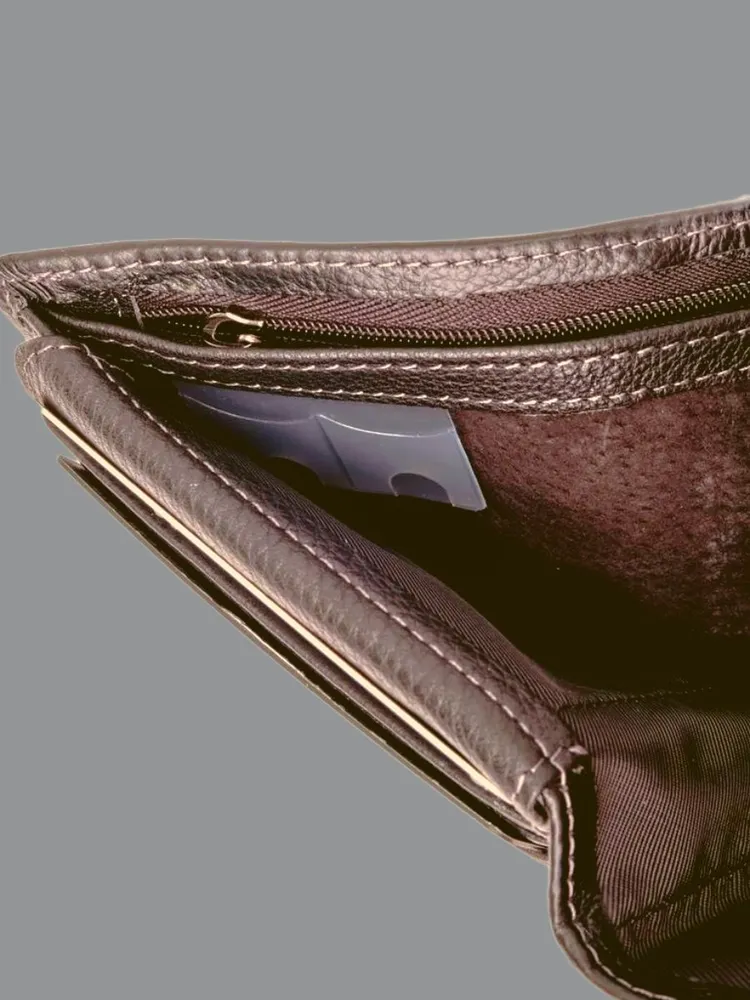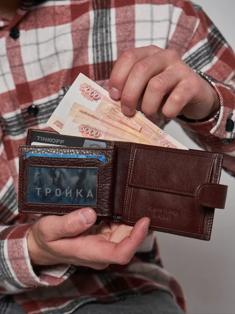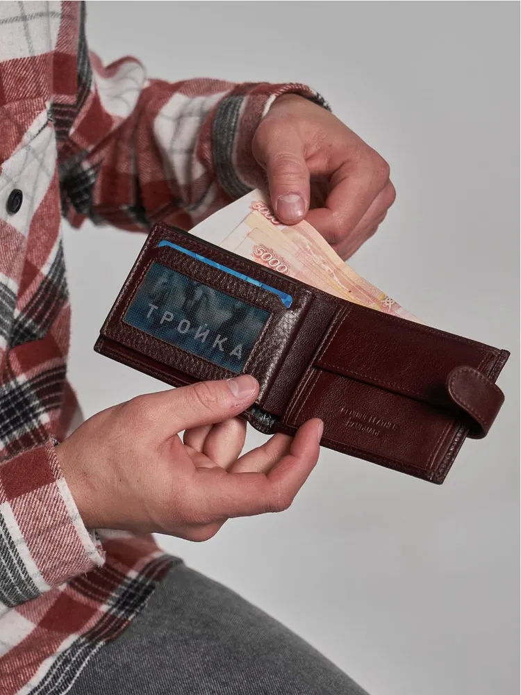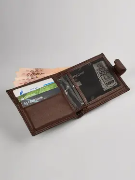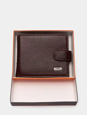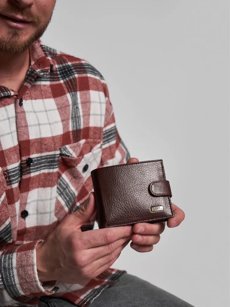 КОШЕЛЕК БУМАЖНИК ПОРТМОНЕ Минимализм! Высокий функционал! Натуральная кожа! Темно коричневый мужской кошелек из натуральной кожи идеально подойдёт не только для хранения купюр, но и для пластиковых карт или водительских прав. Складывается пополам и закрывается на заклёпку. Два больших отделения для крупных купюр со скрытым кармашком на молнии, монетница на кнопке, несколько отделений для карт, проездных, пропусков или водительских прав. Благодаря красивой коробке станет прекрасным подарком. Кошелек Портмоне Бумажник Удобный размер: 9,5х11х2см. Специально разработанный для вашего комфорта, этот кошелек легко помещается в карманы брюк, пиджака и рубашки, сохраняя ваш стиль в любой ситуации. Безопасное закрывание на кнопку: Ваши деньги и документы всегда под надежной защитой.