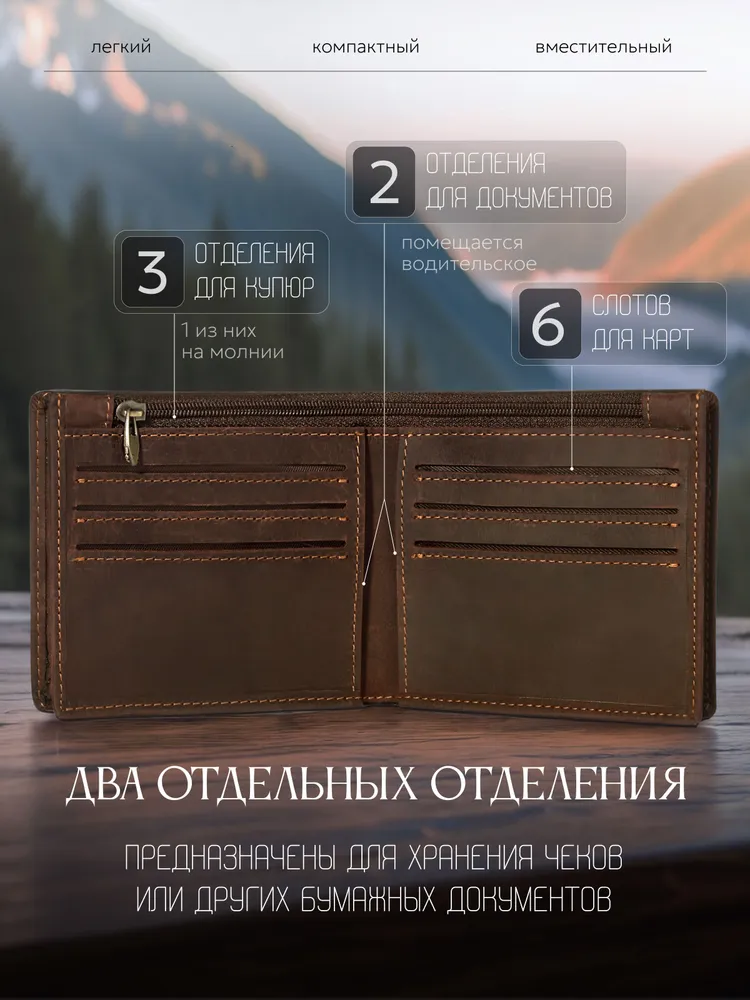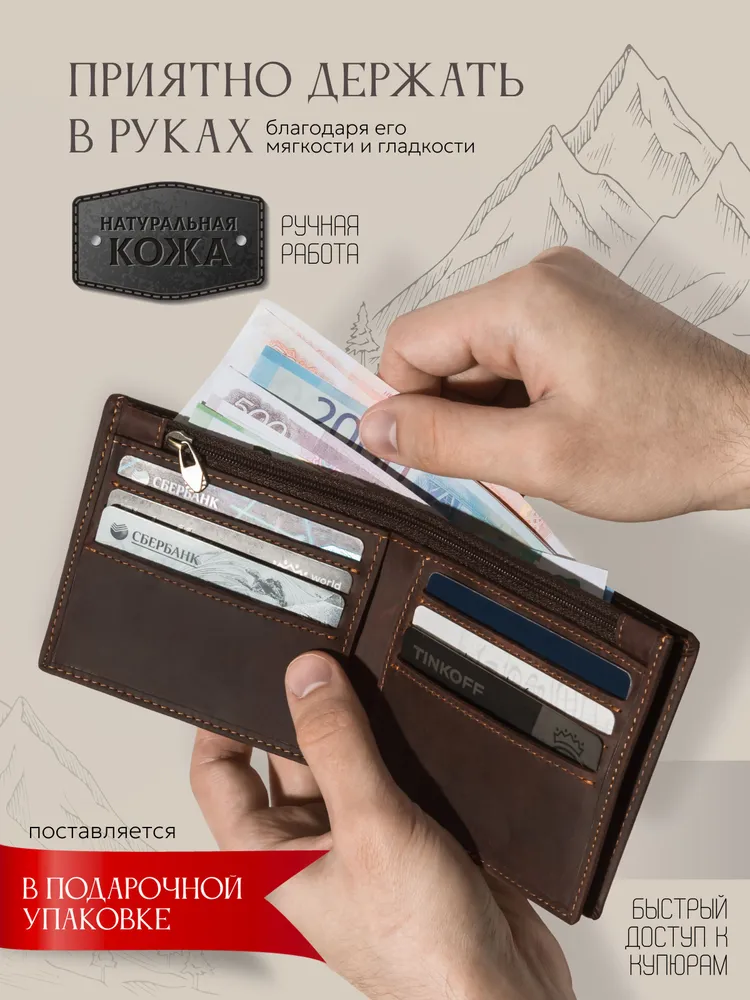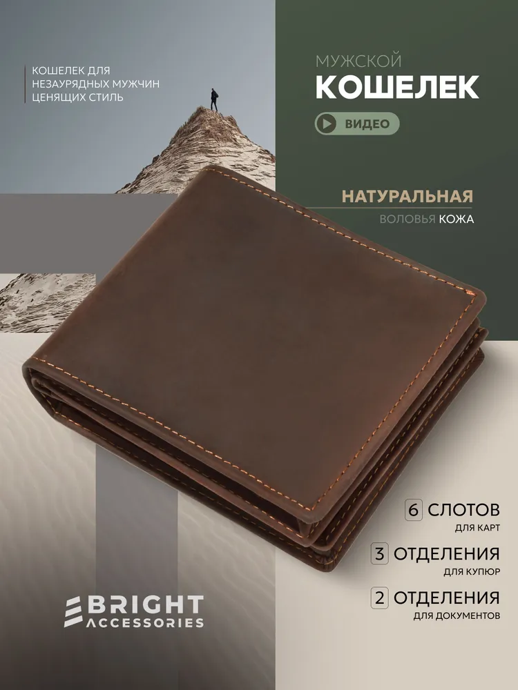 Кошелек мужской из натуральной кожи портмоне кожаный бумажник