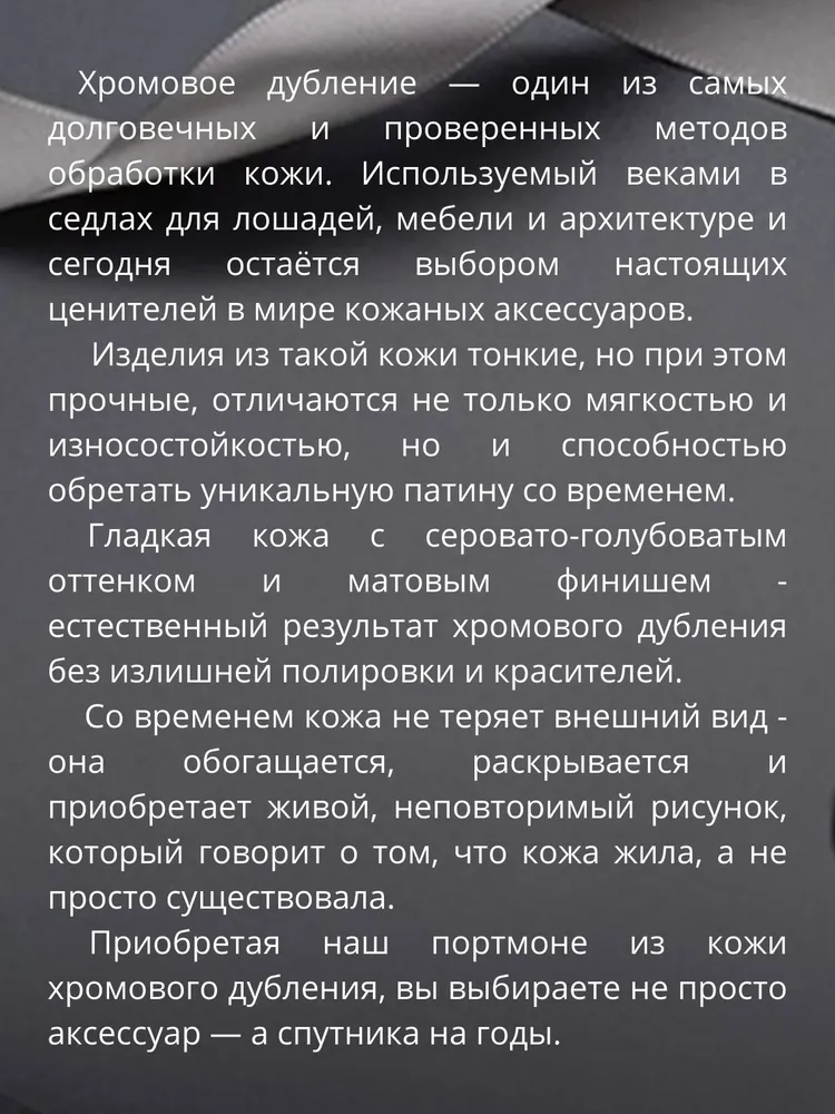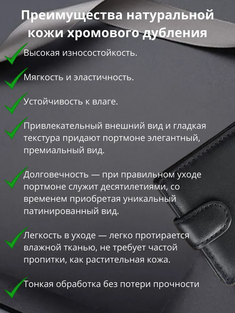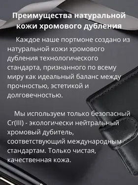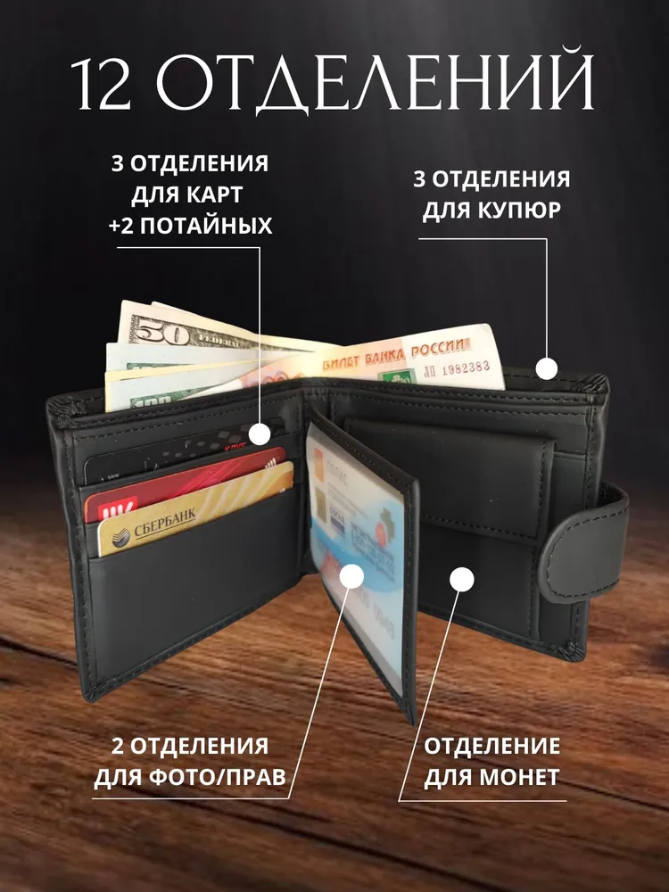 Кошелек мужской из натуральной кожи – это оригинальный и полезный подарок на день рождения мужчине. Сочетая стильный дизайн и высокое качество, он станет настоящим спутником в повседневной жизни. Выполненный из натуральной кожи хромового дубления этот портмоне не только выглядит эффектно, но и отличается высокой прочностью, что обеспечивает долговечность использования. Компактные размеры кошелька мужского кожаного делают его удобным для ношения в кармане или сумке, а множество отделений для карт и купюр позволяет организовать пространство максимально рационально. Это портмоне мужское натуральная кожа - отличный пример того, как можно соединить функциональность и элегантность. Кошелек мужской портмоне подходит как для повседневного использования, так и для особых случаев. Бумажник мужской станет отличным дополнением к любому образу, будь то деловой стиль или повседневный casual. Мужской кошелек из натуральной кожи станет не только практичным аксессуаром для хранения денег и карт, но и проявлением заботы и внимания. Кошелек мужской маленький – идеально подходит в качестве мужского подарка на любой повод и для любого возраста: • Подарок брату на день рождения • Подарок сыну на выпускной • Подарок сыну на последний звонок • Подарок подростку мальчику • Подарок на день рождения папе • Подарок сыну на день рождения взрослому • Подарок на 18 лет парню • Подарок на юбилей мужчине • Подарок парню на день рождения Выберите этот кожаный кошелек мужской из натуральной кожи и сделайте шикарный презент мужчине, который оценит качество и элегантность.
