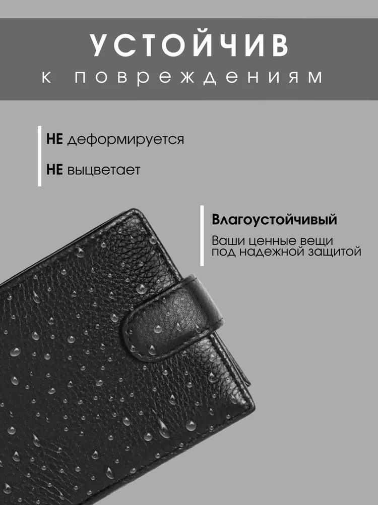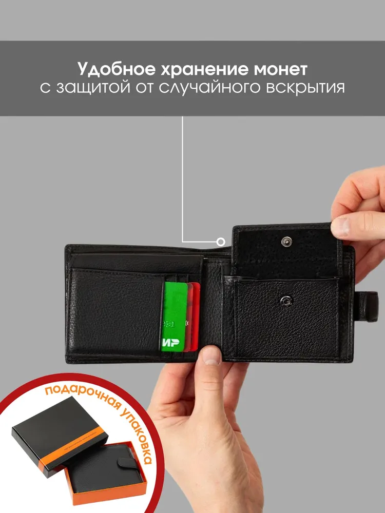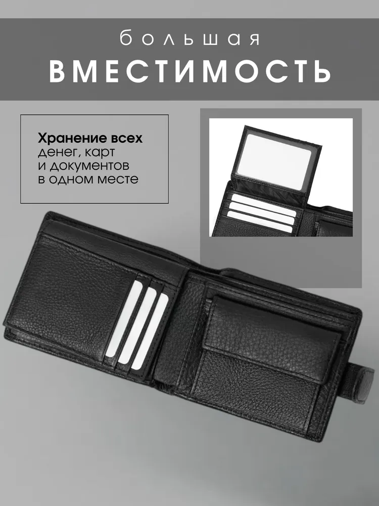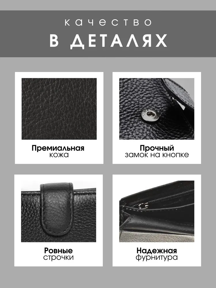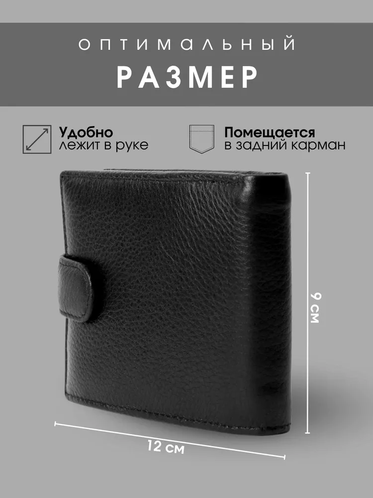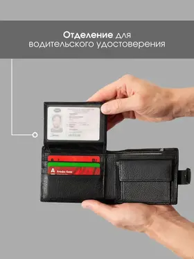 Классический аксессуар Представляем вашему вниманию мужское портмоне из натуральной кожи, созданное для тех, кто предпочитает практичность, элегантность и надежность в каждой детали. Это черное кожаное изделие сочетает в себе классический стиль и высокую функциональность, идеально подходя для современного мужчины. Продуманный функционал Главное преимущество этого портмоне — его продуманная структура. Внутреннее пространство спроектировано так, чтобы вместить все необходимое, включая права. Специальные отделения для карточек позволяют упорядочить ваши финансовые средства, обеспечивая быстрый доступ к ним, а надежная застежка на кнопке защищает содержимое. Практичность Изготовленное из натуральной кожи высочайшего качества, оно отличается износостойкостью и долговечностью, сохраняя свой безупречный вид даже при активном использовании. Этот мужской кошелек легко помещается в карман или сумку, не занимая много места благодаря своему компактному дизайну, что добавляет ему практичности в повседневной жизни. Внимание деталям Портмоне станет идеальным выбором для мужчин, которые водят машину и стараются всегда носить с собой автомобильные права. Оно является верным спутником в деловых и повседневных делах, подчеркивая ваш индивидуальный стиль и вкус. Это аксессуар, который добавляет уверенности и статуса, делая акцент на внимание к деталям. Подарок для себя или близкого человека Купить мужской бумажник из натуральной кожи — это не только удовлетворение повседневных нужд, но и явное свидетельство вашей требовательности к качеству и эстетике. Этот аксессуар будет отличным приобретением для себя или изысканным подарком для близкого человека, который ценит утонченные, но практичные вещи.