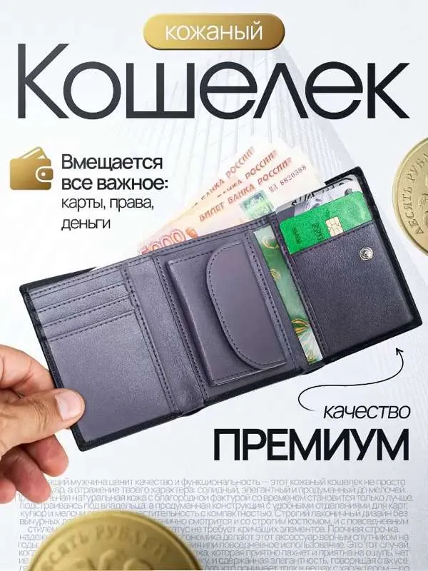 Кошелек мужской из натуральной кожи, портмоне мужское из натуральной кожи