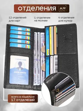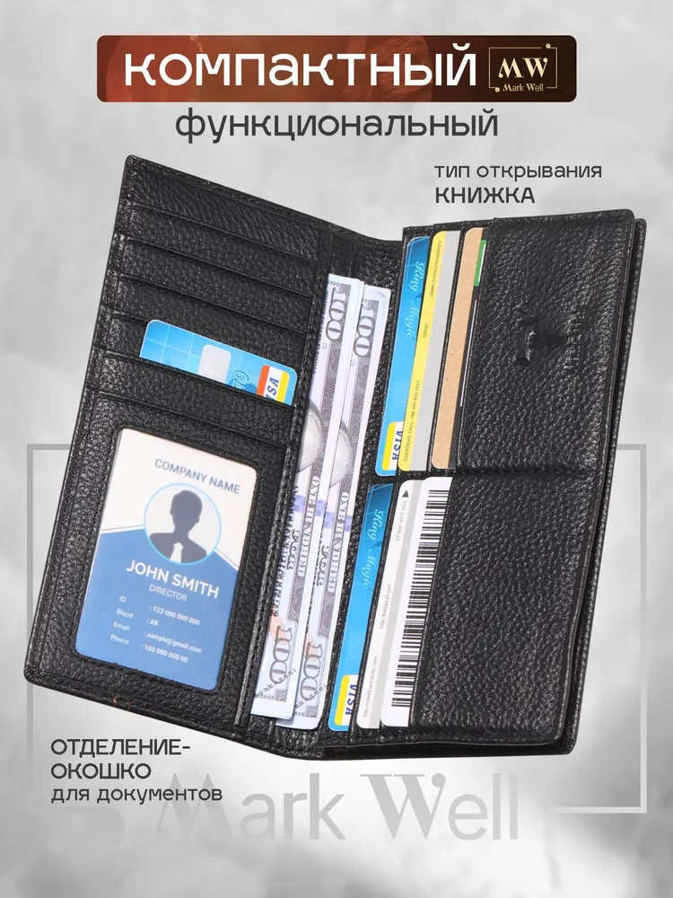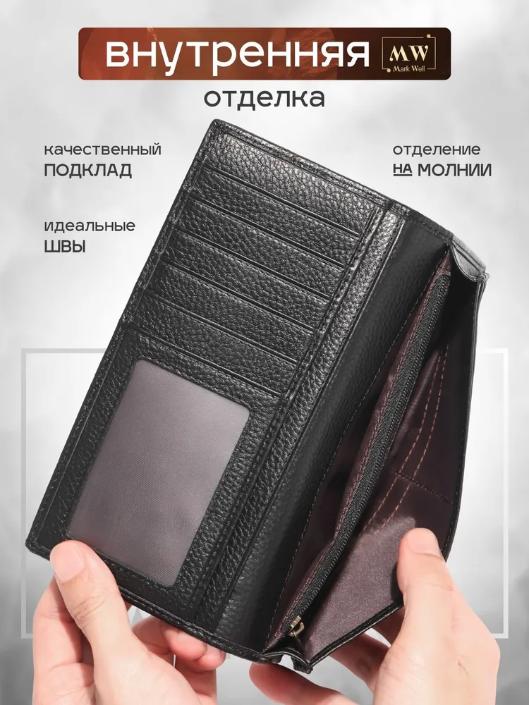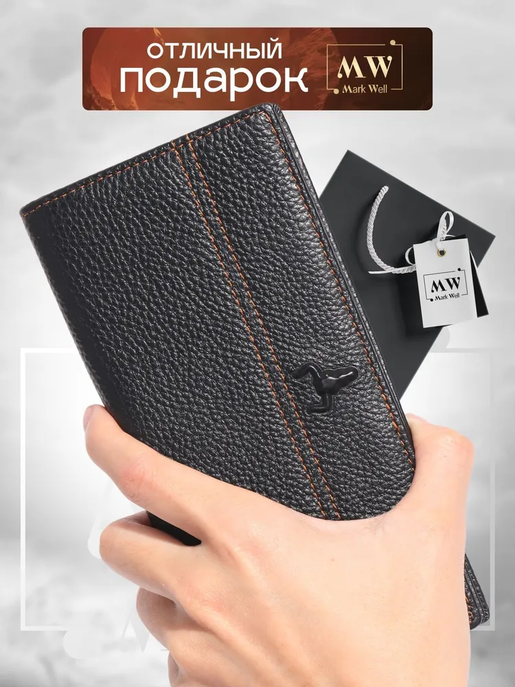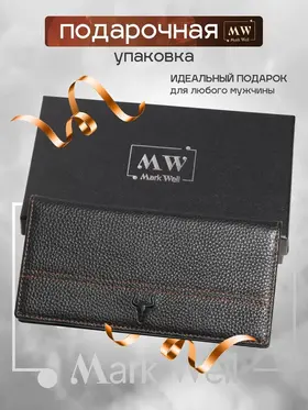Стильный мужской кошелёк из натуральной кожи Mark Well прекрасный аксессуар, завершающий образ успешного мужчины. Кожаный портмоне изготовлен из мягкой кожи премиум качества, которая не истирается и не царапается. Мужской клатч прослужит вам не один год и пригодится для хранения водительского удостоверения, банковских карточек и наличных. Вместительный кошелёк имеет 12 небольших кармашков для карт и 2 отделения для денег или других крупных предметов. Бумажник из натуральной кожи подойдёт под абсолютно любой стиль. Мужской лопатник станет идеальным подарком на день рождения и Новый год для мужчины, мужа и сына. Если вы остались довольны покупкой нашего лонгера из натуральной кожи, мы будем благодарны за положительный отзыв. Полный ассортимент товаров кошельки, портмоне и мужские бумажники Вы можете посмотреть, нажав на логотип бренда в карточке товара.