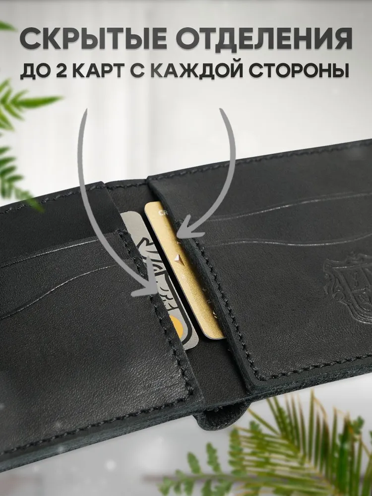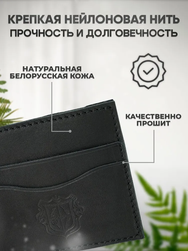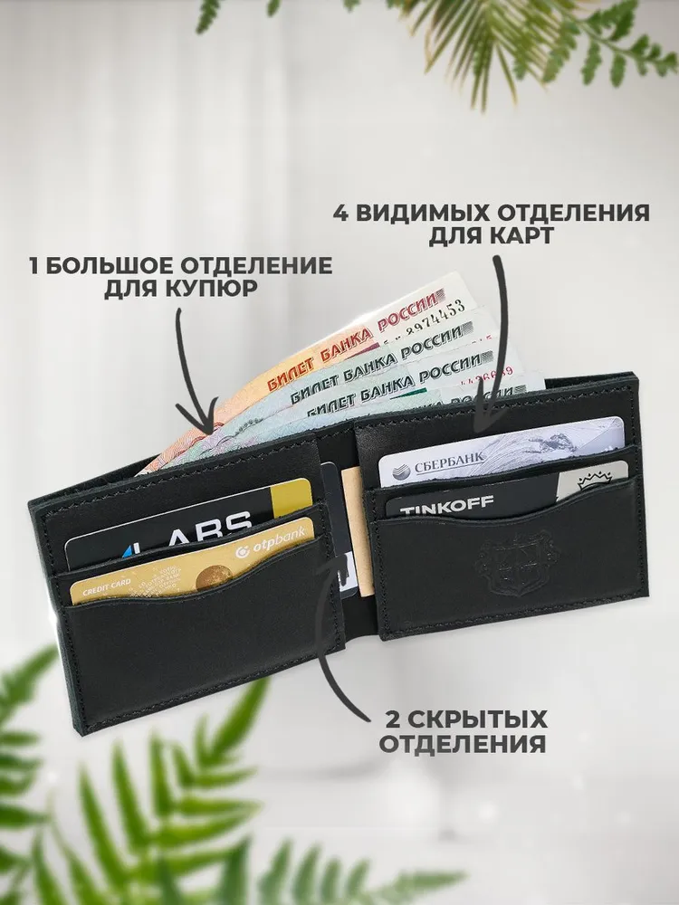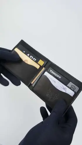 VM Leather Company - сделано с любовью Представляем к вашему вниманию кошелек ручной работы из натуральной белорусской кожи. Который сочетает в себе функциональность и минимализм, компактность и долговечность. Вместительность Данная модель имеет 1 большое отделение для купюр, 4 видимых отделения и 2 скрытых, всего помещается до 8 карт. Кошелек не имеет застежки, но продуманный дизайн не позволит ему открыться без вашего желания. Кошелек имеет небольшой размер (11х8,6х2 см), поэтому поместится в любую сумку или карман. Замечательный подарок Кошелек идеально подходит в качестве подарка для мужчины, брата, отца или друга, а также может стать стильным аксессуаром на любом мероприятии. Этот кошелек легко сочетается с любым стилем одежды и придется по вкусу многим мужчинам. Загляните в нашу коллекцию ремней Мы создаем высококачественные изделия из натуральной кожи ручной работы. Наша задача предоставить вам стильный аксессуар, который прослужит вам долгие годы. Мы ценим каждого нашего клиента. Спасибо что выбираете нас!