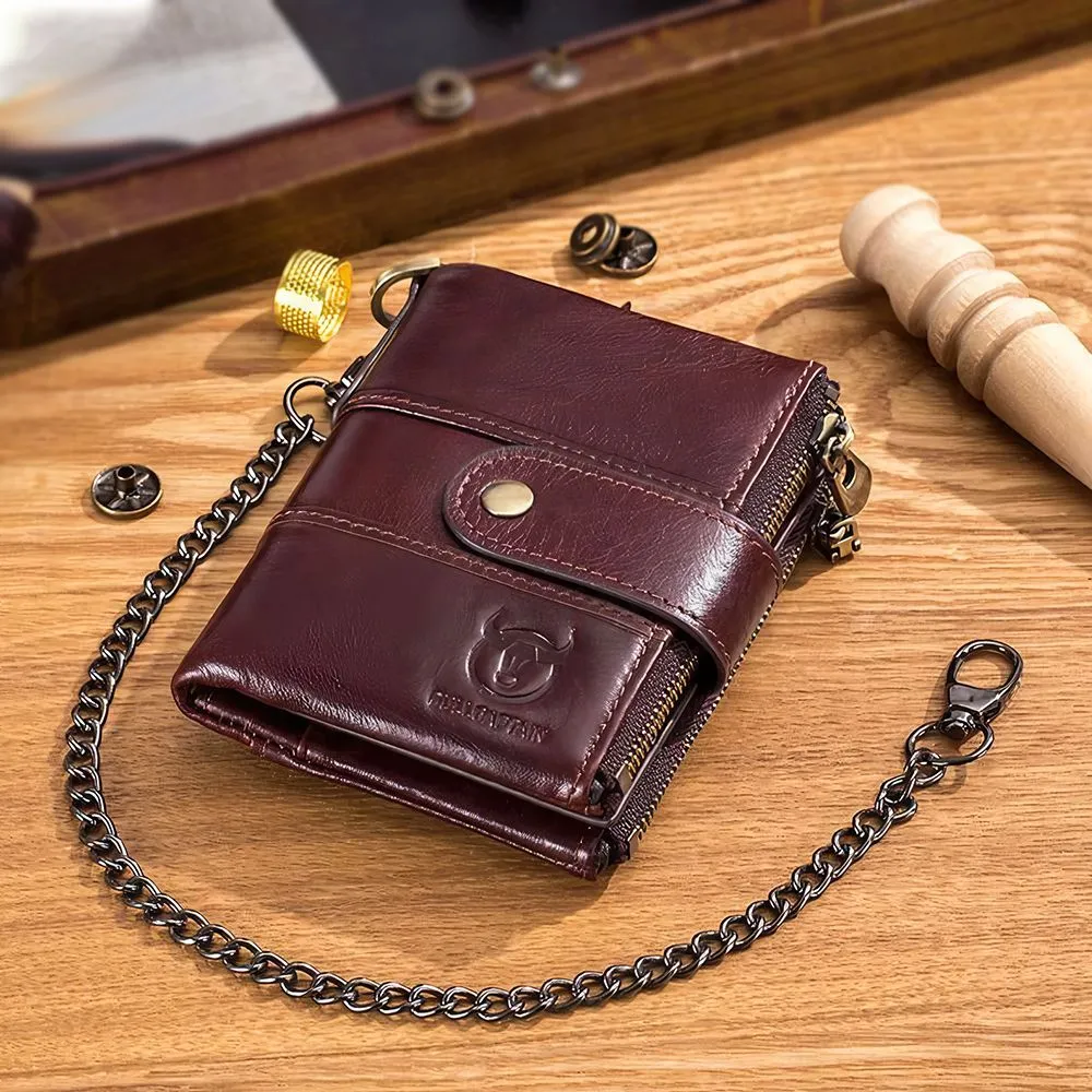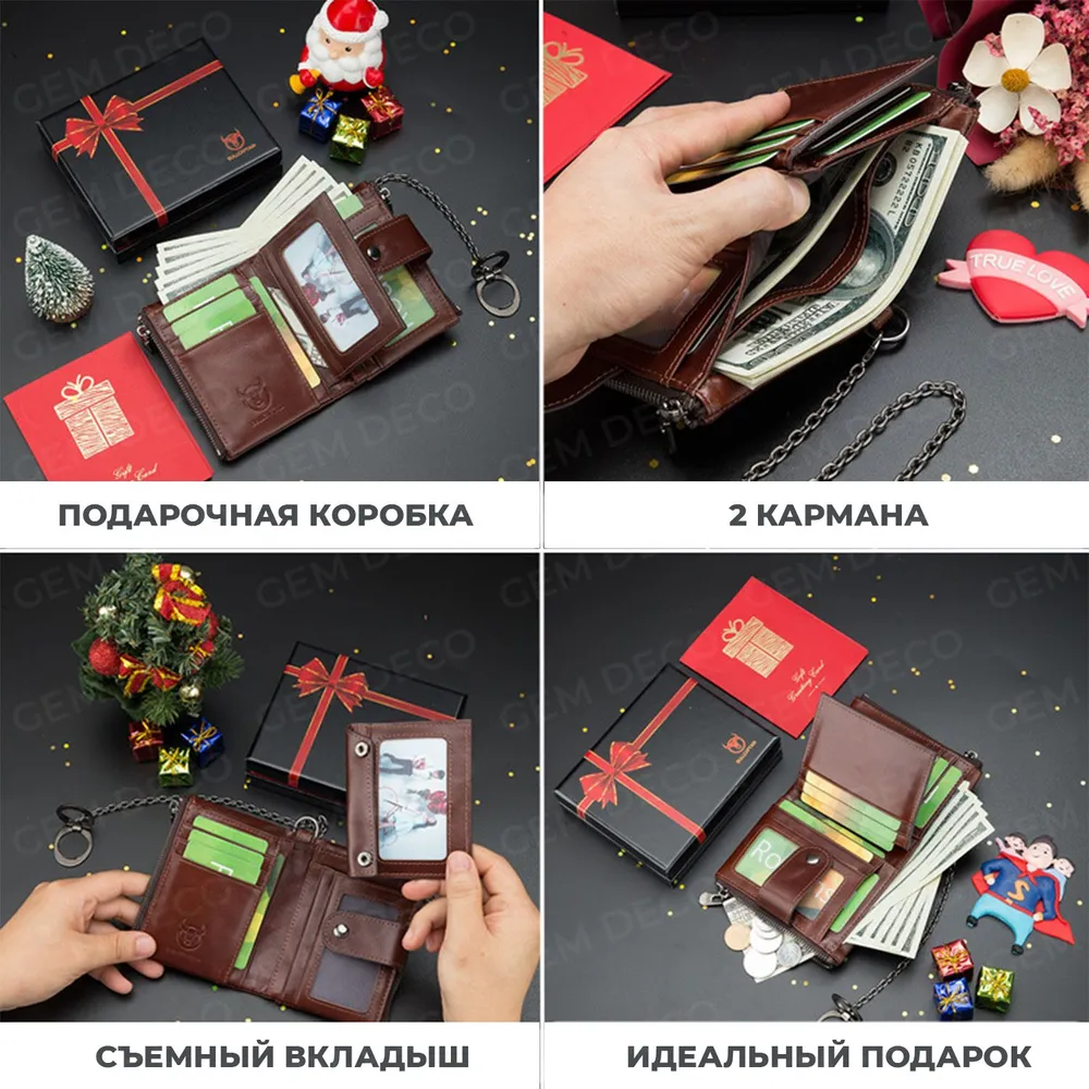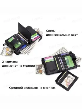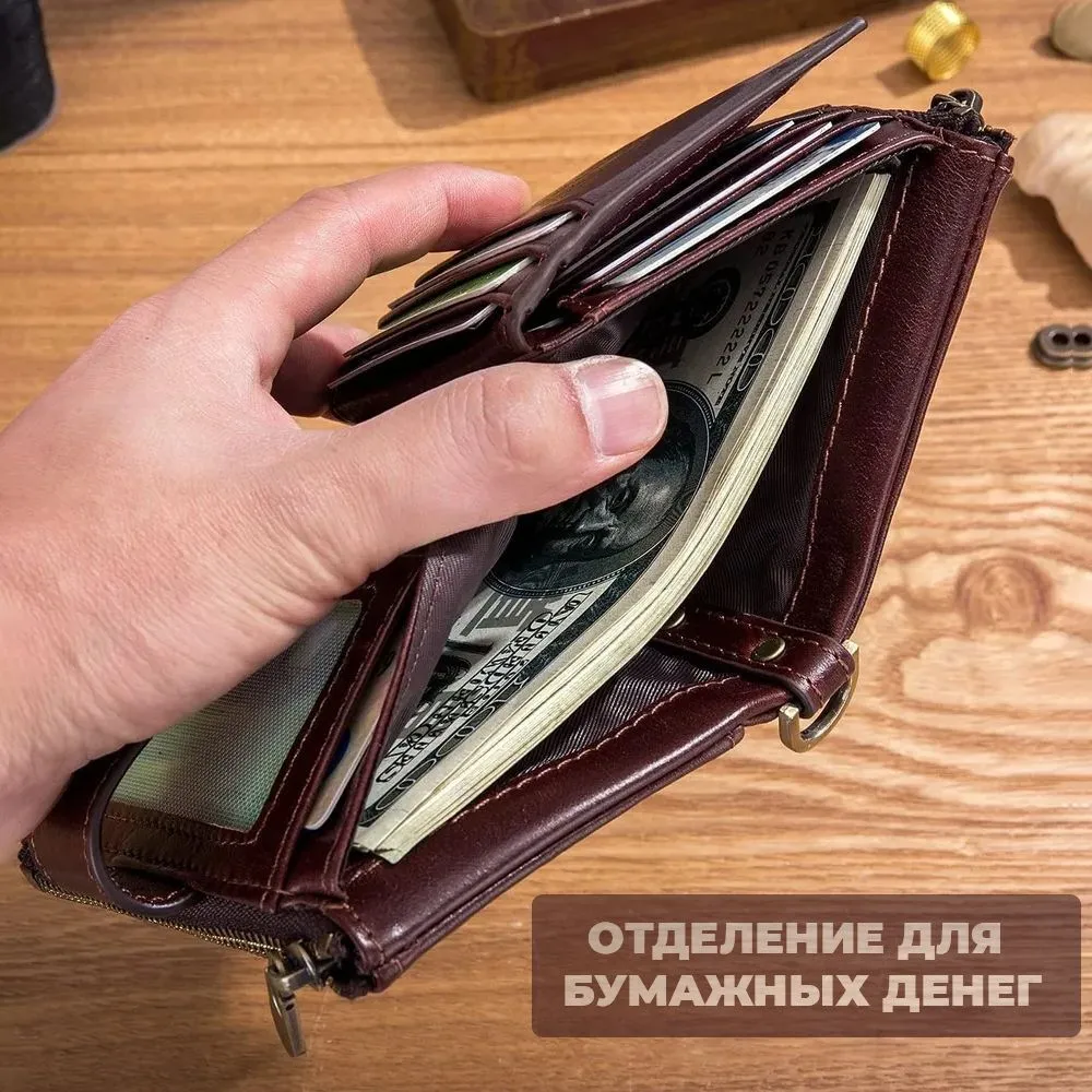 Кошелёк мужской из натуральной кожи с противоугонной цепочкой. Мужской кошелек изготовлен из натуральной кожи и прошит с точностью до деталей. Он может выдержать многократное трение и не будет поврежден. Размер кошелька 9*3*12 см. В этом кошельке есть 12 слотов для карт, 2 окна для удостоверений личности, 2 кармана для монет на молнии, 1 слот для наличных, много места для всех ваших потребностей. Кошелек большой емкости, съемный средний слой с окном для удостоверения личности , что делает его удобным и полезным в повседневной жизни. Оснащен технологией RFID SECURE, изготовлен из уникального металлического композита, разработанного специально для блокировки сигналов RFID, защиты вашей информации от несанкционированного сканирования. Кошелек предлагает безопасность и конфиденциальность на высшем уровне. Одновременно практичный и безопасный, идеально подходит для путешествий, активного отдыха, спорта, работы. Он был разработан для человека взрослого, который ценит красивую эстетику, первоклассное качество, стильный дизайн. Кошелек с противоугонной цепочкой, предотвращает случайное соскальзывание или кражу кошелька. Это один из самых особенных подарков для мужа, дней рождения, юбилеев, Рождества и других особых случаев. Кошелек будет лучшим выбором. Благородный и практичный бумажник для мужчин.