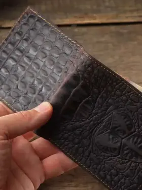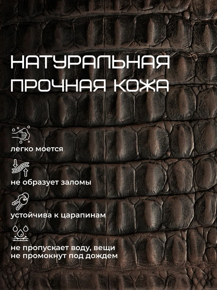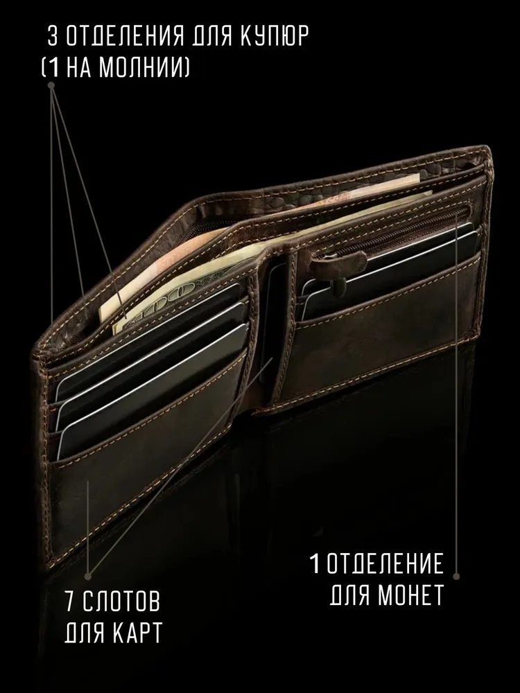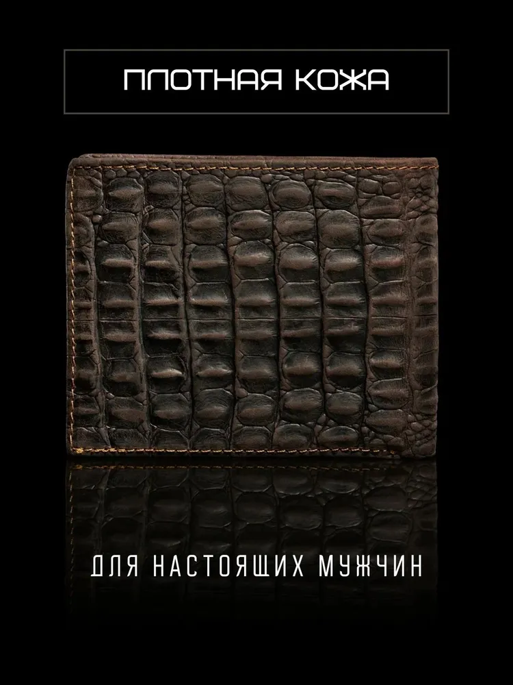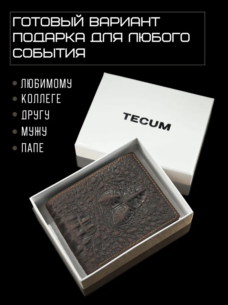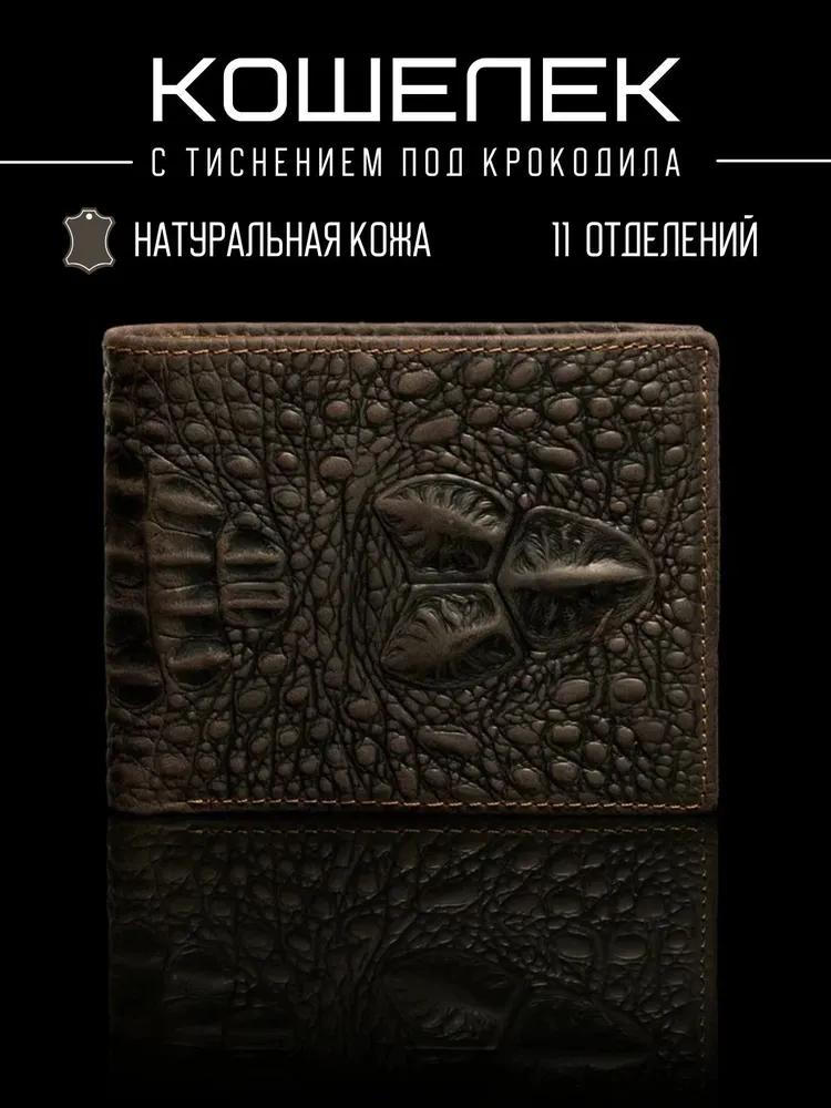 Незаменимый мужской аксессуар. - Натуральная кожа - Удобный и функциональный - Премиальное качество Узнайте больше в описании ↓ Стильный кошелек из натуральной кожи с тиснением под крокодила. Полезный мужской аксессуар для всех, кто хочет держать важные мелочи, карты и вещи всегда под рукой. Натуральная плотная кожа с тиснением под крокодила - все это подчеркнет ваш статус и хороший вкус. Компактный. При своей высокой функциональности, кошелек занимает весьма мало места в кармане, сумке или рюкзаке. Прочный и надежный. Материал кошелька надежный, износостойкий, не поддается стиранию и механическим повреждениям. Качественная прошивка и фурнитура позволит прослужить кошельку долгое время. Вместительный. Несмотря на компактный размер, в бумажнике 11 отделений для мелочи, прав, карт, купюр или документов! Удобный и элегантный. Красивая расцветка в коричневом оттенке и приятное тиснение под крокодила понравятся каждому любителю оригинальных аксессуаров. Кожа отличается фактурой с необычным и приятным ощущением в руках и обладает высокой прочностью и устойчивостью к повреждениям. Идеальный мужской презент! Вы можете использовать этот кошелек повседневно, так и в качестве оригинального презента! Красивая и плотная подарочная коробка в комплекте, в которой вы смело можете дарить кошелек дорогим, важным и близким вашим людям. Стиль в каждом движении. Кошелёк легко помещается в карман, не утяжеляет и выглядит эффектно. Минимум лишнего — максимум уверенности и вкуса. Добро пожаловать в наш магазин бренда TECUM! Пользуйтесь с удовольствием нашими изделиями! Кликайте на фото, заходите к нам на страничку и выбирайте подходящие для вас или ваших близких аксессуары нашего магазина под ваш стиль жизни. Спасибо за выбор нашего магазина. Ваш бренд TECUM!