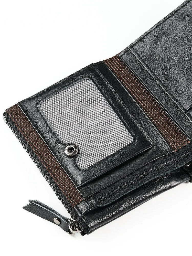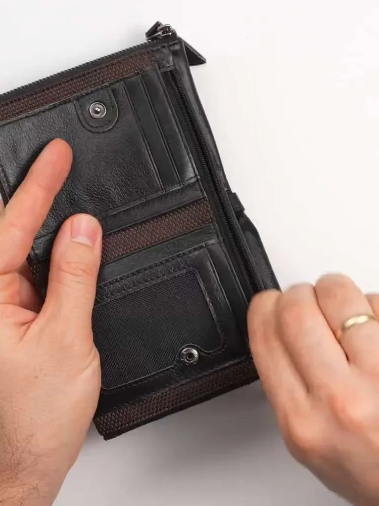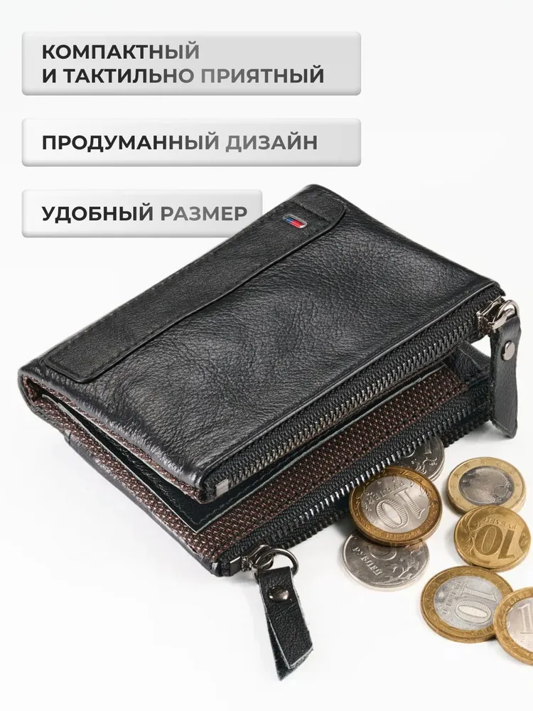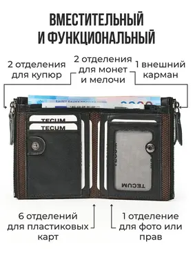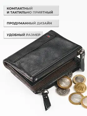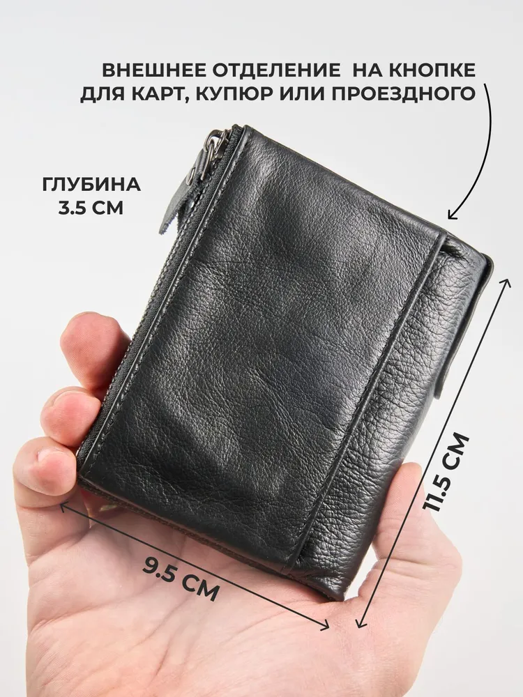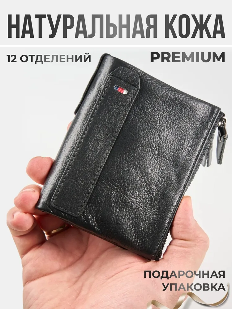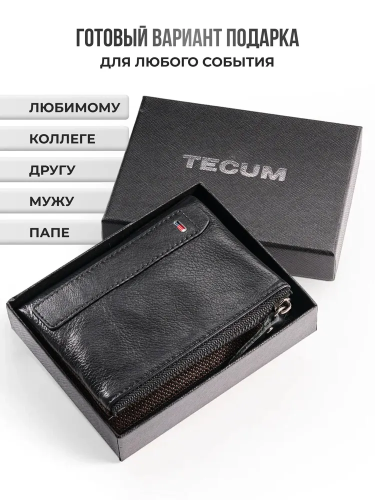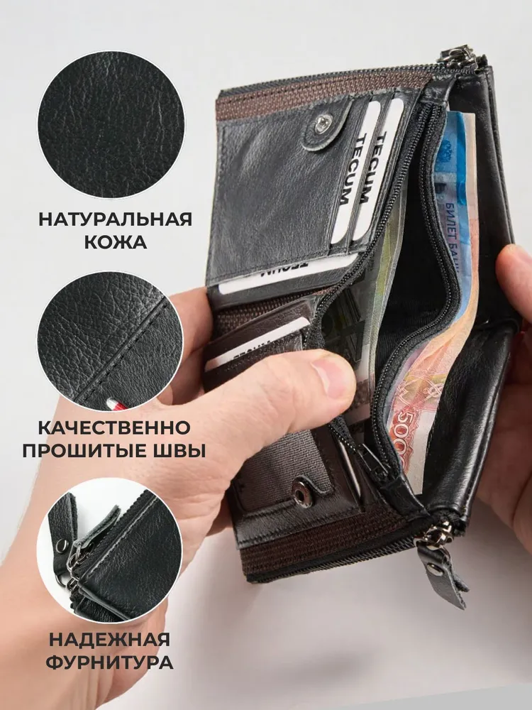 Незаменимый мужской аксессуар. - Натуральная кожа - Удобный и функциональный - Премиальное качество Узнайте больше в описании ↓ Стильный черный кошелек из натуральной кожи. Полезный мужской аксессуар для всех, кто хочет держать важные мелочи, карты и вещи всегда под рукой. Натуральная кожа, классический и строгий внешний вид - все это подчеркнет ваш статус и хороший вкус. Компактный. При своей высокой функциональности, кошелек занимает весьма мало места в кармане, сумке или рюкзаке. 2 внешних аккуратных молнии позволяют вместить дополнительные важные мелочи или монеты. Прочный и надежный. Материал кошелька надежный, износостойкий, не поддается стиранию и механическим повреждениям. Качественная прошивка и фурнитура позволит прослужить кошельку долгое время. Вместительный. Несмотря на компактный размер, в бумажнике 12 отделений для прав, карт, купюр, документов и мелочи! Удобный и элегантный. Красивая расцветка в базовом черном цвете понравятся каждому любителю оригинальных аксессуаров. Кожа отличается мягкостью и приятна на ощупь, обладает высокой прочностью и устойчивостью к повреждениям и влаге. Идеальный мужской презент! Вы можете использовать кошелек как повседневно, так и в качестве презента! Красивая и плотная подарочная коробка, в которой вы смело можете дарить кошелек дорогим, важным и близким вашим людям. Подчеркни свой стиль и статус Аксессуар, который говорит о вкусе без слов. Лаконичный дизайн, качественные материалы и удобство — всё, что нужно современному мужчине. Добро пожаловать в наш магазин бренда TECUM! Кликайте на фото, заходите к нам на страничку и выбирайте подходящие для вас или ваших близких аксессуары нашего магазина под ваш стиль жизни. Спасибо за выбор нашего магазина. Ваш бренд TECUM!