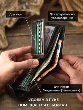 Незаменимый мужской аксессуар. - Натуральная кожа - Удобный и функциональный - Премиальное качество Узнайте больше в описании ↓ Стильный кошелек из натуральной кожи. Полезный мужской аксессуар для всех, кто хочет держать важные мелочи, карты и вещи всегда под рукой. Натуральная кожа, классический и строгий внешний вид - все это подчеркнет ваш статус и хороший вкус. Компактный. При своей высокой функциональности, кошелек занимает весьма мало места в кармане, сумке или рюкзаке. Внешняя аккуратная молния вдоль кошелька позволяет вместить дополнительные важные мелочи или купюры. Прочный и надежный. Материал кошелька надежный, износостойкий, не поддается стиранию и механическим повреждениям. Качественная прошивка и фурнитура позволит прослужить кошельку долгое время. Вместительный. Несмотря на компактный размер, в бумажнике 15 отделений для прав, карт, купюр или документов! Качество на лицо. Красивая расцветка в коричневом оттенке и приятное тиснение понравятся каждому любителю оригинальных аксессуаров. Кожа отличается мягкостью и очень приятна на ощупь, обладает высокой прочностью и устойчивостью к повреждениям. Идеальный мужской презент! Вы можете использовать кошелек как повседневно, так и в качестве презента! Красивая и плотная подарочная коробка, в которой вы смело можете дарить кошелек дорогим, важным и близким вашим людям. Подходит каждому мужчине. Идеален для офиса, путешествий, деловых встреч и повседневного использования. Кошелёк удобно помещается в карман, при этом вмещает всё необходимое. Отличный выбор для тех, кто ценит порядок, качество и современный стиль. Добро пожаловать в наш магазин бренда TECUM! Пользуйтесь с удовольствием нашими изделиями! Кликайте на фото, заходите к нам на страничку и выбирайте подходящие для вас или ваших близких аксессуары нашего магазина под ваш стиль жизни. Спасибо за выбор нашего магазина. Ваш бренд TECUM!