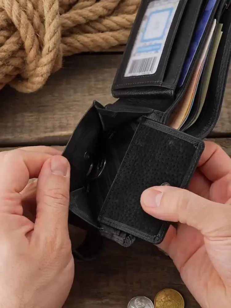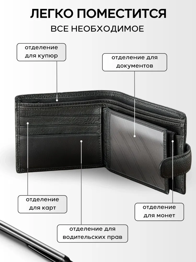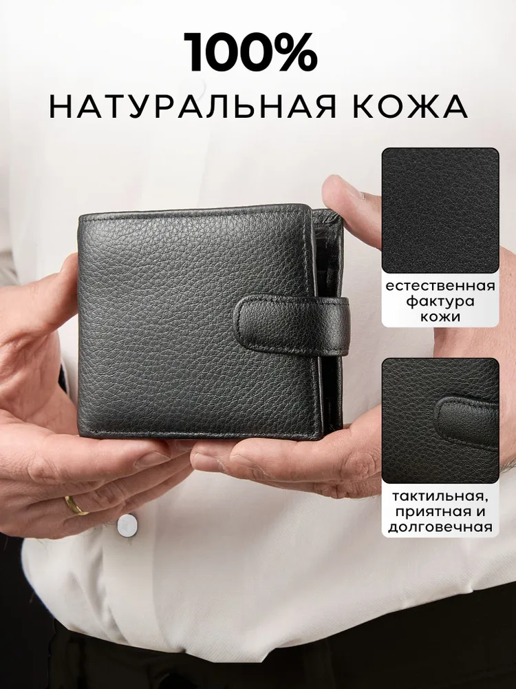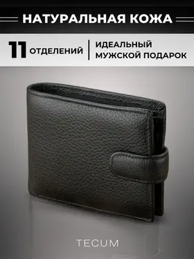 Классика всегда в моде Мужской кожаный кошелек - портмоне выполнен в классическом стиле, а классика всегда в моде. Став обладателем данной модели, вы подчеркнете свой хороший вкус! Качество в вашей руке! Портмоне выполнен из высококачественной кожи премиум класса. Кожа мягкая и приятная на ощупь, пользоваться таким портмоне одно удовольствие. Ровные швы и качественная фурнитура, благодаря которым кошелек прослужит вам долгое время! Вместительность. Внутри бумажника все максимально продумано! Есть два отделения для купюр и одно скрытое отделение под молнией. 6 отделений под пластиковые карты 2 отделения под права или другие документы. Мелочь под рукой В кошельке есть удобное отделение для монет, которое надежно закрывается на прочную стальную кнопку. Благодаря этому мелочь не смешивается с купюрами и не высыпается. Прочность и надежность. Качественная и прочная фурнитура позволит прослужить вашем кошельку долгое время. Стиль. Качество. Дизайн. Удобно держать в руке и найти все необходимое. Благодаря ровным швам и качественной фурнитуре, кошелек прослужит вам долгое время! Кошелек мужской – это базовый аксессуар который должен быть у каждого мужчины или автовладельца. Идеальный мужской презент. Красивая и плотная подарочная коробка, в которой вы смело можете дарить наш портмоне дорогим и близким вашим людям. Добро пожаловать в наш магазин бренда TECUM! Пользуйтесь с удовольствием нашими изделиями! Кликайте на фото и заходите к нам на страничку и выбирайте подходящие для вас или ваших близких аксессуары нашего магазина под ваш стиль жизни. Спасибо за выбор нашего магазина. Ваш бренд TECUM!
