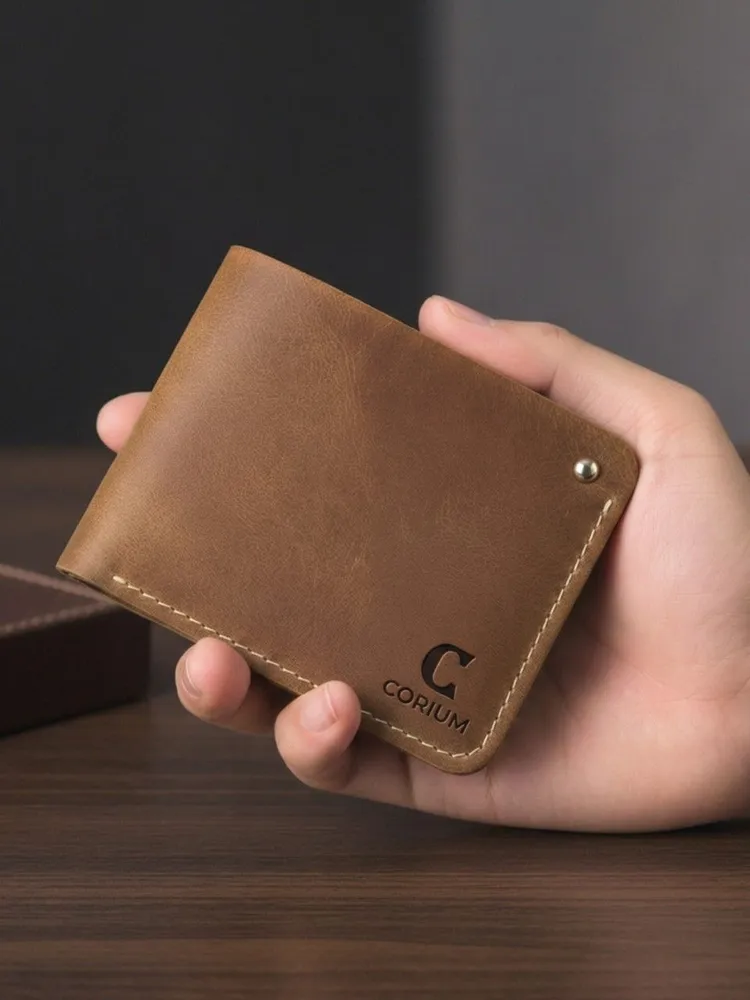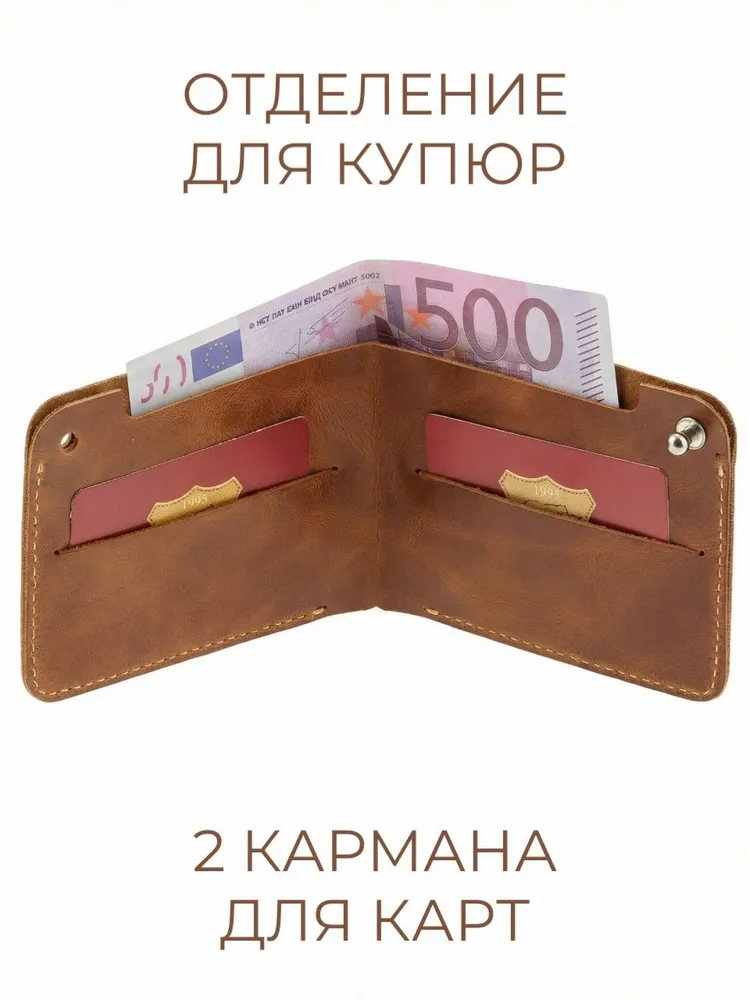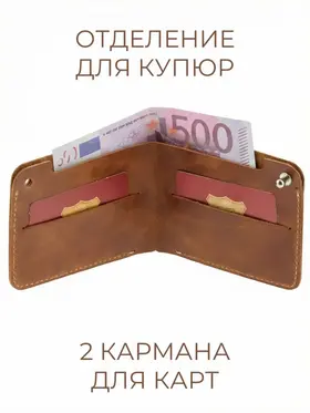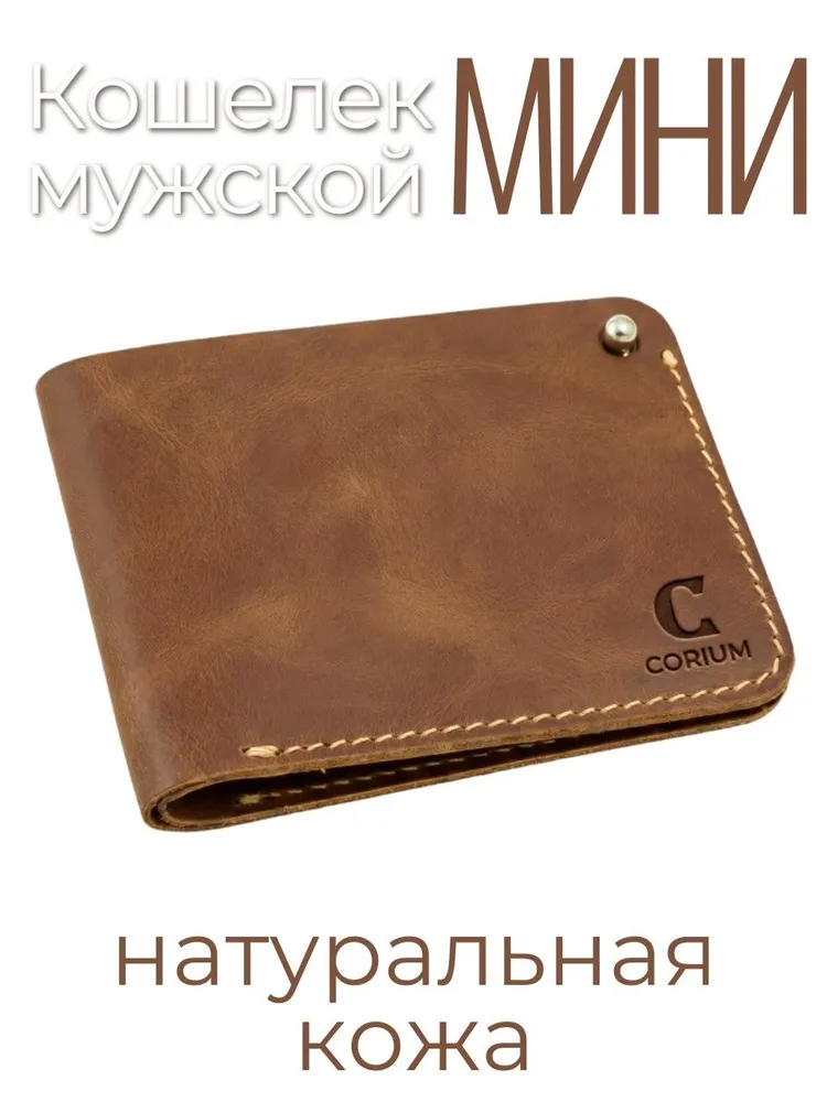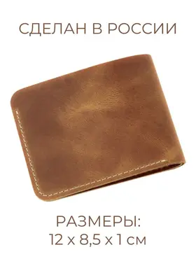 Кошелек из натуральной кожи CORIUM, цвет коричневый Мужской кошелек на кабурной кнопке из натуральной кожи. Внутри отделение для купюр, 2 кармана для карт. Кожа Pull‑up — премиальная анилиновая кожа, щедро пропитанная маслами и воском. Ее магия раскрывается в динамике: при сгибе и натяжении масла смещаются, высветляя участок. Так появляется знаменитая мраморная фактура. Размеры: 116х85х10 мм Производство: Россия