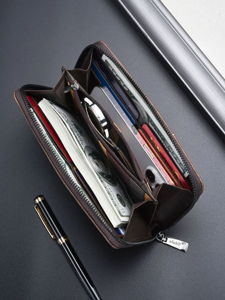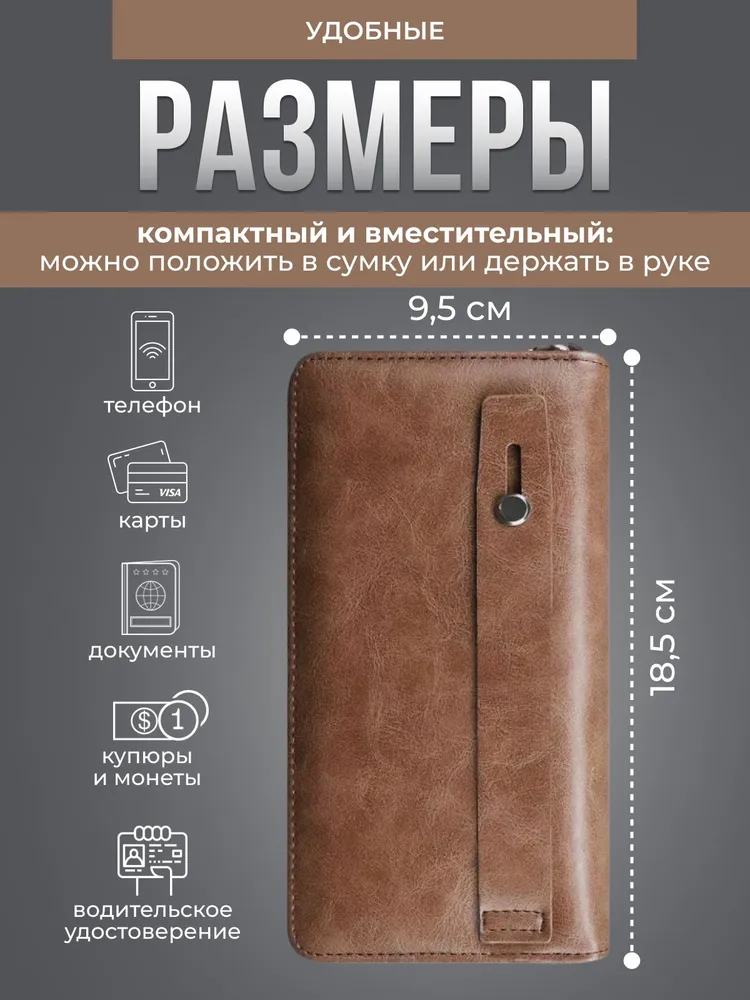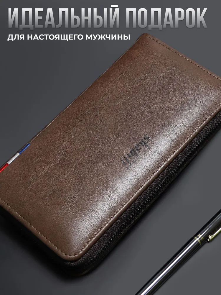 Кошелек мужской кожаный на каждый день. Отличный вариант для подарка: товар упакован в презентабельную коробку. Идеальное сочетание качества, стиля и доступной цены! При производстве используется искусственная кожа премиального качества, ручная бережная работа и детальная обработка. В комплекте крепкий ремешок на запястье - можно использовать как портмоне. Все змейки отлично работают - каждая проходит проверку перед отправкой. Стильный клатч подойдет как для повседневного использования, так и для мероприятий. Кожа данного бумажника отличается прочностью и отсутствием резких неприятных запахов. Натуральное производство эко кожи позволяет материалу этого кошелька быть очень приятным на ощупь, от чего кошелёк не захочется выпускать из рук. Большой размер. Отличный картхолдер: есть множество вместительных отделений специально для карт или карточек, водительских прав, визиток и телефона. Материал изготовления - премиальная экокожа. Деловой кошелёк – отличный вариант на праздник. Такой подарок подойдет и на Новый Год, и на 23 февраля, а также на день рождения или годовщину. Данное портмоне на молнии отлично выступит как подарок для парня, мужа, папы или друга. В линейке представлены два цвета: черный и темно-коричневый.