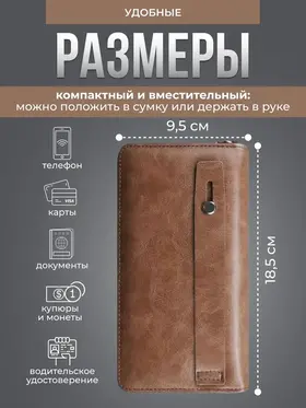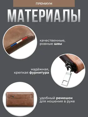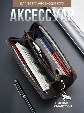 Кошелек мужской кожаный, портмоне на запястье, клатч