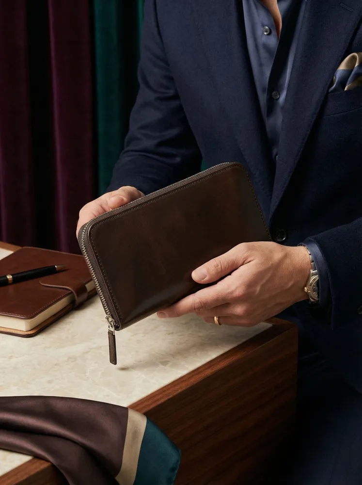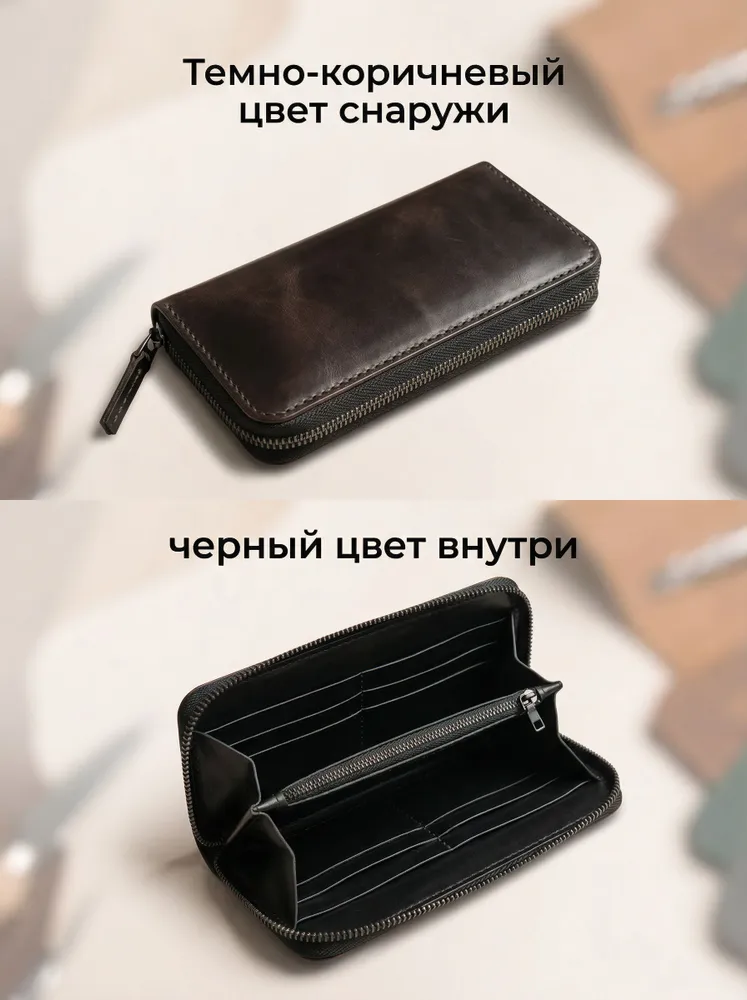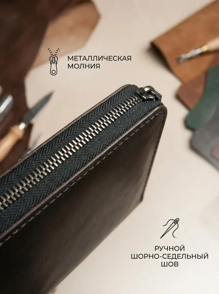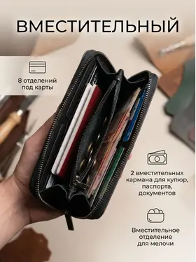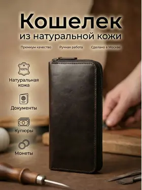 Практичный и стильный аксессуар — кошелек Leather Touch на молнии, выполненный из натуральной кожи. Это решение для тех, кто ценит сохранность содержимого и предпочитает надежную фиксацию отделений. Молния плавно скользит и защищает купюры и карты от выпадения. Модель представляет собой классический мужской кошелек из натуральной кожи, но благодаря сдержанному дизайну он универсален. Его можно смело рассматривать и как кошелек женский из натуральной кожи, если девушка предпочитает лаконичные формы и качественную фурнитуру. Формат лонгер — главная особенность этого кошелька. Он длиннее стандартных моделей, что позволяет размещать банкноты любого размера в полностью расправленном виде. При этом кошелек мужской лонгер сохраняет элегантную узкую форму и не занимает лишнего места. Его удобно носить во внутреннем кармане пиджака или в сумке. Внутри продумана система для пластика: предусмотрены отделения под кошелек для карт. Несколько карманов для банковских и дисконтных карт всегда будут под рукой, при этом они надежно удерживаются внутри на своих местах. Натуральная кожа, из которой выполнен этот кожаный кошелек мужской, имеет благородную фактуру и со временем становится только мягче, подстраиваясь под содержимое. Изделие отличается аккуратной прострочкой и обработкой краев — черты, присущие категории ручная работа. Выбирая Leather Touch, вы получаете не просто отделение для денег, а полноценный органайзер. Надежный замок-молния, качественная кожа и продуманный формат лонгер делают эту модель идеальным спутником для повседневного использования.