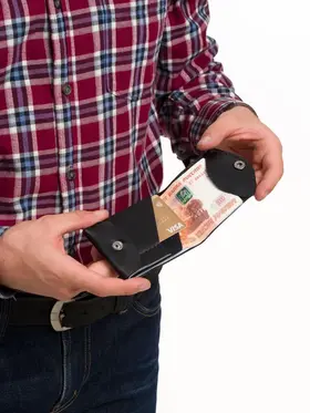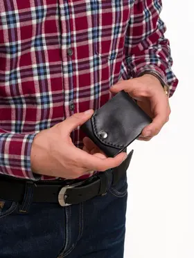 Кошелек мужской LeatherVerse картхолдер Кошелек мужской LeatherVerse картхолдер из натуральной кожи, черный — стиль и удобство для настоящих мужчин Ищете компактный и функциональный кошелек для мужчин, который можно взять с собой в путешествие или использовать ежедневно? Кошелек мужской LeatherVerse картхолдер из натуральной кожи — идеальное сочетание практичности, стиля и качества! Основные преимущества: Из натуральной кожи высокого качества — гарантия долговечности и презентабельного вида. Картхолдер кожаный мужской — компактный аксессуар для хранения карт и наличных. Практичный дизайн с 1 отделением для купюр и 1 отделением для карт позволяет удобно организовать ваши финансовые средства. Надежная застежка на кнопки и металлическая фурнитура обеспечивают удобство и долговечность. Минималистичный и элегантный черный цвет подходит под любой стиль и образ. Легкий и тонкий — вес всего 33 г, высота 10 см, ширина 7.5 см и глубина 1 см — идеально для путешествий и повседневного использования. Создан в России мастерами ручной работы — каждый аксессуар из натуральной кожи уникален. Поставляется в стильной подарочной коробке — отличный и оригинальный подарок для него, который оценят мужчины всех возрастов. Этот кошелек ручная работа прекрасно подойдет как стильный и практичный кошелек в путешествие и надежный ежедневный аксессуар. Сделайте подарок, который будет радовать долгие годы — выберите оригинальный подарок для мужчин от LeatherVerse Почему нужно купить именно этот кошелёк? Этот кошелёк создан для тех, кто ценит продуманную функциональность и удобство. В нём предусмотрено три отделения: для наличных денег, для банковских карт и отдельное — для карандаша или компактной ручки. Такой дизайн позволяет всегда иметь под рукой всё необходимое, сохраняя порядок и компактность. Стильный чёрный цвет и лаконичный внешний вид делают его универсальным аксессуаром как для путешествий, так и для повседневного использования. Отличный выбор для мужчин, которые ценят качество и практичность. Компактность и максимальное удобство Размеры кошелька — всего 10×7.5×1 см — делают его максимально компактным и удобным для ношения в кармане или сумке. Лёгкий вес (всего 33 грамма) и продуманная конструкция позволяют брать его с собой в путешествия, на работу или прогулку, не ощущая дискомфорта. Надёжная застёжка на кнопках обеспечивает безопасность содержимого, а минималистичный дизайн помогает быстро ориентироваться внутри. Качество и собственное производство Кошелёк изготовлен вручную из натуральной кожи высочайшего качества, включая подкладку и внутреннюю отделку. Все детали — от металлической фурнитуры до швов — выполнены с особым вниманием к деталям. Производство находится в России, что гарантирует контроль качества на каждом этапе. Такой аксессуар прослужит вам долго, сохраняя презентабельный вид и функциональность даже при активном использовании.
