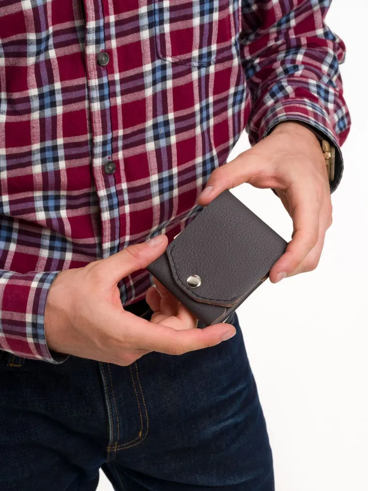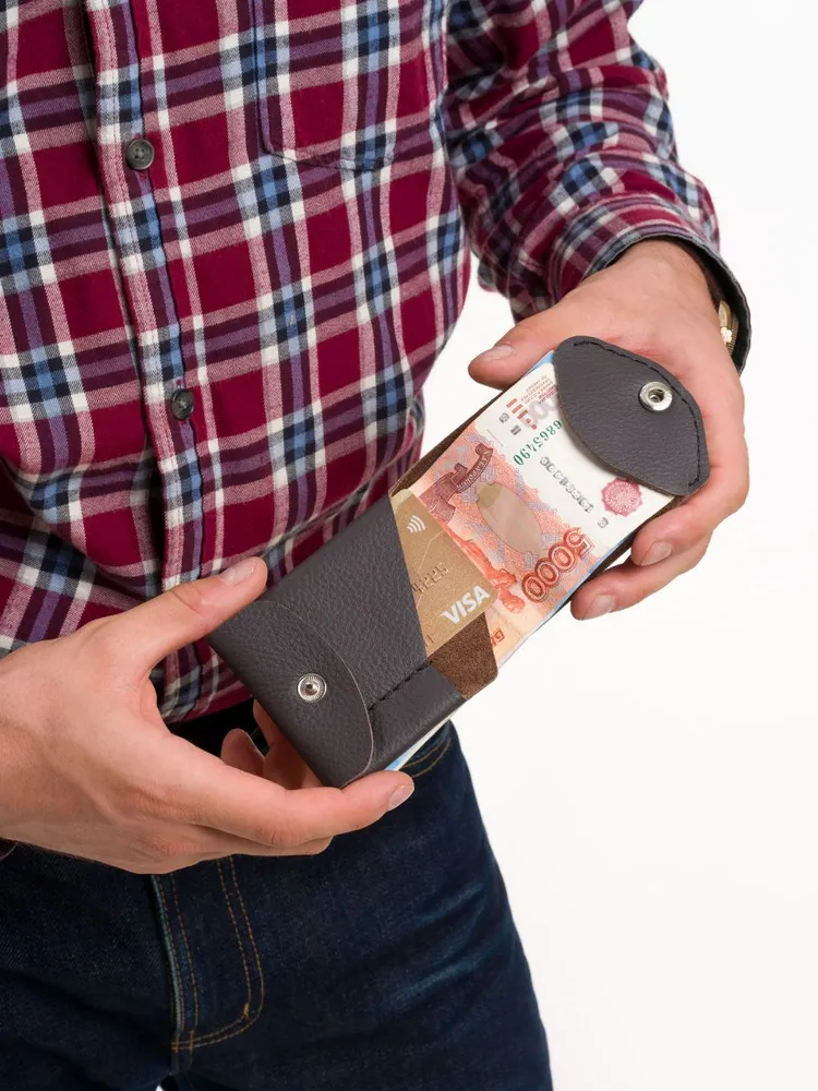 Почему нужно купить именно этот кошелёк? Этот кошелёк создан для тех, кто ценит продуманную функциональность и удобство. В нём предусмотрено три отделения: для наличных денег, для банковских карт и отдельное — для карандаша или компактной ручки. Такой дизайн позволяет всегда иметь под рукой всё необходимое, сохраняя порядок и компактность. Стильный серый цвет и лаконичный внешний вид делают его универсальным аксессуаром как для путешествий, так и для повседневного использования. Отличный выбор для мужчин, которые ценят качество и практичность. Компактность и максимальное удобство Размеры кошелька — всего 10×7.5×1 см — делают его максимально компактным и удобным для ношения в кармане или сумке. Лёгкий вес (всего 33 грамма) и продуманная конструкция позволяют брать его с собой в путешествия, на работу или прогулку, не ощущая дискомфорта. Надёжная застёжка на кнопках обеспечивает безопасность содержимого, а минималистичный дизайн помогает быстро ориентироваться внутри. Качество и собственное производство Кошелёк изготовлен вручную из натуральной кожи высочайшего качества, включая подкладку и внутреннюю отделку. Все детали — от металлической фурнитуры до швов — выполнены с особым вниманием к деталям. Производство находится в России, что гарантирует контроль качества на каждом этапе. Такой аксессуар прослужит вам долго, сохраняя презентабельный вид и функциональность даже при активном использовании.