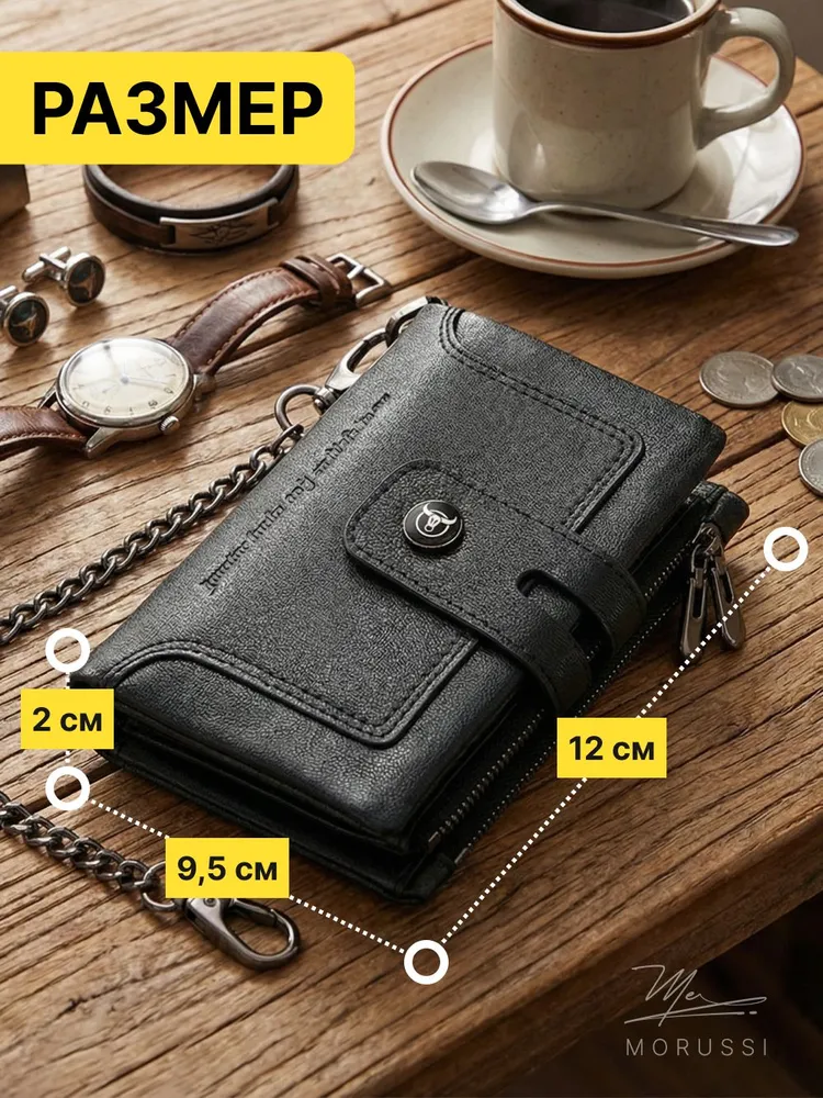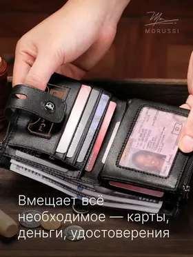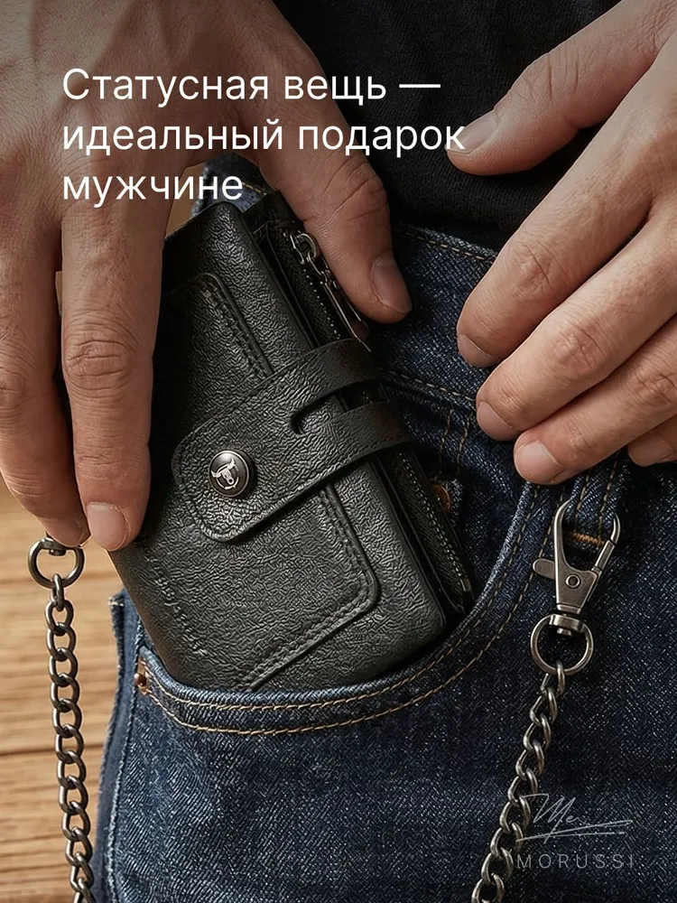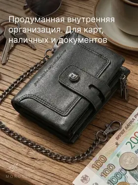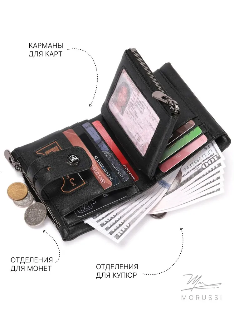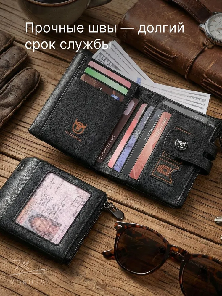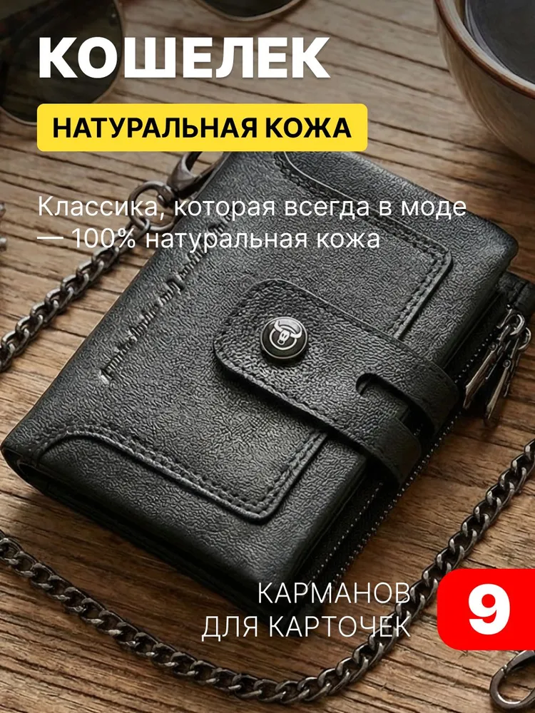 Кошелек мужской натуральная кожа, портмоне, бумажник, маленький для карточек, черный