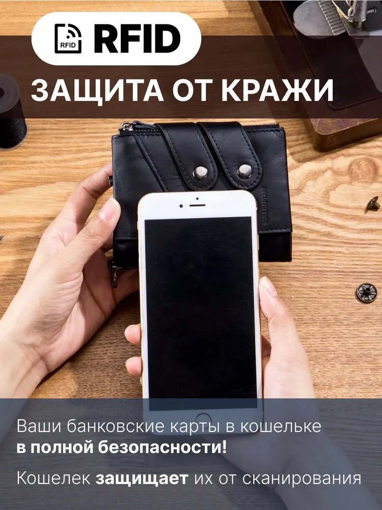 Кошелек мужской натуральная кожа, портмоне, бумажник, маленький для карточек, черный