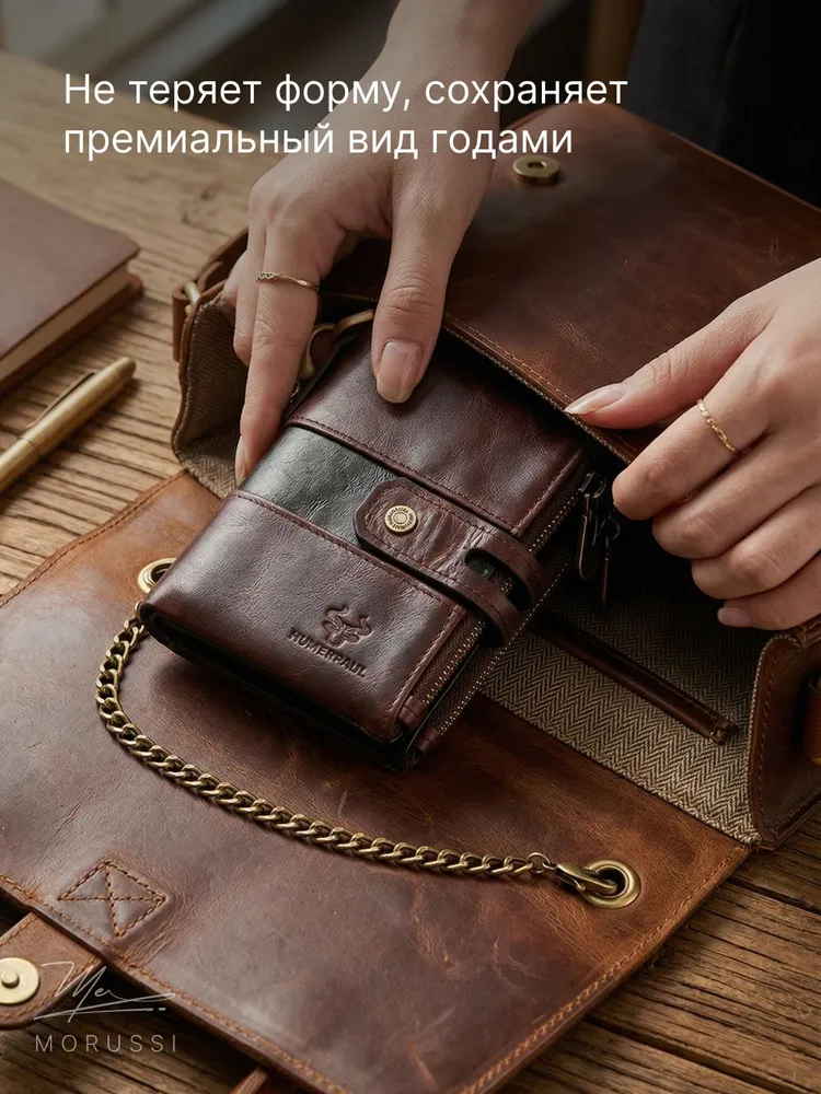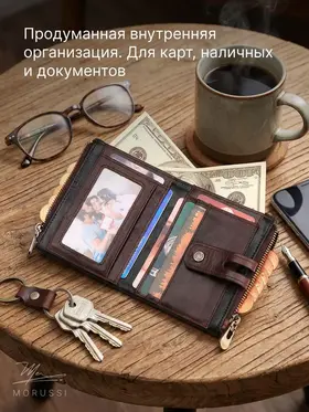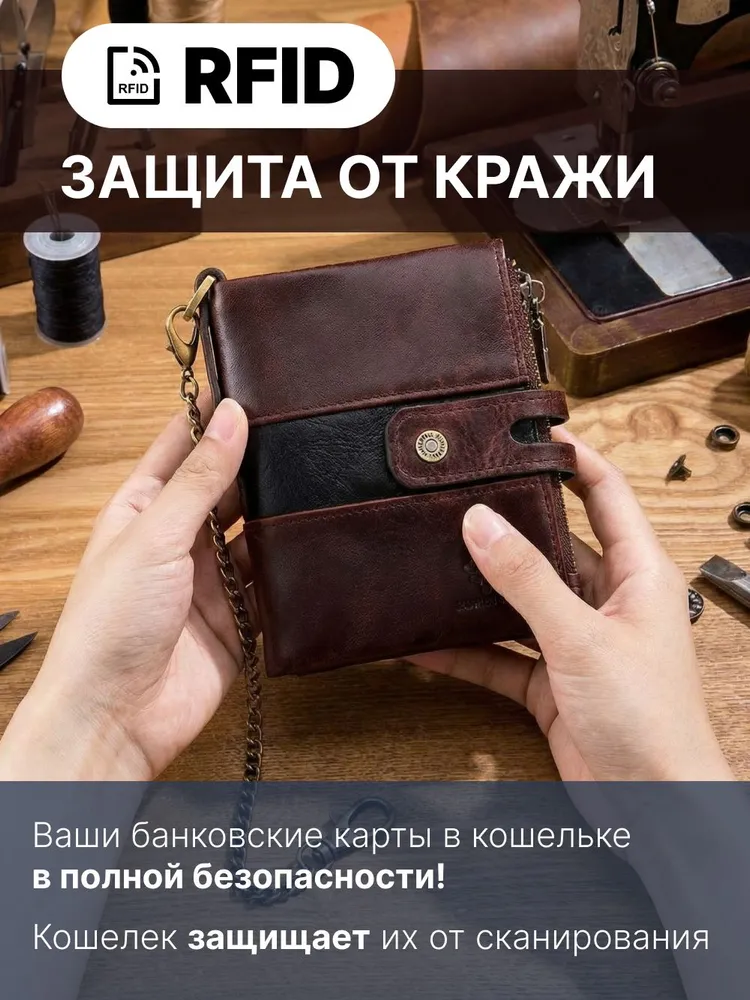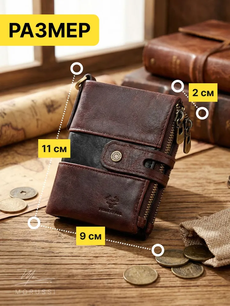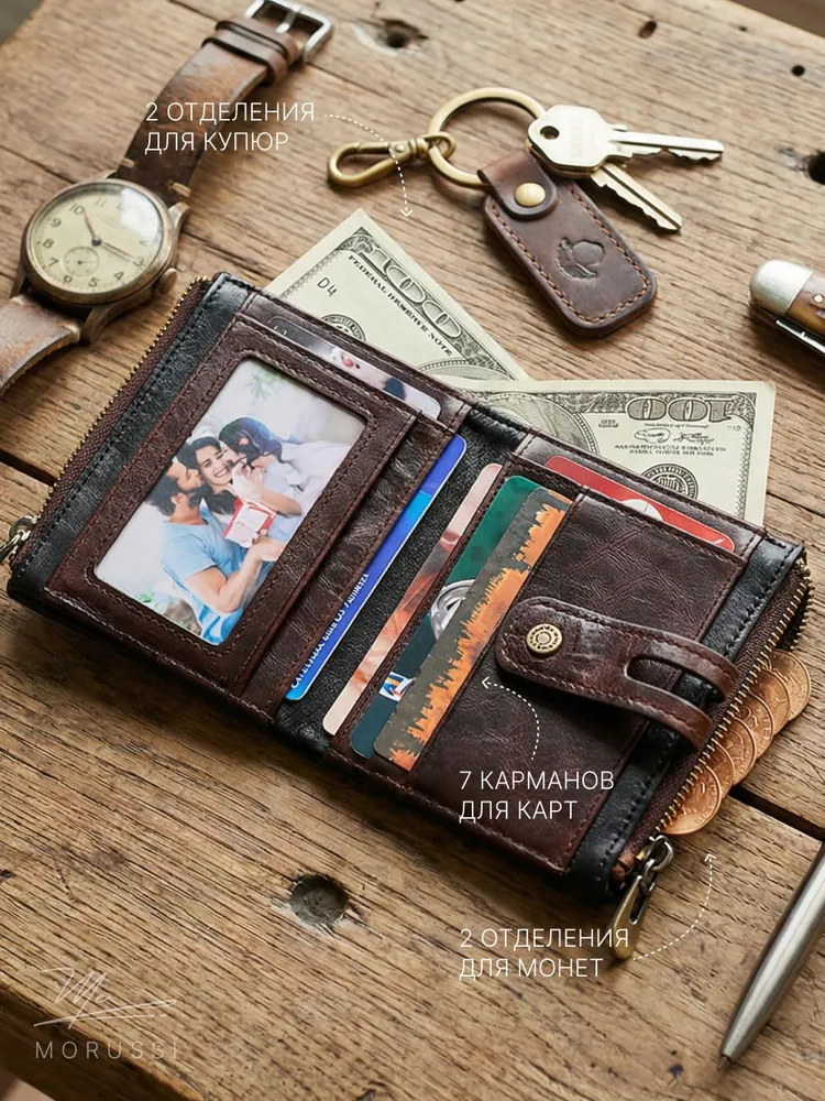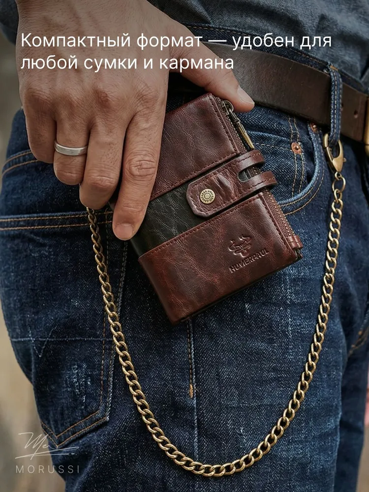 Мужской кошелек из натуральной кожи – стильный и практичный аксессуар - Натуральная кожа обеспечивает долговечность и элегантный внешний вид - Вместительный дизайн с множеством отделений для карт, документов и монет - Черный цвет универсально сочетается с любым образом и подходит всем мужчинам - Компактные размеры легко помещаются в карман или сумку без перегрузки - Идеальный подарок для близких – практичный выбор для повседневного использования