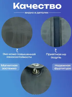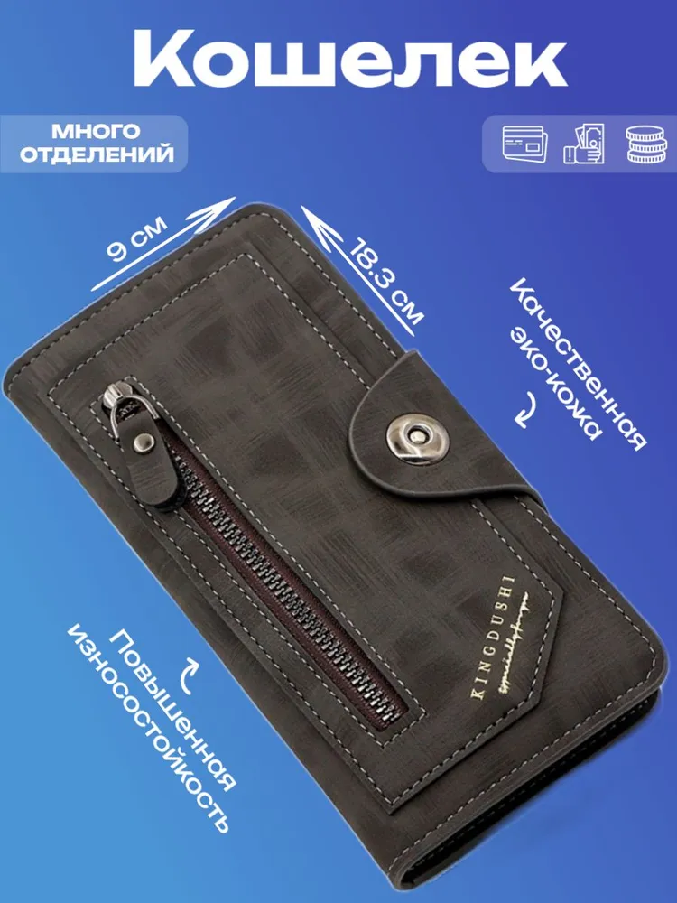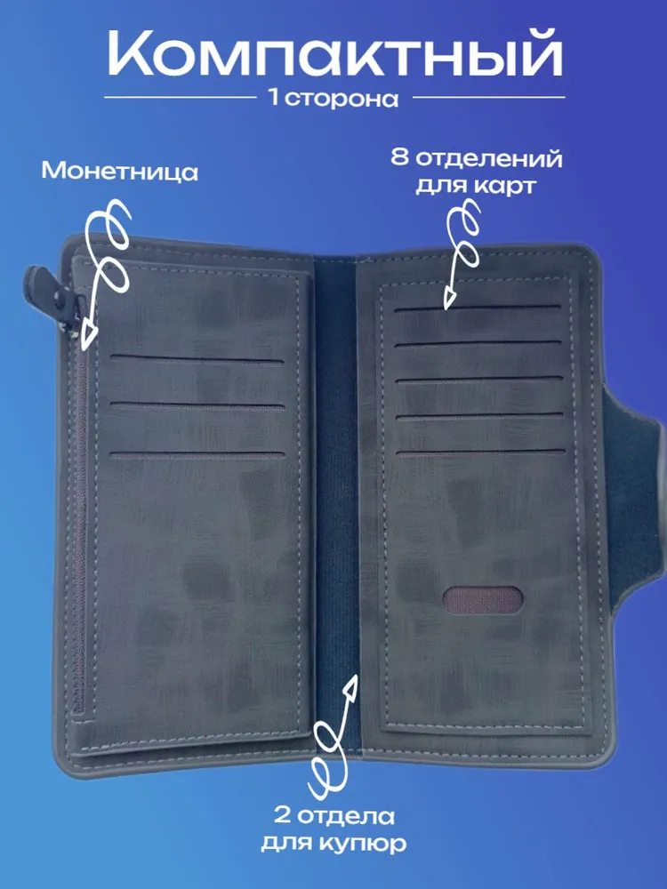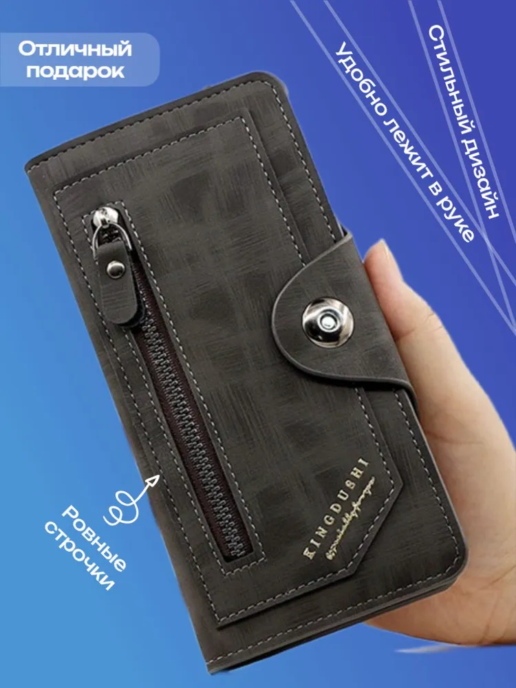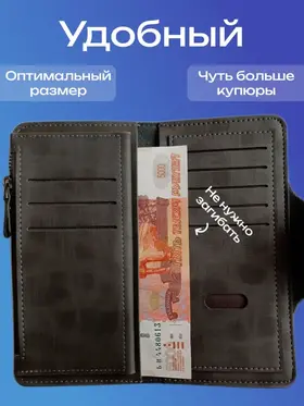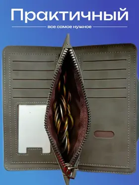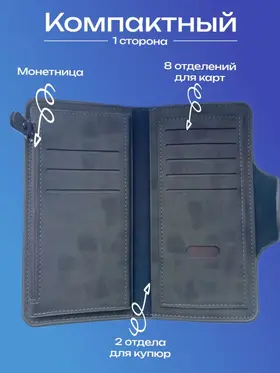 Качество Мужской кошелек из экокожи — это стильный и функциональный картхолдер, который идеально подходит для хранения купюр и монет. Это портмоне мужское сочетает в себе элегантный дизайн и практичность, предлагая удобные отделения для карт и мелочи. Экокожа обеспечивает долговечность и устойчивость к повреждениям, по виду не отличимым от натуральной кожи, что делает этот аксессуар идеальным выбором для современных мужчин, ценящих качество и экологичность. Надежность Мужской клатч — идеальный мини кошелек, который сочетает в себе функциональность и стиль, заклепка на магните, а молнии внутри и снаружи портмоне сделаны из металла высокой прочности. Этот надежный аксессуар подходит не только для взрослых мужчин, но и для детей, благодаря своему универсальному дизайну. Клатч выполнен из высококачественных материалов, что обеспечивает долговечность в использовании. Стильный дизайн Бумажник - идеальный и компактный мужской кошелек, который сочетает в себе все необходимые элементы для удобного хранения. Этот лёгкий и функциональный аксессуар включает в себя монетницу, а также специальное отделение для купюр, куда можно разместить водительские права, пропуски, проездные или документы (небольшие). Его стильный дизайн обеспечивает оптимальную организацию пространства, сам кошелек длинный и достаточно не большой, маленький, а визитница позволит всегда иметь под рукой важные контакты. Несмотря на свои компактные размеры, наш бумажник способен вместить всё, что нужно, не занимая много места в вашей сумке или кармане.