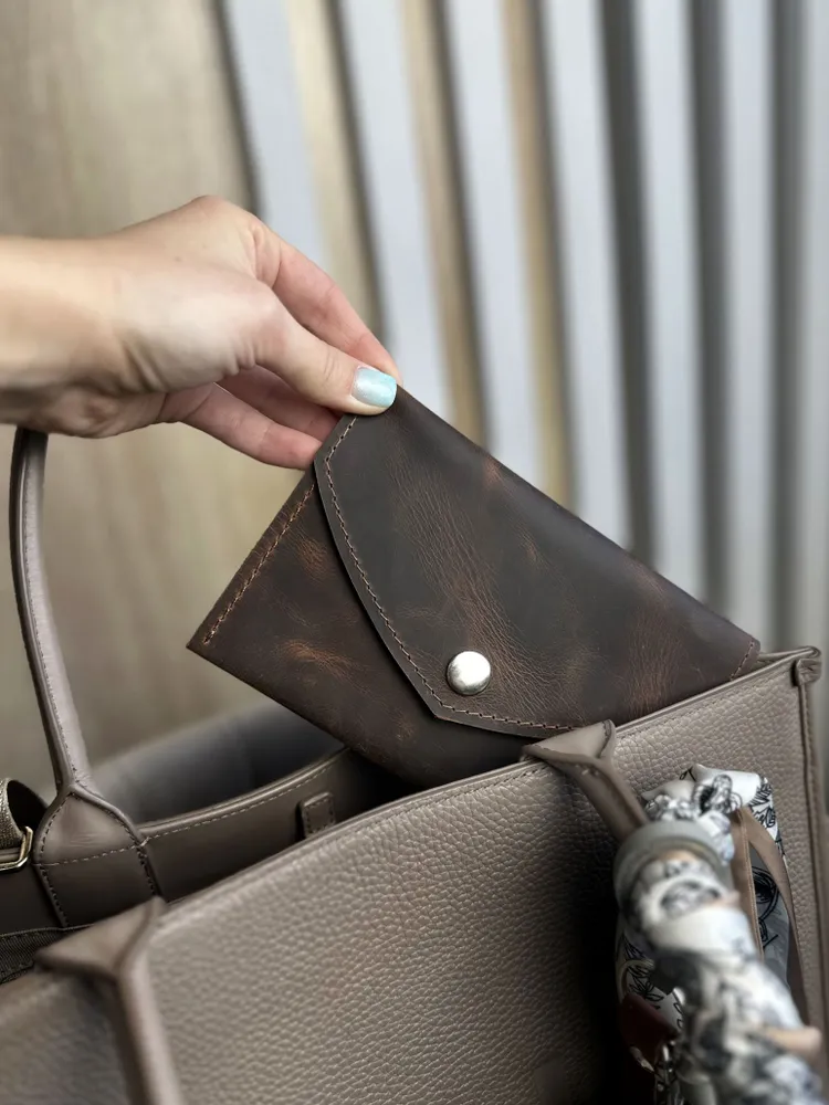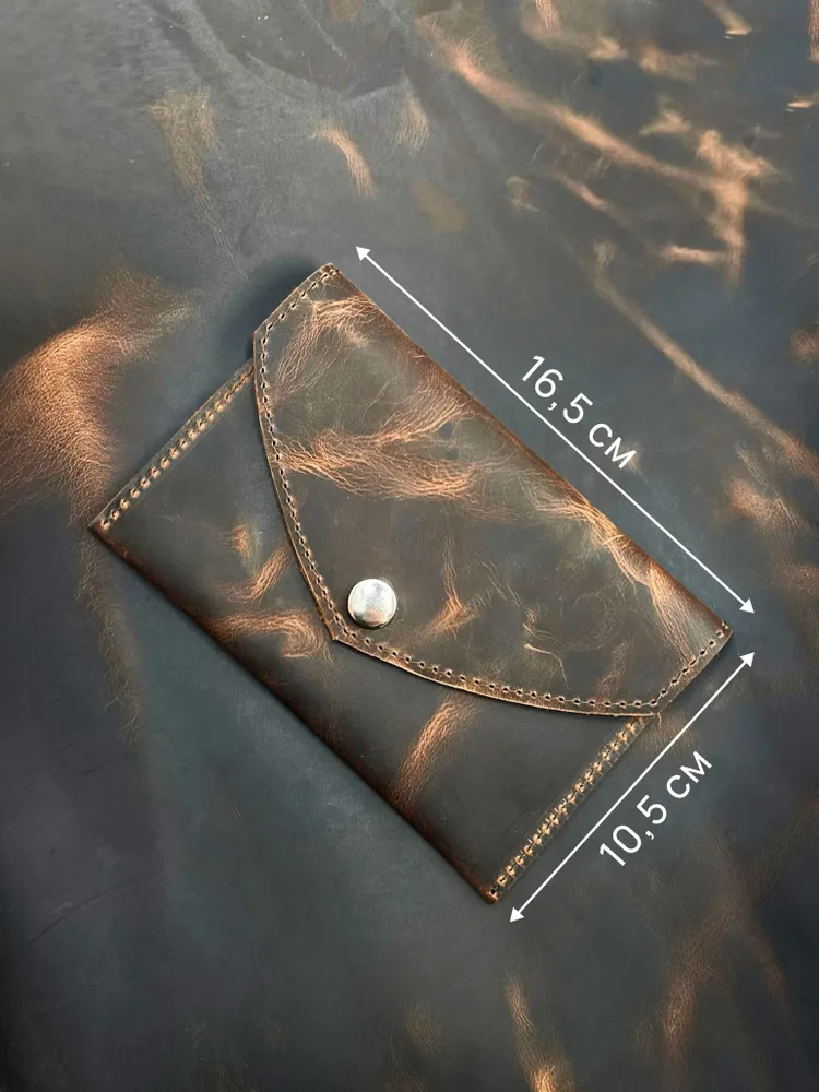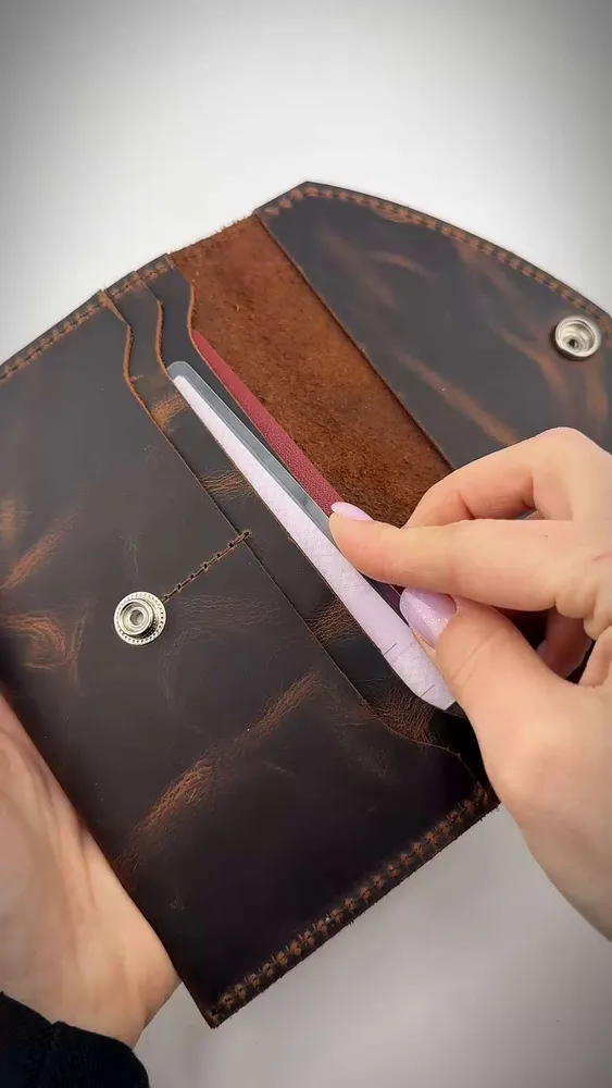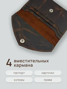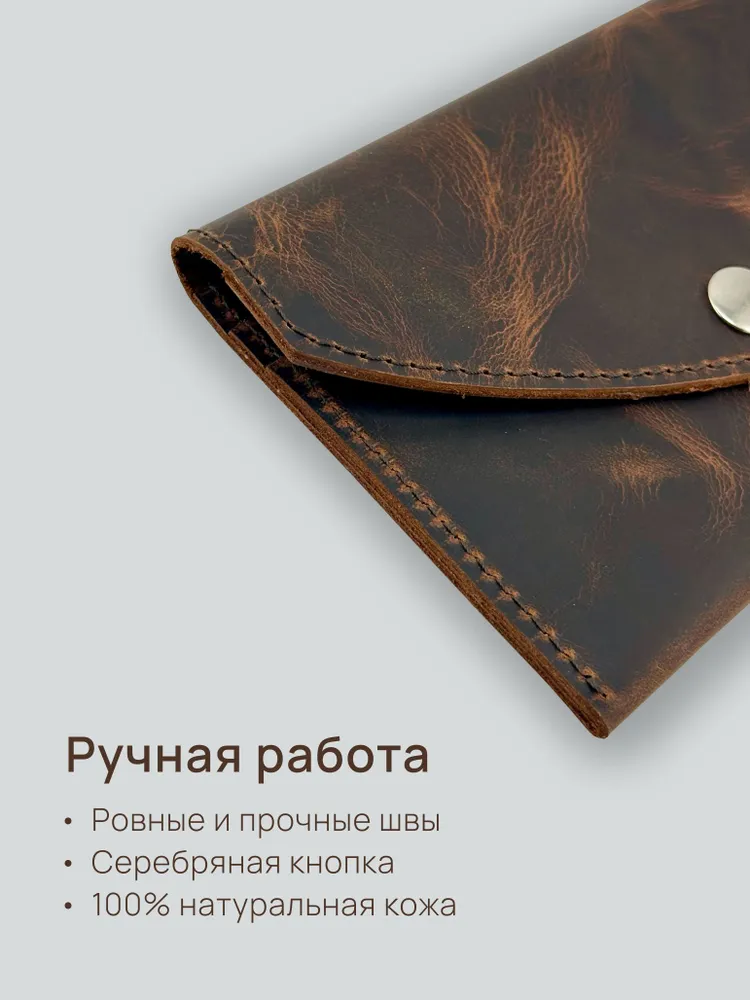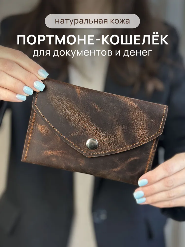 Кожаный портмоне-кошелек для документов и денег - это практичный и стильный аксессуар, который сочетает в себе элегантность и функциональность. Кошелек изготовлен из высококачественной натуральной кожи, он обладает приятной на ощупь текстурой и долговечностью. Внутреннея пространство кошелька-портмоне организовано так, чтобы удобно разместить кредитные карты, наличные деньги, паспорт, ПТС, водительские права и другие документы. 4 внуренних картмана кожанного кошелька позволит разместить все необходимые документы. Кожаный кошелек-портмоне закрывается на кнопку, что обеспечивает надежную фиксацию и предотвращает случайное открытие. Каждый кошелек изготавливается вручную мастерами с большим вниманием к деталям, что делает каждое изделие уникальным, гарантирует его долговечность и стильный внешний вид. Мы гордимся тем, что все товары производятся в нашем собственном производстве Daria Zolotareva, и каждое пормоне-кошелек для документов и денег проверяется перед отправкой клиенту. Этот кожаный кошелек-портмоне - отличный выбор для тех, кто ценит стиль, качество и функциональность. Получите удовольствие от использования данного аксессуара и будьте уверены в сохранности ваших документов. Наличие различных цветов и текстур позволяет выбрать идеальный аксессуар, отражающий Вашу индивидуальность. Этот кошеле-портмоне кожаный для документов и денег станет не только практичным элементом, но и стильным дополнением к вашему образу, настоящая находка для ценителей качества и стиля. При обращении в нашу мастерскую мы можем изготовить именную кожаную обложку портмоне. Наше производство более 10 лет производит кожаные именные изделия и подарочные наборы именные. Кошелек-портмоне эффектный и полезный подарок для любимого, мужа, папы, коллеге, маме, любимой, брату, сестре, бабушке, дедушке, сыну, дочке, подруге, другу! Именные подарки из натуральной кожи идеальное решение для любого праздника, день рождение, юбилей, презент, просто так.
