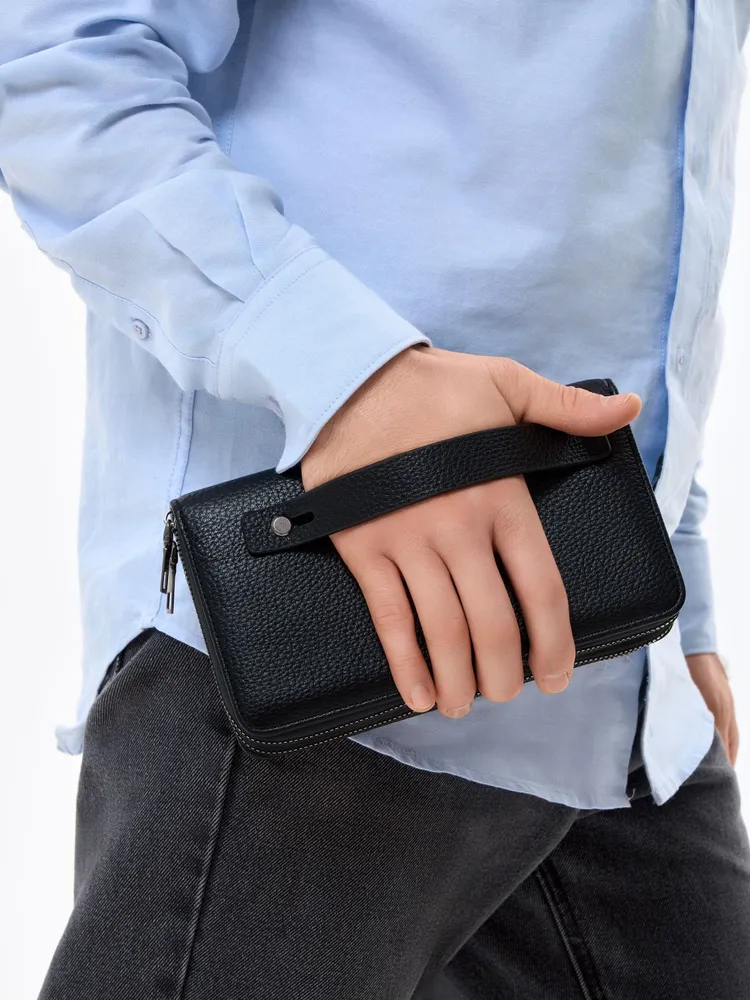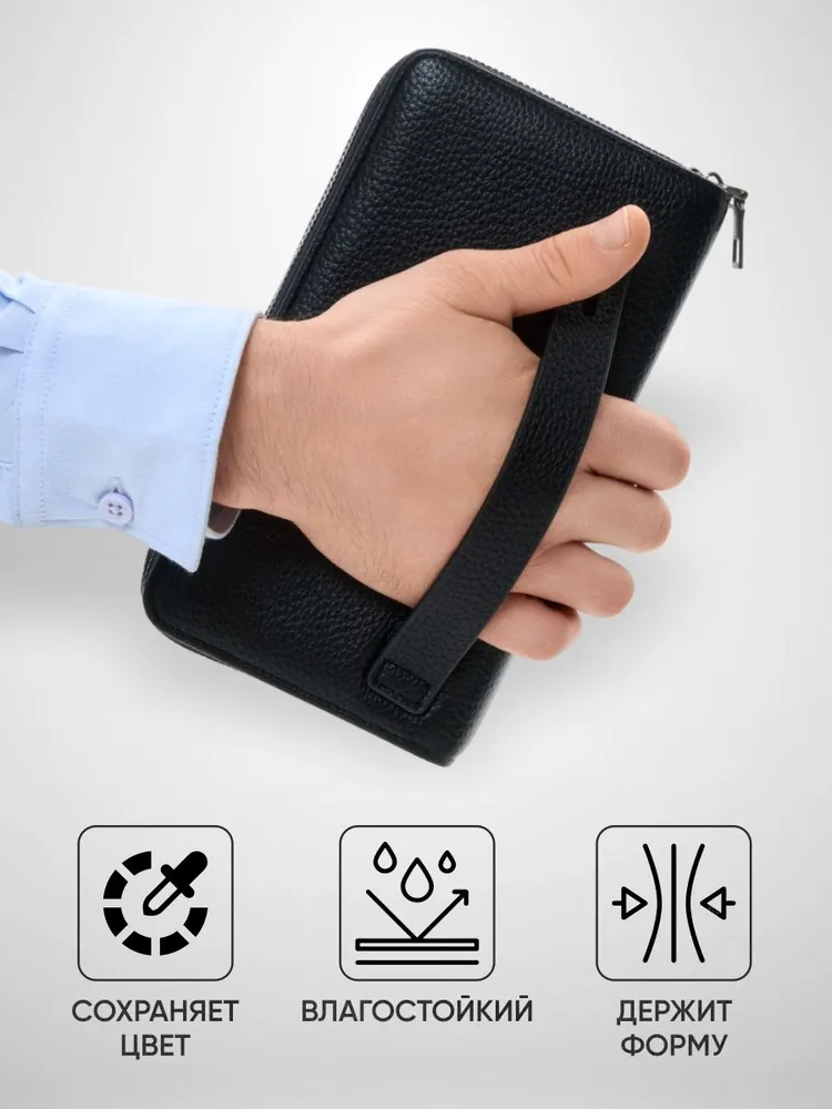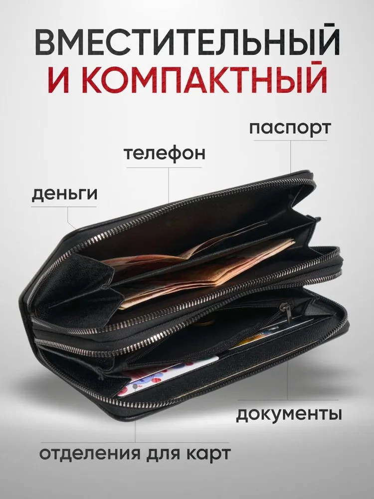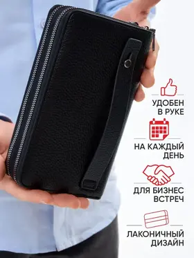 Мужское портмоне-клатч – стиль и функциональность Стильный и вместительный аксессуар с отделениями для купюр, карт, монет и документов. Износостойкий материал, надежная застежка и элегантный дизайн делают его идеальным выбором для делового и повседневного образа. Отличный вариант для себя или в подарок!