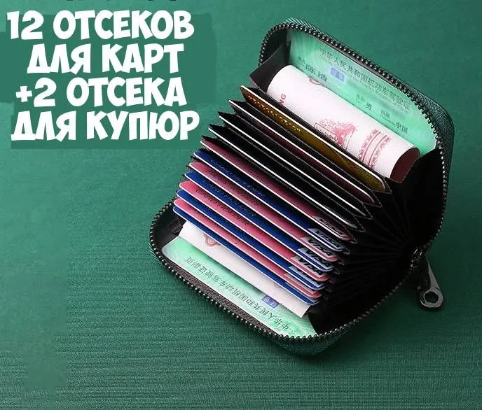 Кошелек 12+2 – это стильный и практичный аксессуар для хранения карточек и денег, который подойдет каждому мужчине и женщине. Кошелек содержит 12 карманов для банковских карт и 2 дополнительных кармана для пропуска или купюр. Кошелек картхолдер выполнен из натуральной кожи, подкладка из полиэстера. Кошелек можно использовать как чехол для карты пропуска, либо как чехол для проездного. Этот компактный чехол для карт позволяет легко организовать вашу коллекцию кредитных и других карточек, которые вам нужно носить при себе. Визитница мужская сделана из качественной экокожи, которая обеспечивает длительный срок службы товара. Красивый дизайн картхолдера подчеркнет ваш стиль и элегантность. Кредитница – универсальный аксессуар, который может использоваться не только для кредитных, но и для других карточек, таких как визитки, дисконтные карты, скидочные карты и пр. Он может быть также использован в роли визитницы для хранения карточек вашего профессионального или личного контакта. Визитницы для пластиковых карточек могут быть использованы в качестве подарка для ваших друзей и близких. Это идеальный подарок для дня рождения, Нового Года, юбилея или любого другого праздника. Сочетание удобства и элегантности делает его популярным выбором для любого мужчины. Удобный чехол позволяет легко организовать ваши карточки в желаемом порядке и помещается в кармане. В зависимости от цвета кредитница может стать отличным подарком для вашего мужа, брата или друга на День Рождения, Новый Год, или любой другой праздник. Чехол для карточек - это один из самых удобных и практичных аксессуаров, который позволяет быстро и легко находить нужные карточки в сумке или кошельке. Картхолдер женский из экокожи стал очень популярным выбором, благодаря своей высокой функциональности и оригинальному дизайну.