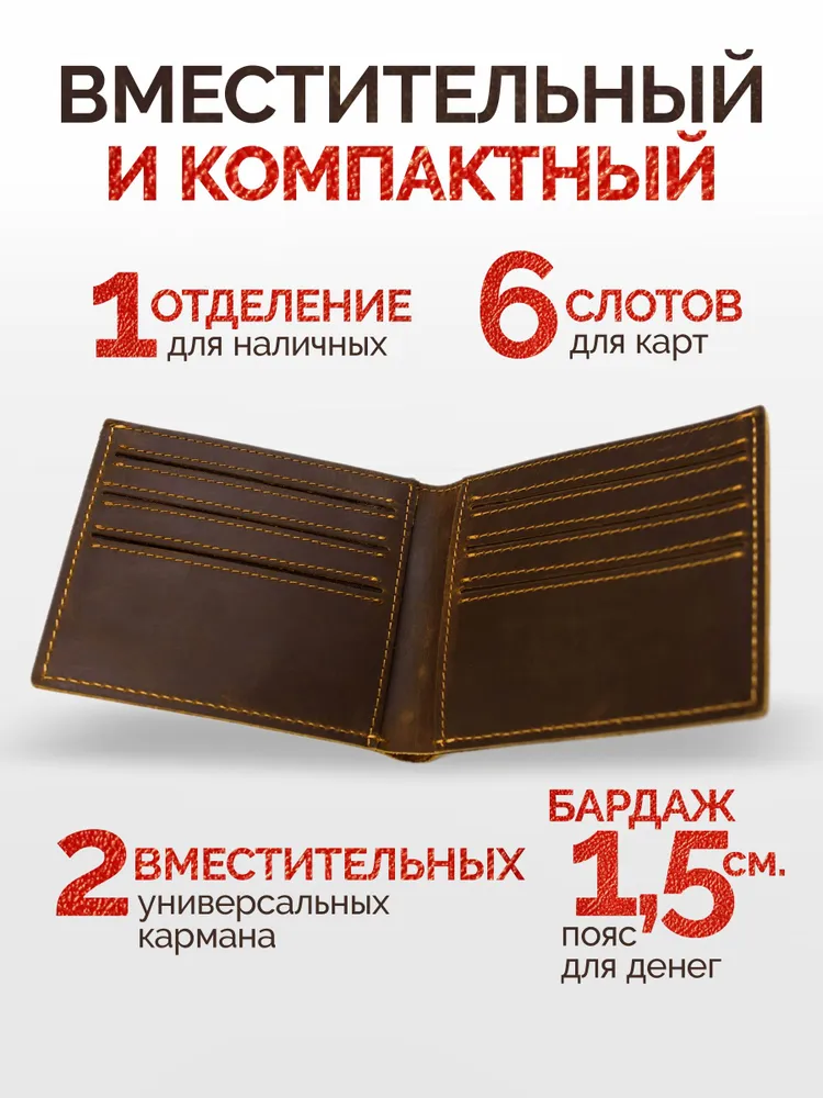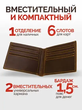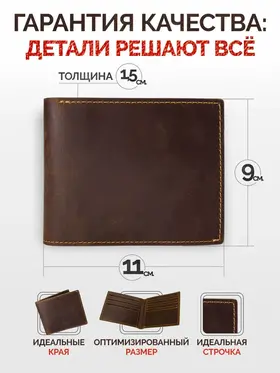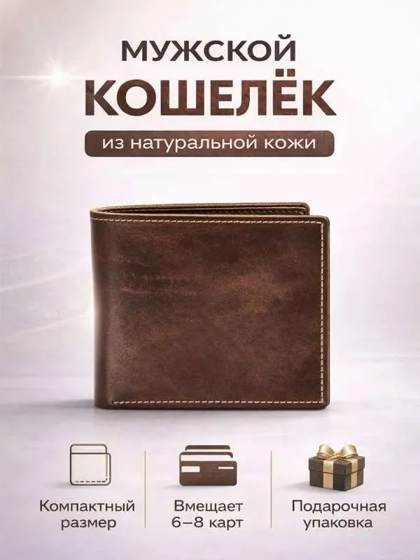 Элегантный мужской кошелек из натуральной кожи Легкий и миниатюрный кошелек станет идеальным спутником в повседневности благодаря продуманному дизайну. Изготовлен полностью из мягкой натуральной кожи – внешний слой и внутренняя отделка обеспечивают долгий срок службы и комфорт использования. Вмещает до десяти банковских карт, имеет специальное отделение для денежных купюр и открытых карманы для мелочи. Компактные размеры позволяют легко разместить аксессуар во внутреннем кармане рубашки или куртки. Черный классический цвет гармонично сочетается со множеством образов. Прочный материал и функциональность сделают этот кошелек практичным выбором для тех, кто ценит качество и эргономику.