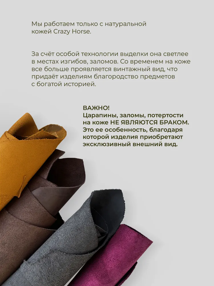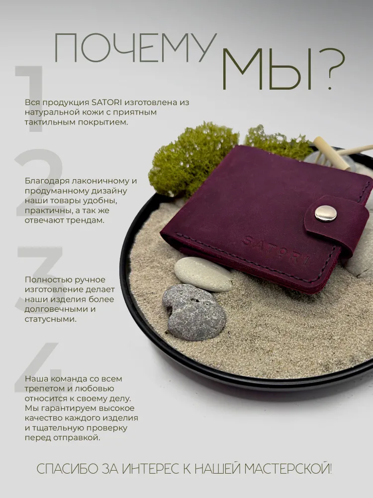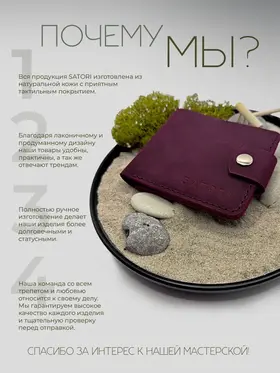 Заголовок Стильное Портмоне с Монетницей из Натуральной Кожи — Женское, Ручная Работа Ищете функциональный и элегантный кошелек с монетницей, который подчеркнёт ваш стиль и прослужит долго? Наши портмоне — это идеальное сочетание качества и дизайна! --- Основные преимущества: - Натуральная кожа крейзи хорс — прочный, стильный материал с уникальной матовой поверхностью, которая с годами приобретает благородную патину - Ручная работа — каждое портмоне изготовлено вручную на собственном производстве с вниманием к деталям - Качественная фурнитура — надежные застёжки и молнии для комфортного и долговечного использования - Универсальный дизайн — подходит как для мужского, так и для женского стиля - Встроенная монетница удобно хранит мелочь, не допуская её потери --- Идеальный подарок Красиво упакованное портмоне станет отличным подарком на любой праздник, юбилей или важное событие. Подарите близким стиль и надёжность в одном аксессуаре! --- Почему выбирают нас? - Собственное производство — полный контроль качества на каждом этапе - Эксклюзивный стиль в лучших традициях кожевенного мастерства - Практичность и долговечность, проверенные временем --- Закажите сейчас стильное и надёжное портмоне с монетницей из натуральной кожи, чтобы подчеркнуть свой вкус и обеспечить комфорт каждый день!