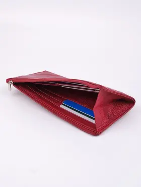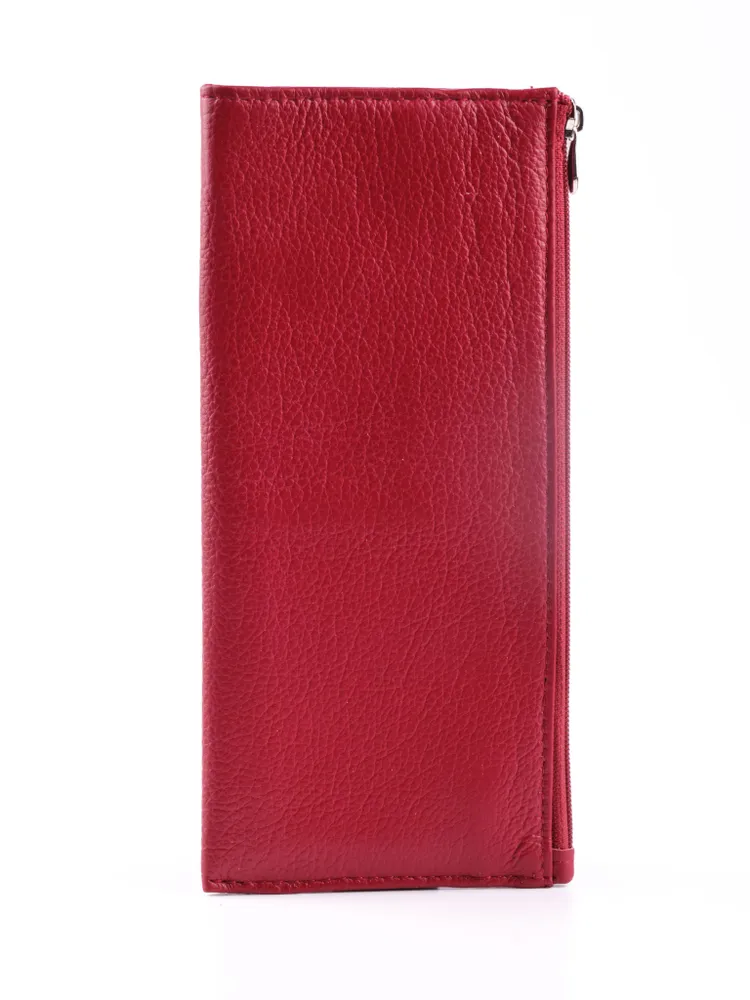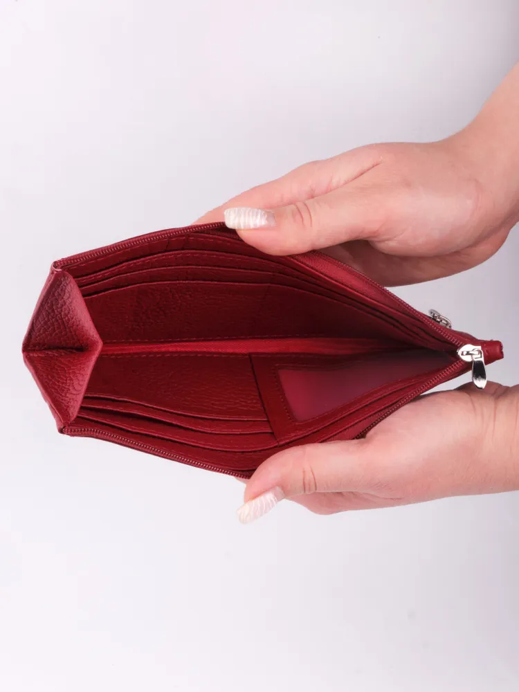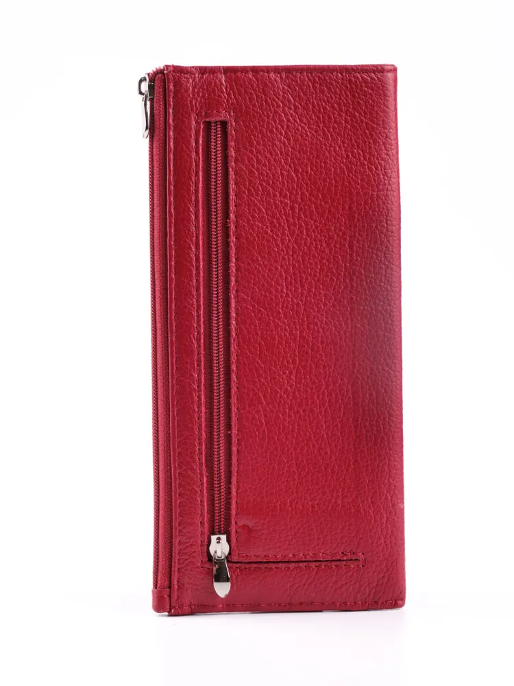 Элегантная модель женского кошелька из мягкой натуральной кожи. Основная часть изделия закрывается на молнию и состоит из центрального большого отделения, 2-х карманов для купюр (боковых), 6 кармашков для банковских карт и 1 кармашка-окошка. С внешней тыльной стороны имеется отделение на молнии для монет или всяких мелочей. Модель очень практична, поместиться в любой сумочке. Женский кошелек — это важный элемент любой гардеробной, потому что он не только отражает ваш стиль, но и служит практическим решением для хранения необходимых мелочей. Наш женский кошелек выполнен из качественной натуральной кожи, что гарантирует долговечность и удобство. У него также удобный размер, что делает его комфортным при ношении и одновременно вместительным. Привлекательность и элегантность кошелька добавляется благодаря фактуре кожи и плавному закрытию на молнию.