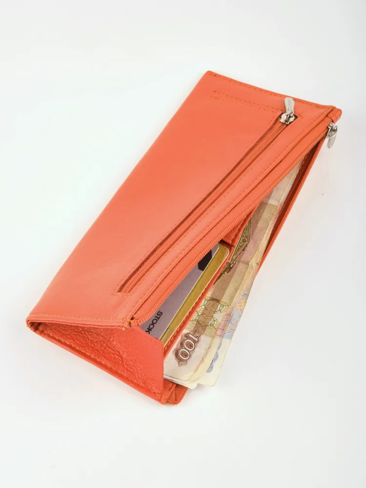 Элегантная модель женского кошелька из мягкой натуральной кожи. Основная часть изделия закрывается на молнию и состоит из центрального большого отделения, 2-х карманов для купюр (боковых), 6 кармашков для банковских карт и 1 кармашка-окошка. С внешней тыльной стороны имеется отделение на молнии для монет или всяких мелочей. Модель очень практична, поместиться в любой сумочке. Женский кошелек — это важный элемент любой гардеробной, потому что он не только отражает ваш стиль, но и служит практическим решением для хранения необходимых мелочей. Наш женский кошелек выполнен из качественной натуральной кожи, что гарантирует долговечность и удобство. У него также удобный размер, что делает его комфортным при ношении и одновременно вместительным. Привлекательность и элегантность кошелька добавляется благодаря фактуре кожи и плавному закрытию на молнию.