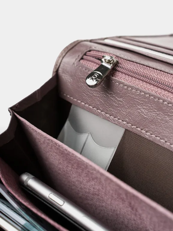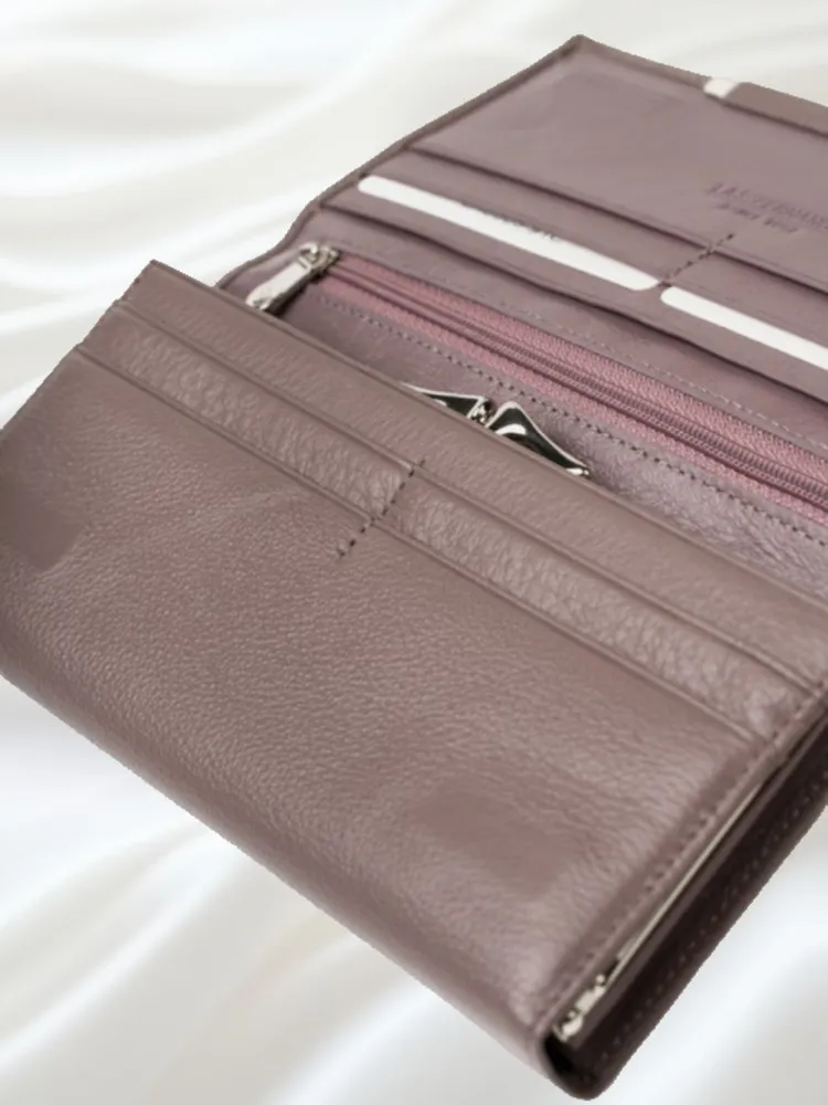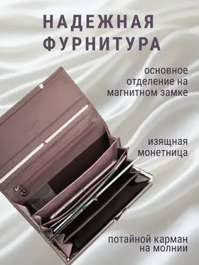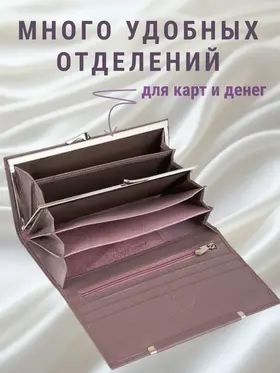 ПОРТМОНЕ КОШЕЛЕК БУМАЖНИК Этот кошелек приятно держать в руках!) Он Супер!!! Натуральная кожа! Ничего лишнего и при том, многофункционален! Закрывается на потайной магнит. Внутри: 3 отделения для купюр любого достоинства, потайной кармашек на молнии; 10 кармашков для пластиковых карт; 1 монетница с двойным делением; 1 наружный карман. Фирменная коробка (если в качестве подарка - Подарок уже упакован) Мягкий! Благородный сиреневый! Удобный!