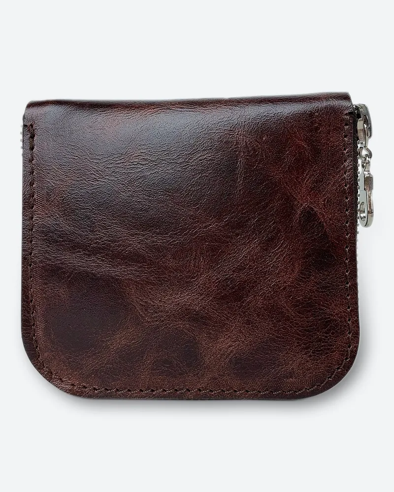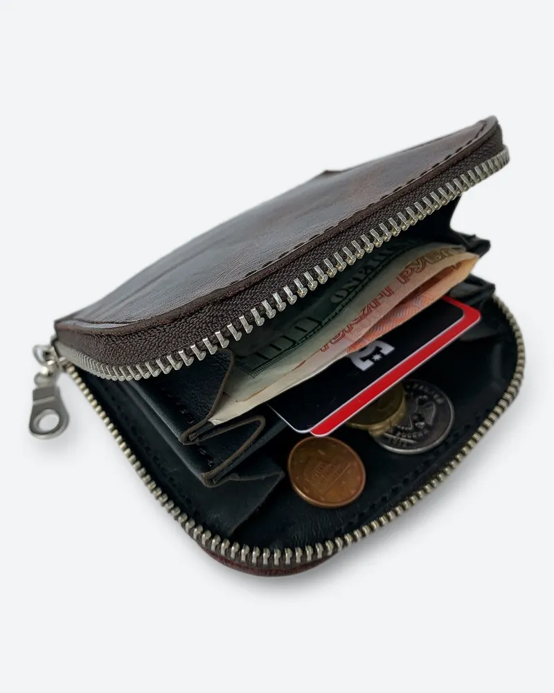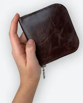 Маленький кошелек из натуральной кожи • Внешние размеры 10см Х 11см (+/-5мм). Закрывается на молнию. • Вмещает в себя: бумажные купюры, банковские или дисконтные карточки, монеты. • Имеет 2 отделения для бумажных денег; 1 отделение для пластиковых карт. • Мы используем качественную плотную, но при этом мягкую кожу толщиной 1.2-1.4 мм. • Гладкая кожа достаточно устойчива к загрязнениям, легко протереть влажной тканью. • Изображение выжжено (не стирается и не трескается со временем). • Кошельки нашего бренда качественные и созданы для повседневного пользования взрослых мужчин или молодых женщин. • Женский кожаный кошелек – это идеальный подарочный вариант каждой женщине, девушке или девочке, коллеге или близкой подруге. Прекрасное дополнение любой сумки, рюкзака или портфеля. Мини картхолдер любимой маме (мамочке) на день матери или сестре на 8 марта. Любимому преподавателю на День учителя. • Портмоне – это роскошный подарок мужчине или подростку на день рождения (др). Стильные аксессуары брату или другу на 23 февраля (С Днём Защитника Отечества). Папе от дочки на Новый год (нг). Нужный подарок мужу на годовщину свадьбы или любимому парню ко Дню Святого Валентина (14 февраля). • Универсальные, классические, красивые аксессуары от кожевенной мастерской KAZA на праздники. Корпоративные подарки клиентам или коллегам. Презент российского производства начальнику или директору. • Ручная работа. • Производим с 2009 года.
