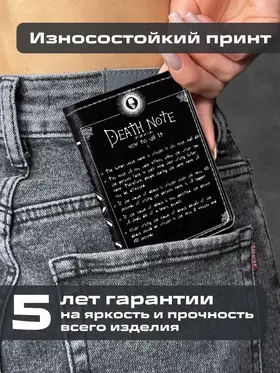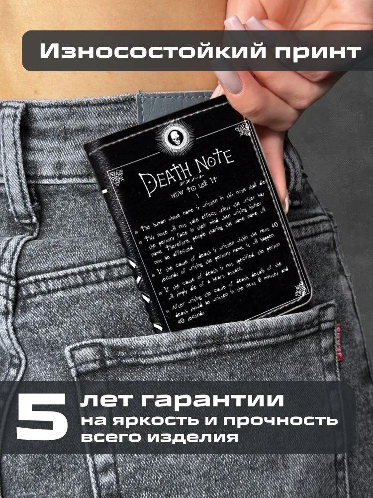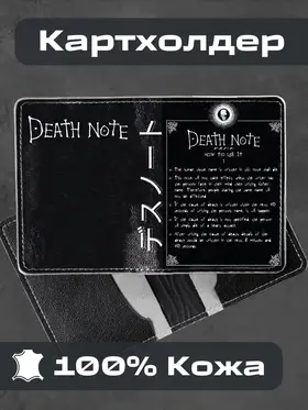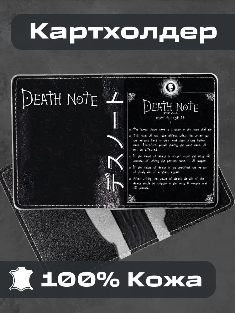 Кожаный Картхолдер Правила Тетради Смерти (ENG) - яркий кошелек с аниме принтом