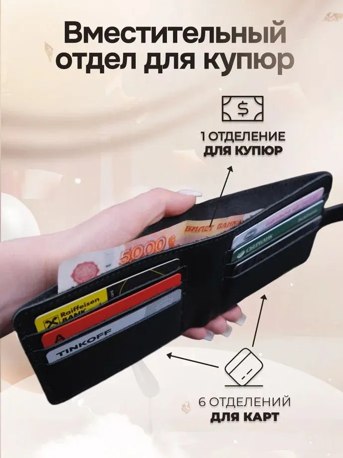 Мужской кошелек - идеальный выбор для современных мужчин, которые ценят стиль и функциональность. Эргономичный портмоне включает несколько отделений для купюр и документов, удобные слоты для банковских карт и отдельную застёгивающуюся монетницу. Кнопка-фиксатор надёжно закрывает кошелёк, сохраняя порядок и защищая содержимое. Кошелек выполнен из качественной натуральной кожи, что гарантирует долговечность и презентабельный внешний вид; оригинальный принт придаёт аксессуару индивидуальность и современный характер. Компактный формат позволяет удобно носить портмоне в кармане, не занимая много места, а продуманная внутренняя организация делает его удобным для повседневного использования и деловых встреч. Отличный выбор в качестве подарка мужу, другу или коллеге — сочетание практичности, стиля и надёжности делает этот кошелёк универсальным аксессуаром для любого образа. Особенно актуален такой подарок в преддверии праздников — 14 февраля, День защитника Отечества, 23 февраля или День рождения, когда хочется порадовать близких функциональным и стильным аксессуаром, который будет служить долгие годы.