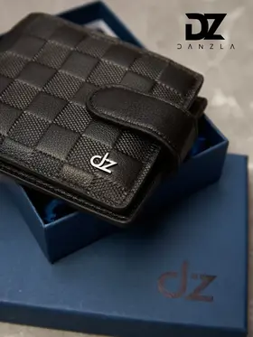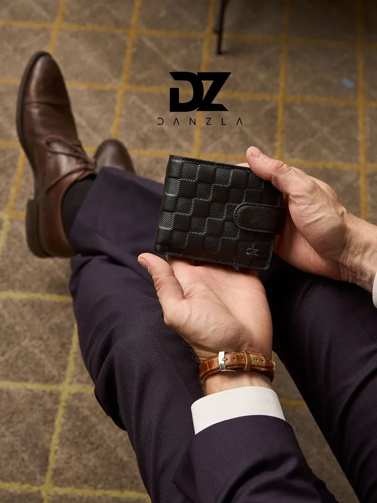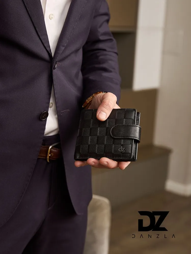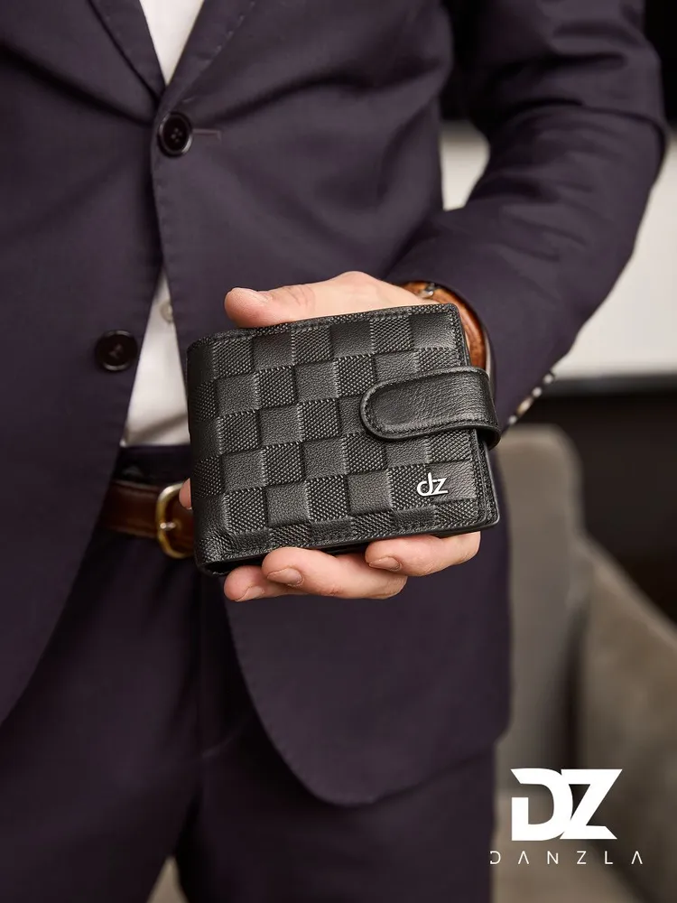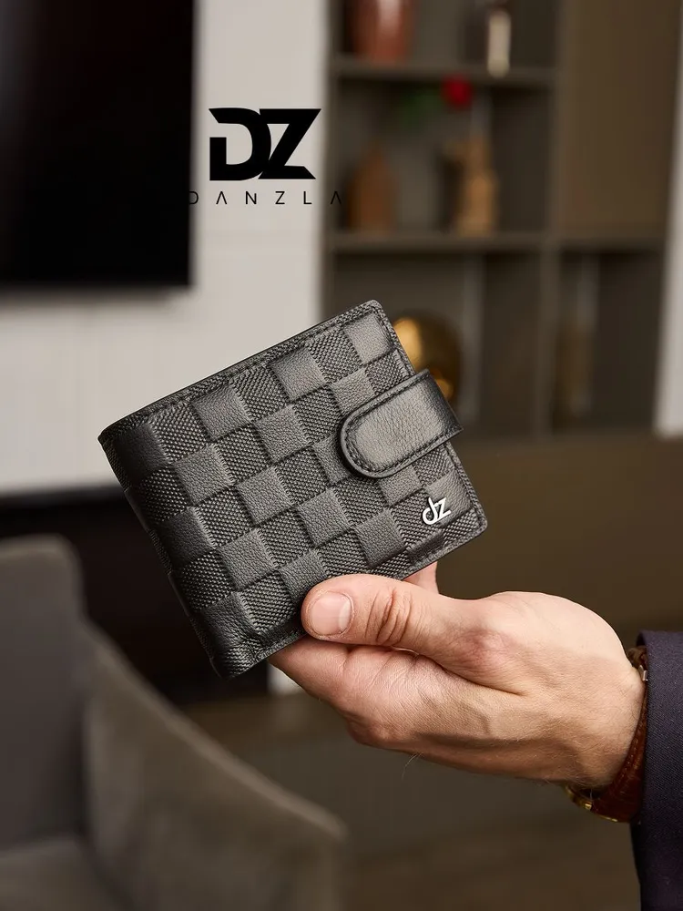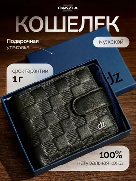 Кожаный мужской кошелек, портмоне кожаное на магните "DanZla", черный