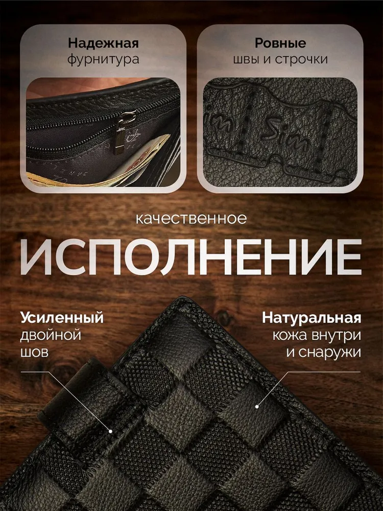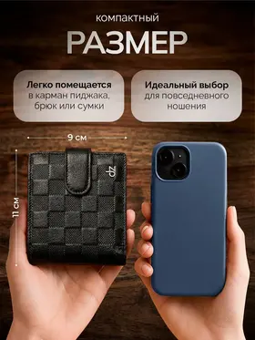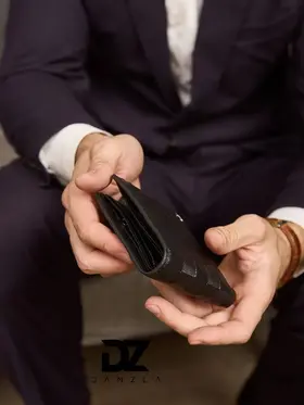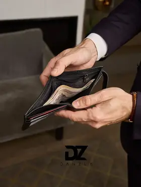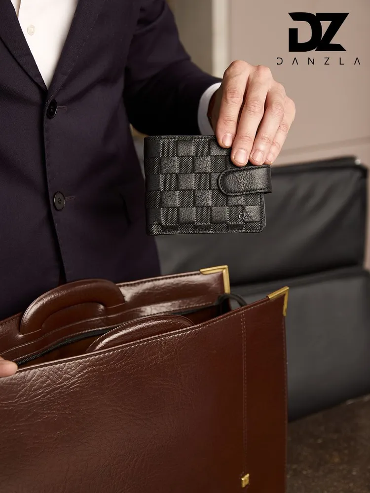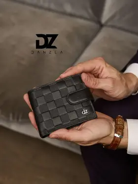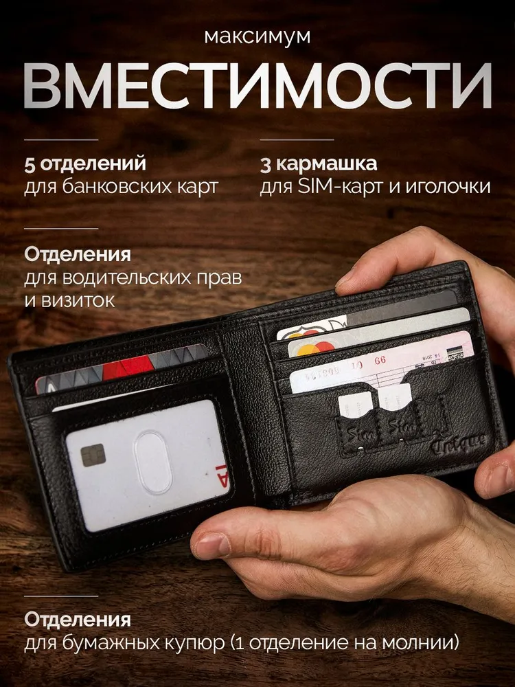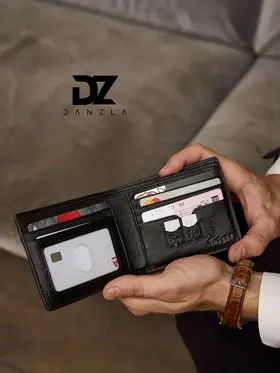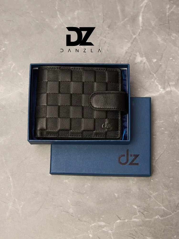 Кожаный мужской кошелек, портмоне кожаное на магните "DanZla", черный