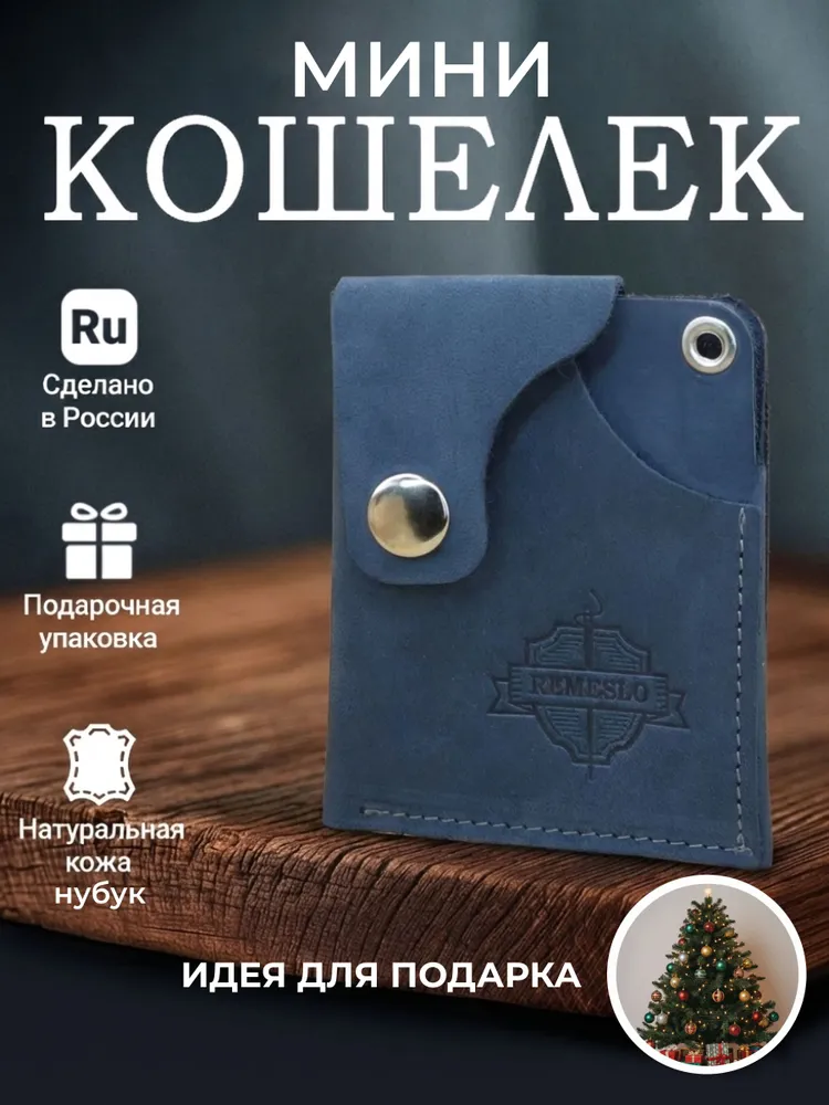 Мини кошелек из гладкой кожи в подарочной упаковке идеально подойдет как подарок из кожи на 8 марта. Несмотря на компактный размер, влезают как карточки, так и купюры. Кредитница сделана из цельной кожи нубук. Очень маленький кошелек помещается в любой карман. Также возможно прикрепить к ключам или сумочке с помощью шнура. Картхолдер имеет бархатную поверхность и его очень приятно держать в руках. Компактные размеры картхолдера дают возможность удобно носить его в кармане или небольшой сумке, не занимая при этом много места. Визитница для карт мужская или женская от Remeslo подчеркнет ваш безупречный вкус. Этот кошелек маленький легко вмещает все ваши кредитные карточки и визитки, обеспечивая быстрый доступ к ним, а так же наличные деньги. Он с легкостью заменит собой кошелек бифолд из натуральной кожи. Его очень часто берут в подарок женщине, девушке.