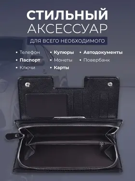 Мужской кошелёк – стильный и вместительный аксессуар, который дополнит любой образ мужчины. Клатч портмоне мужской выполнен из качественной мягкой ЭКО кожи, которая не трескается и прослужит не один год. Кошелёк мужской имеет отделение на кнопках для кредитных, дебетовых или скидочных карт. Во втором отделение на молнии можно носить автодокументы, паспорт, телефон, купюры, мелочь, а также повэрбанк. Мужское портмоне для документов и денег в классическом стиле отлично дополнит любой образ: деловой, повседневный или спортивный. Кошелёк имеет небольшой размер, поэтому удобно и комфортно держать в руке. Такой мужской клатч станет отличным подарком мужчине, папе, другу, дедушке, дяде на Новый год, 23 февраля, день рождения, 14 февраля, юбилей.