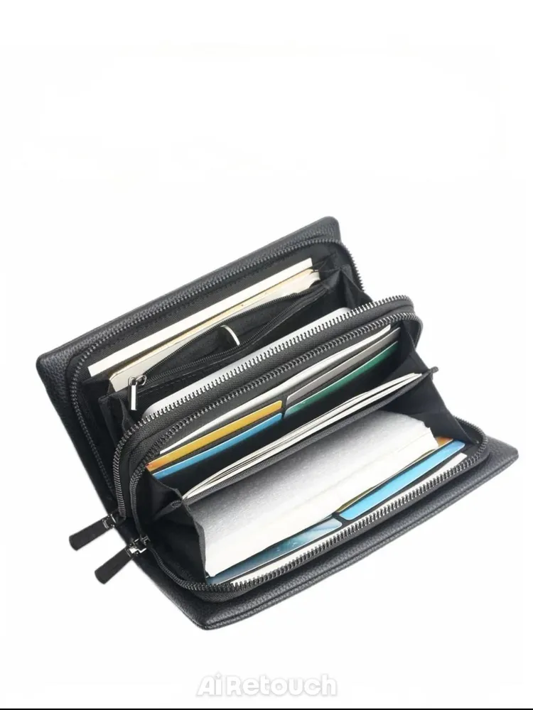 Мужское портмоне черного цвета – идеальный выбор для современных джентльменов, предпочитающих классический стиль и функциональность. Изготовлено из высококачественных материалов, обеспечивающих прочность и износостойкость. Две молнии обеспечивают быстрый доступ ко всем отделениям, позволяя удобно хранить наличные деньги, банковские карты и важные документы. Минималистичный дизайн идеально дополняет деловой образ, придавая владельцу уверенности и солидности. Это портмоне станет незаменимым помощником в повседневных делах и деловых поездках, демонстрируя внимание к деталям и приверженность стилю.