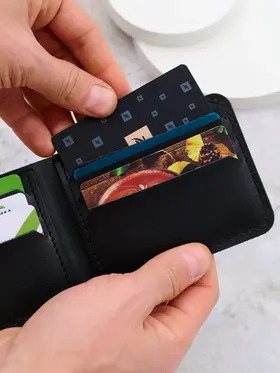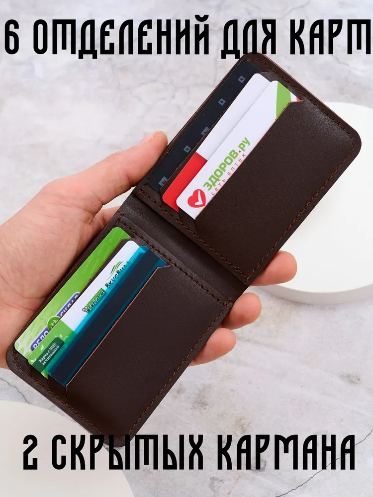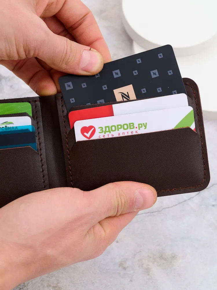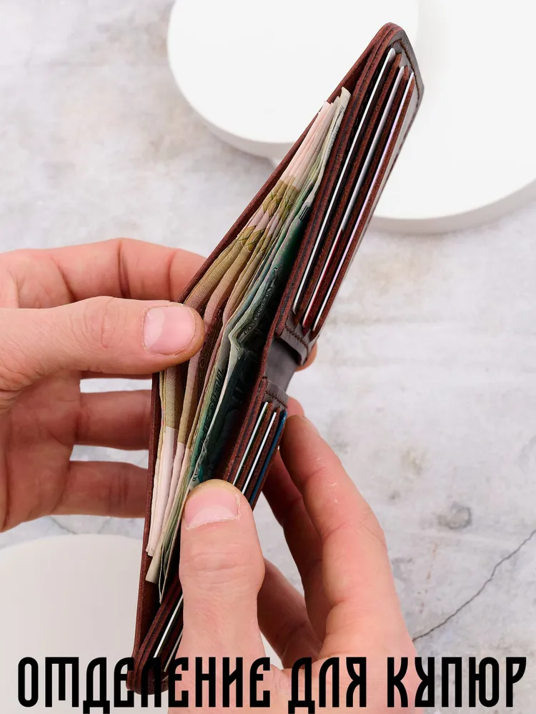 Кошелек мужской из натуральной кожи - это необходимый повседневный аксессуар и нужный подарок мужчине. Выбираете мужской кошелек себе или в подарок? Мужской кожаный кошелек 1762 заботливо упакован в подарочную коробку. Готовый подарок экономит Ваше время. Представьте кошелек в руках - выглядит стильно. Дизайн кошелька разработан с учетом потребностей современного мужчины. Мужской кошелек 1762 продуманный и вместительный. Размер 11х8,5см. Смотрите, что у него есть: отделение для денег - помещаются купюры любого номинала отсеки для карточек - всегда под рукой до 8 пластиковых карт По отзывам покупателей, в кошельке также хранят: водительские права, визитки, пропуск, новый полис ОМС, транспортную карту, кредитки. Даже максимально заполненный кошелек выглядит компактно, удобно лежит в руке и поместится в любой карман, сумку или рюкзак. Закажите мужской кошелек 1762 и получите удовольствие от покупки или приятные эмоции от вручения подарка!