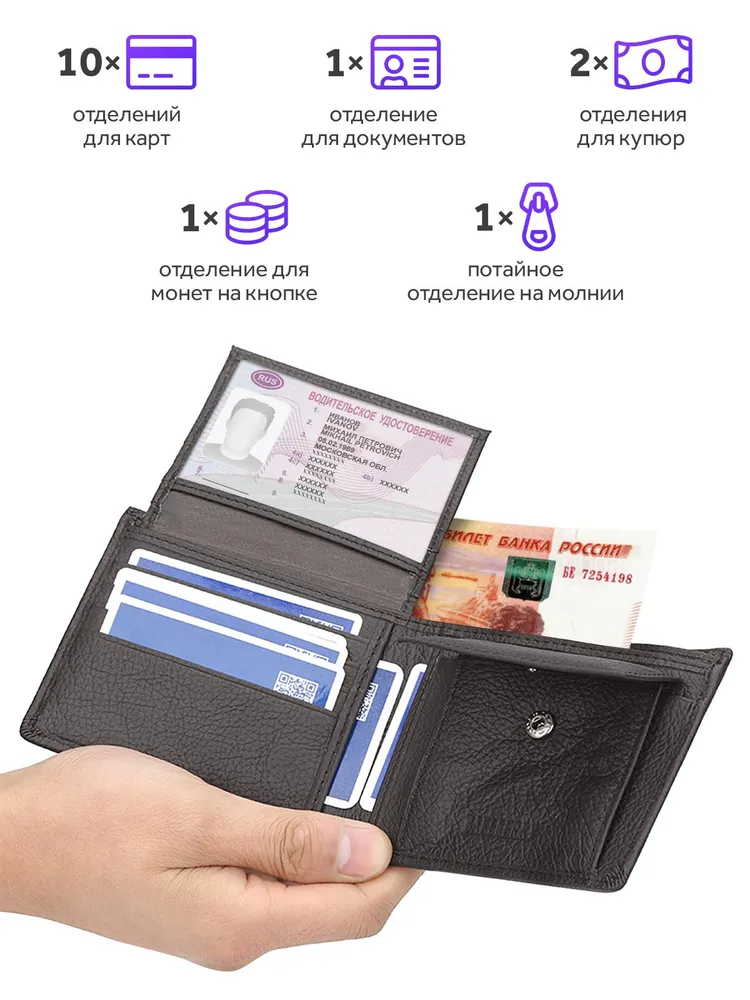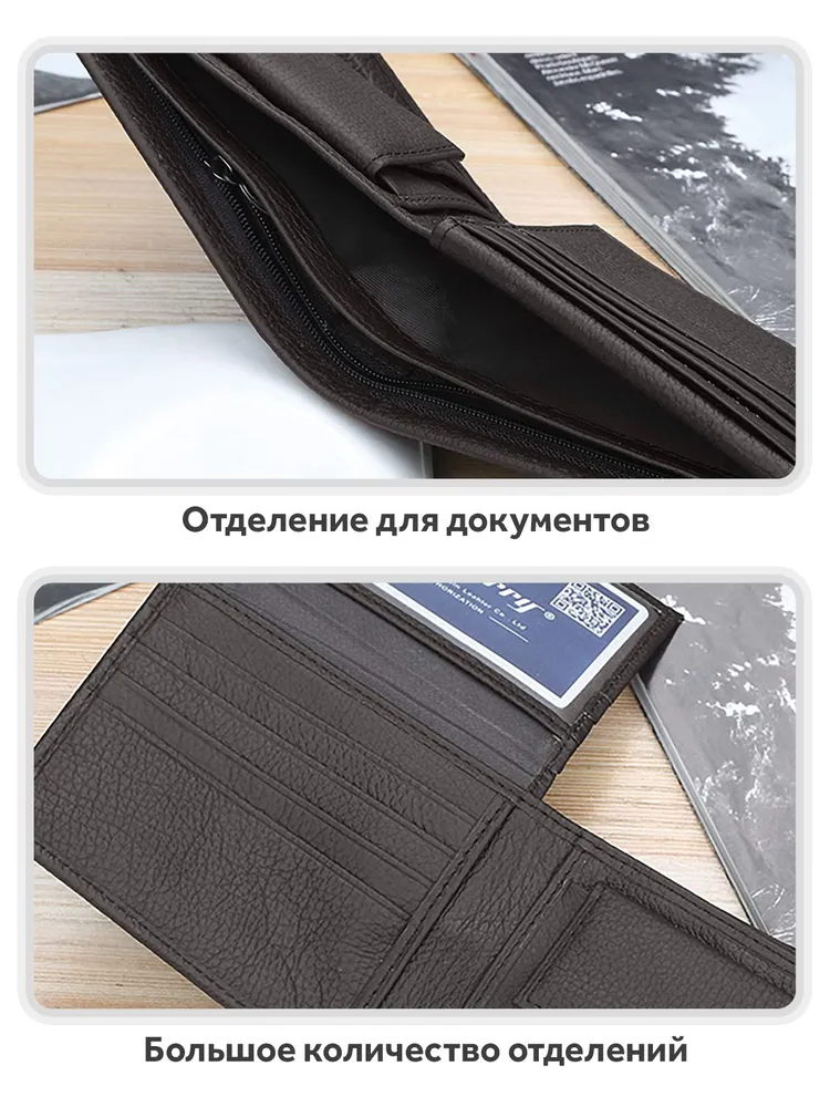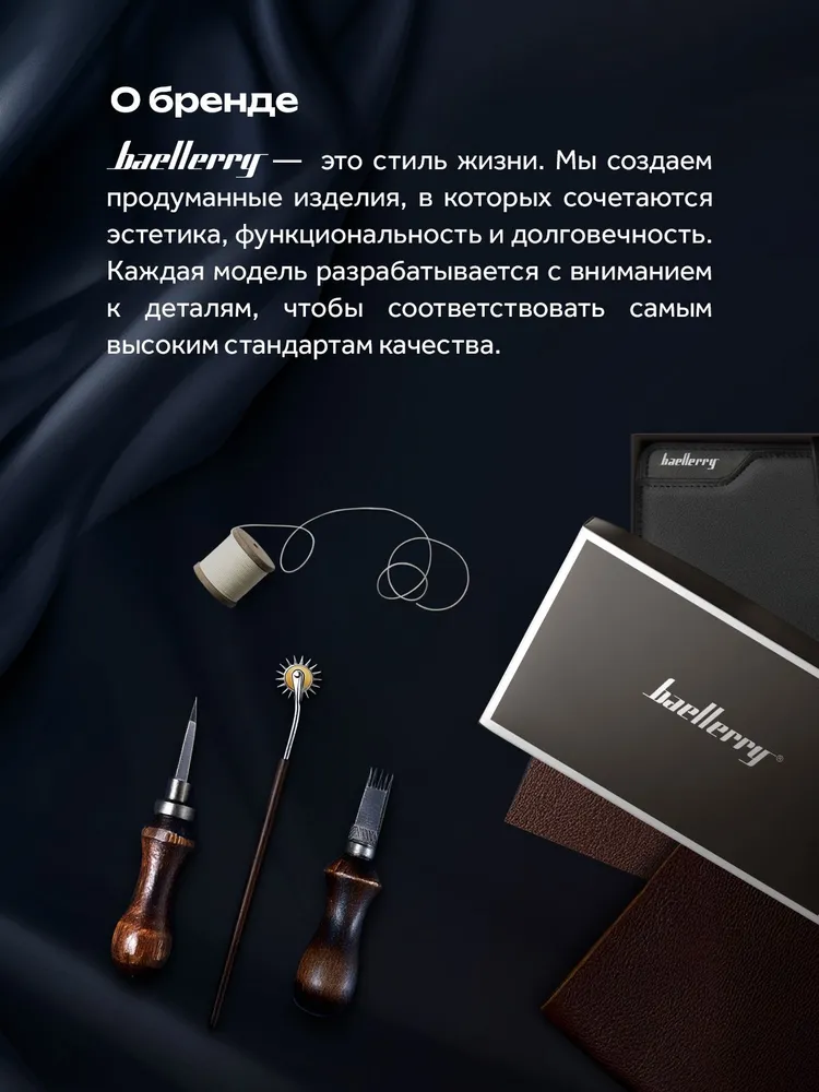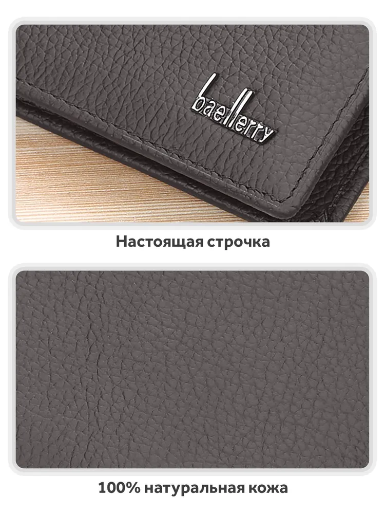 Мужской кошелек Baellerry Leather, бумажник из натуральной кожи, портмоне для карт, темно-коричневый