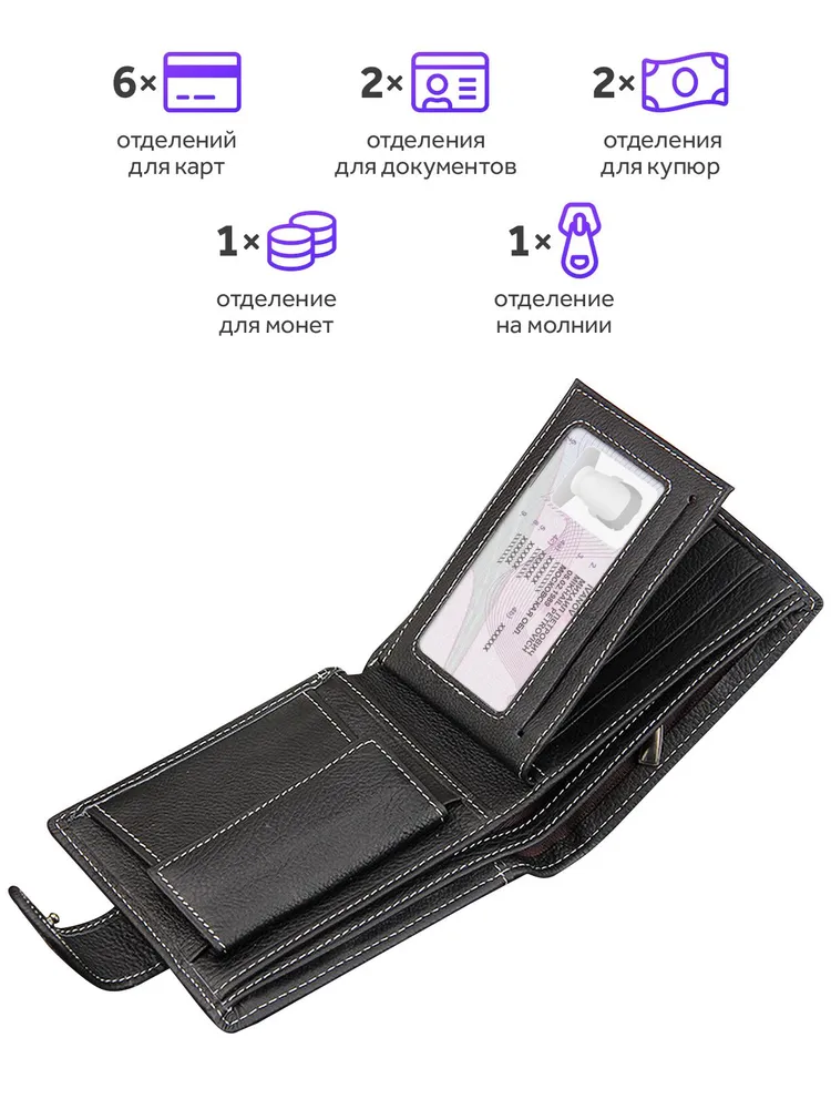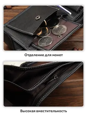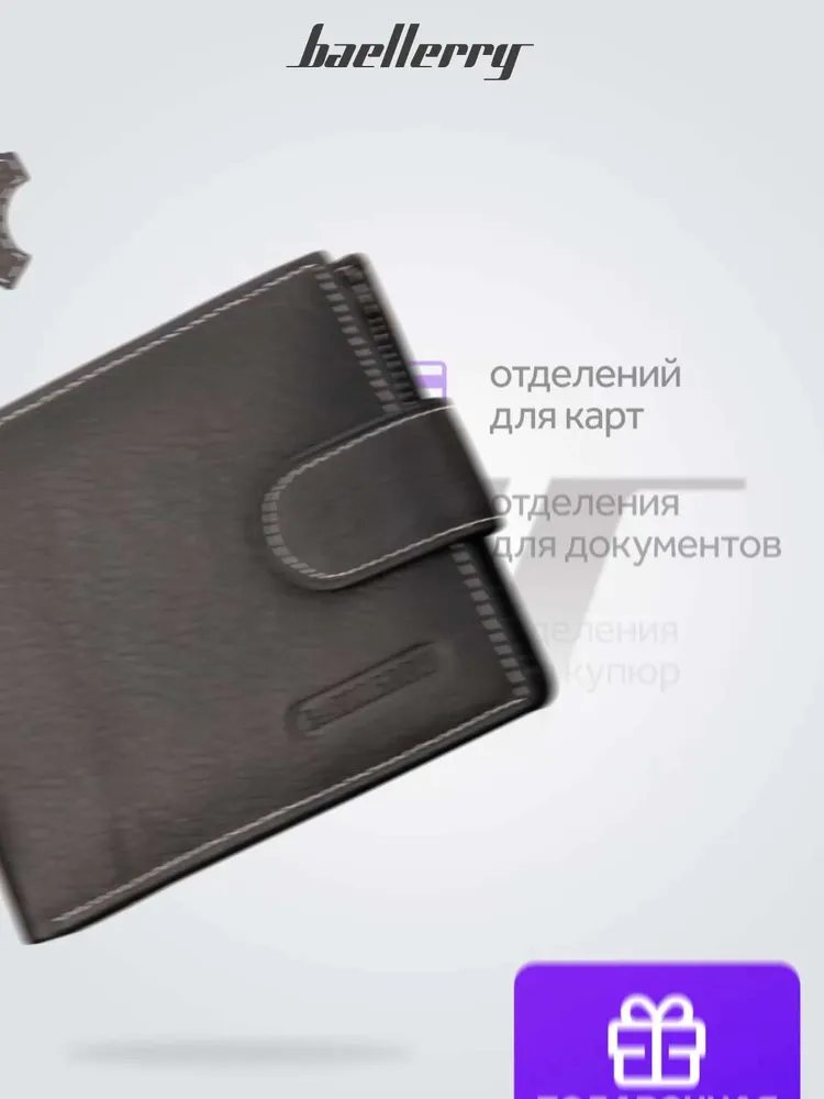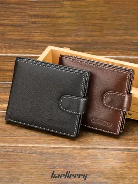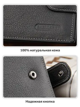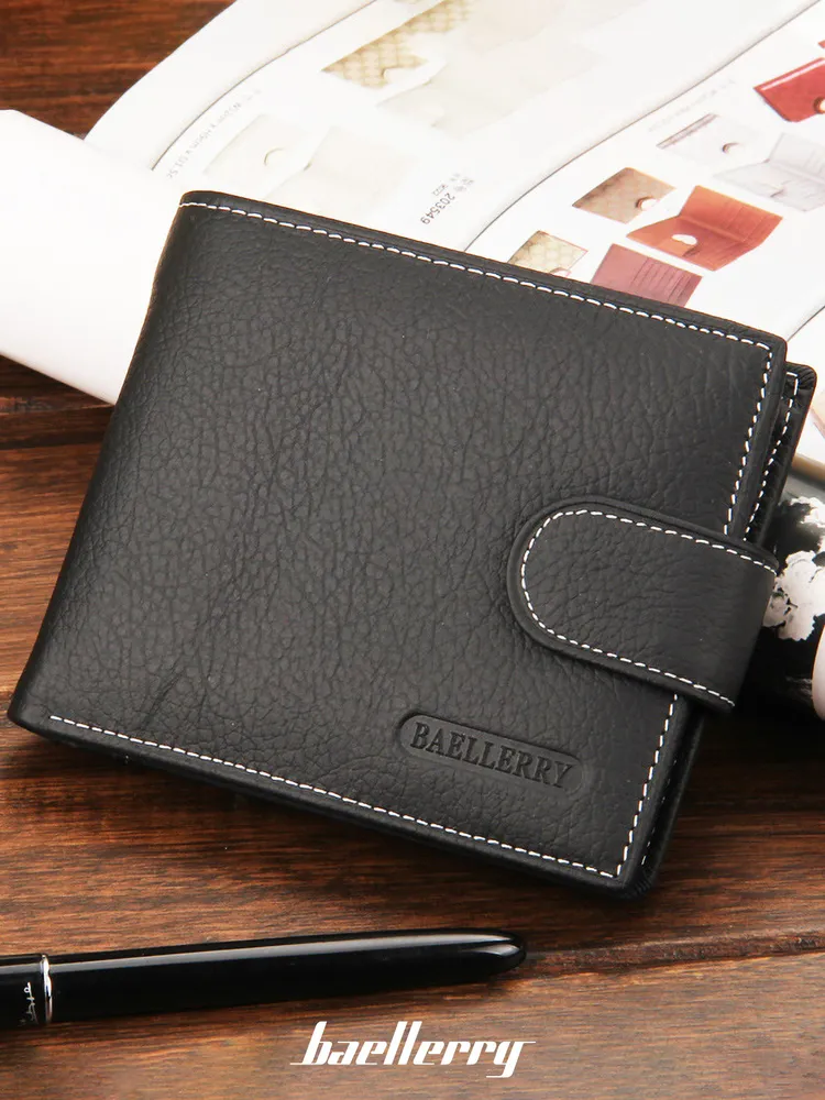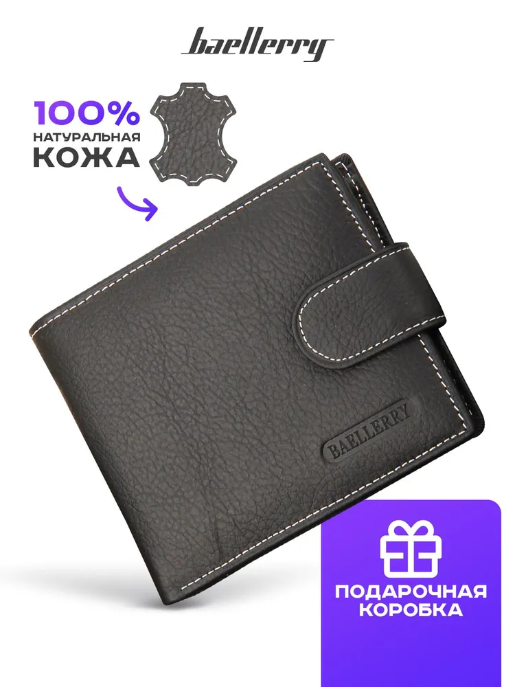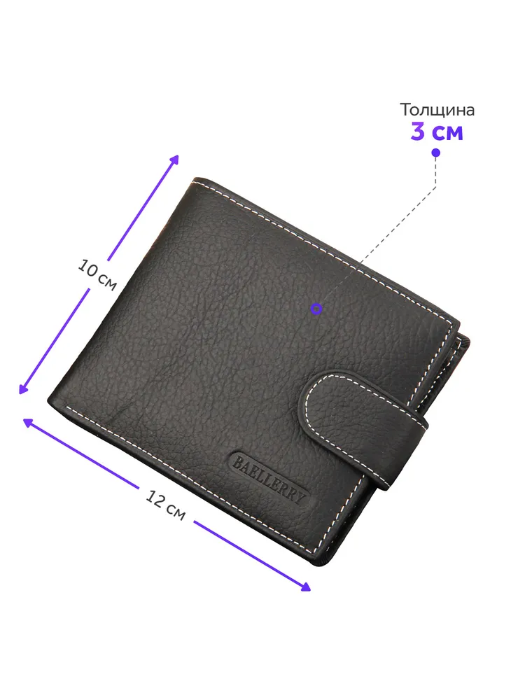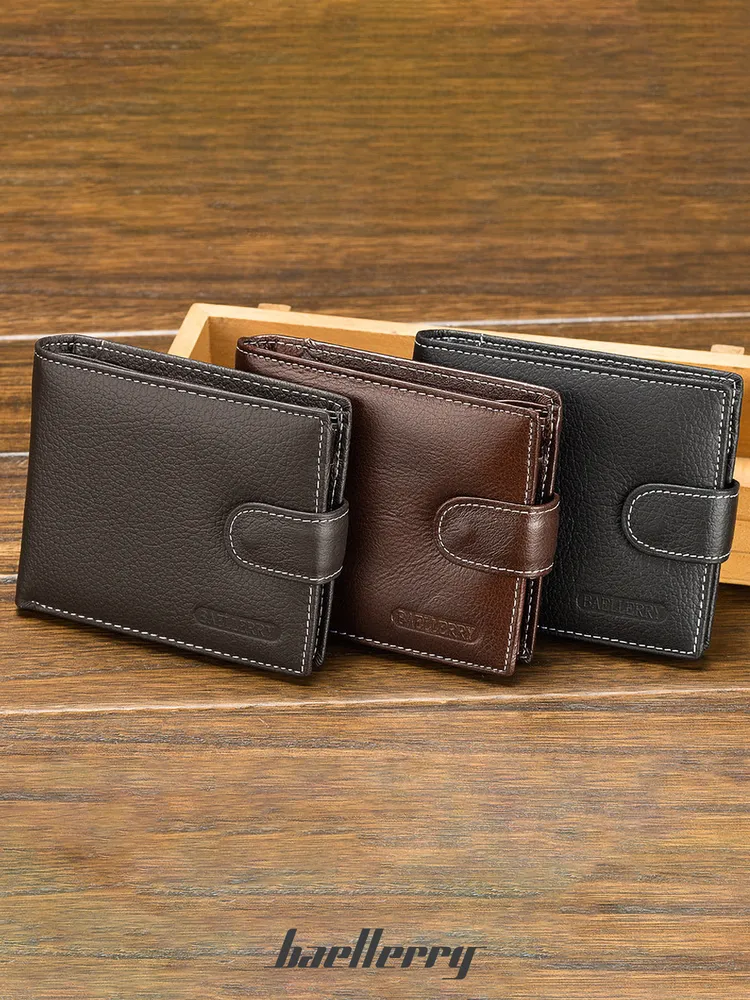 Мужской кошелек Baellerry Leather, бумажник из натуральной кожи с застежкой на кнопке, черный