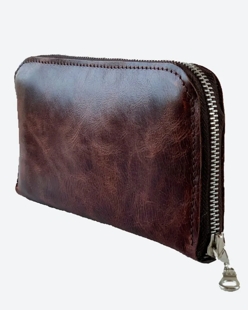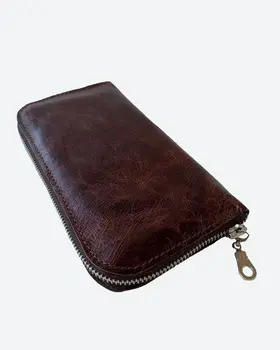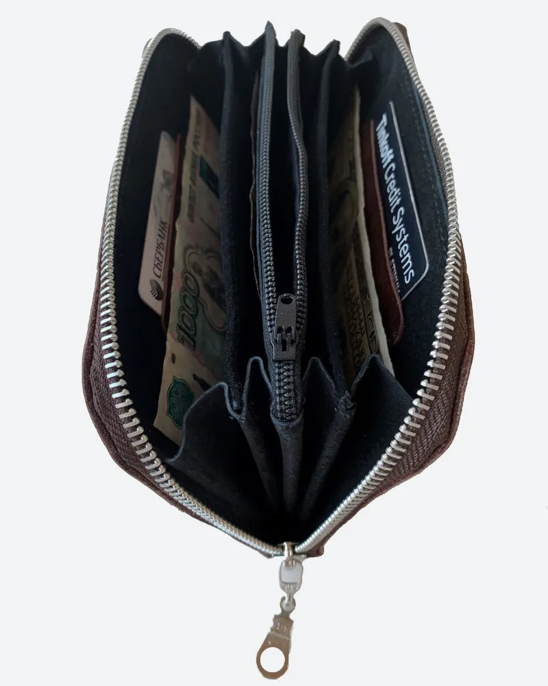 Большой вместительный кошелек из натуральной кожи • Внешние размеры 10см Х 19см (+/-5мм). Закрывается на молнию. • Вмещает в себя: бумажные купюры, банковские или дисконтные карточки, монеты. • Имеет 4 отделения для бумажных денег; 2 отделения для пластиковых карт; 1 отделение для мелочи на молнии. • Мы используем качественную плотную, но при этом мягкую кожу толщиной 1.2-1.4 мм. • Гладкая кожа достаточно устойчива к загрязнениям, легко протереть влажной тканью. • Изображение выжжено (не стирается и не трескается со временем). • Кошельки нашего бренда качественные и созданы для повседневного пользования взрослых мужчин или молодых женщин. • Женский кожаный кошелек – это идеальный подарочный вариант каждой женщине, девушке или девочке, коллеге или близкой подруге. Прекрасное дополнение любой сумки, рюкзака или портфеля. Картхолдер любимой маме (мамочке) на день матери или сестре на 8 марта. Любимому преподавателю на День учителя. • Портмоне – это роскошный подарок мужчине на день рождения (др). Стильные аксессуары брату или другу на 23 февраля (С Днём Защитника Отечества). Папе от дочки на Новый год (нг). Нужный подарок мужу на годовщину свадьбы или любимому парню ко Дню Святого Валентина (14 февраля). • Универсальные, классические, красивые аксессуары от кожевенной мастерской KAZA на праздники. Корпоративные подарки клиентам или коллегам. Презент российского производства начальнику или директору. • Ручная работа. • Производим с 2009 года. Другие товары бренда KAZA Вы можете кликнуть на изображение для перехода в карточку товара Обложки для документов Чехлы для маникюрных принадлежностей Чехлы для очков Брелки для ключей Чехлы для AIR PODS/ AIR PODS PRO Коврики для мыши Бизнес-тетради Подарочные наборы Ежедневники