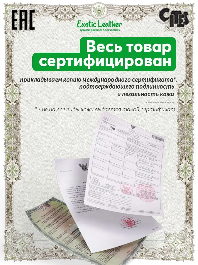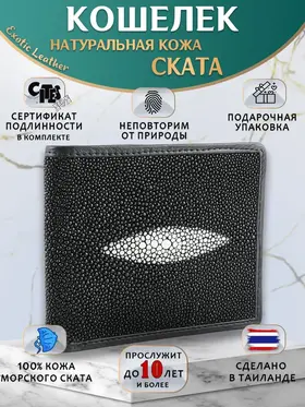 Классический мужской кошелек из натуральной кожи ската classic отличается компактным размером и превосходным качеством изготовления как снаружи, так и внутри. Кошелек изготовлен из целиковой шкурки ската, а изнутри используется натуральная телячья кожа. Очень долговечная кожа ската сделает такой кошелек лучшим подарком любому современному мужчине, запоминающимся на долгие годы. - 2 отделения для купюр, - 2 дополнительных кармана, - 8 карманов для пластиковых карт, - 2 кармашка для SIM или microSD карт. Обращаем ваше внимание, что в силу натуральности применяемых материалов, данные изделия не могут существовать в нескольких абсолютно одинаковых экземплярах, а значит доставленное вам изделие будет отличаться по внешнему виду, фактуре и рисунку кожи от представленных на фотографиях на этом сайте. Мы гарантируем, что все наши изделия изготовлены из настоящей натуральной кожи, заявленной в описании к данному товару. Легальность происхождения кожи подтверждается приложенным сертификатом. В профиле нашего бренда вы сможете найти большой ассортимент модных и стильных аксессуаров из натуральной экзотической кожи, некоторые из которых вы не найдете больше нигде в России (а иногда и в мире).