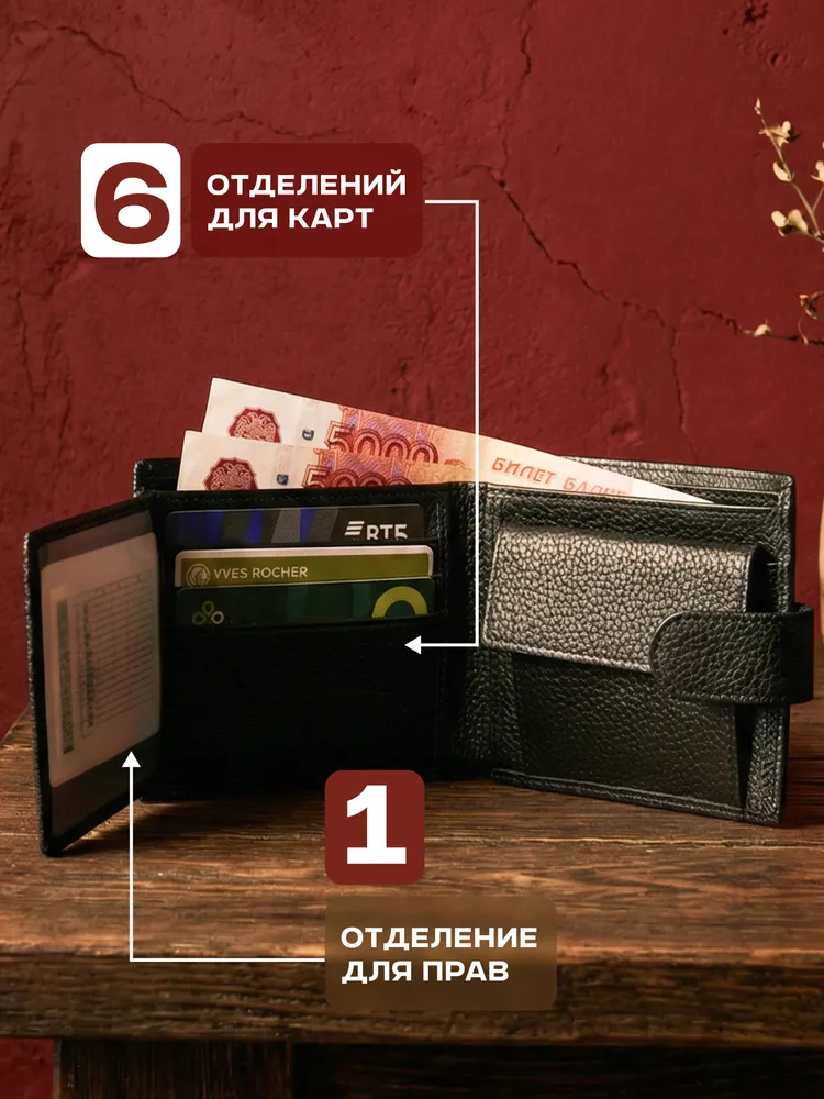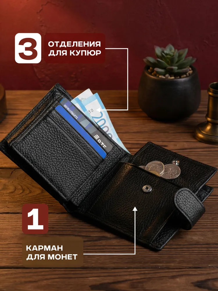 Качество Наши кошельки и портмоне делаются только из качественных натуральных материалов, которые будут вам служить верой и правдой долгие годы. Практичность В нем есть отделения не только для карт, наличных и монет, но так же и для автодокументов и паспорта. Удобство Мягкость кожи будет радовать вас от каждого прикосновения.