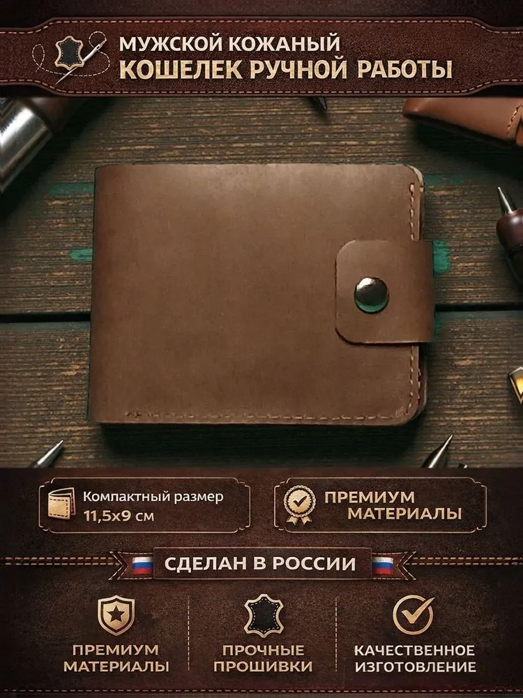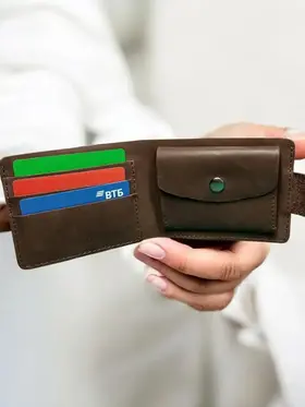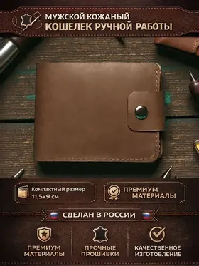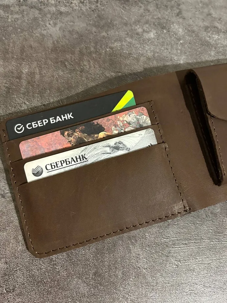 Мужской кошелек ручной работы из натуральной кожи с монетницей