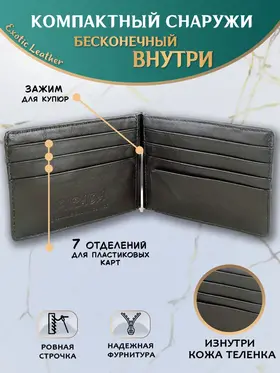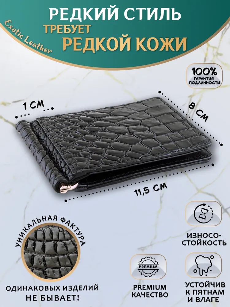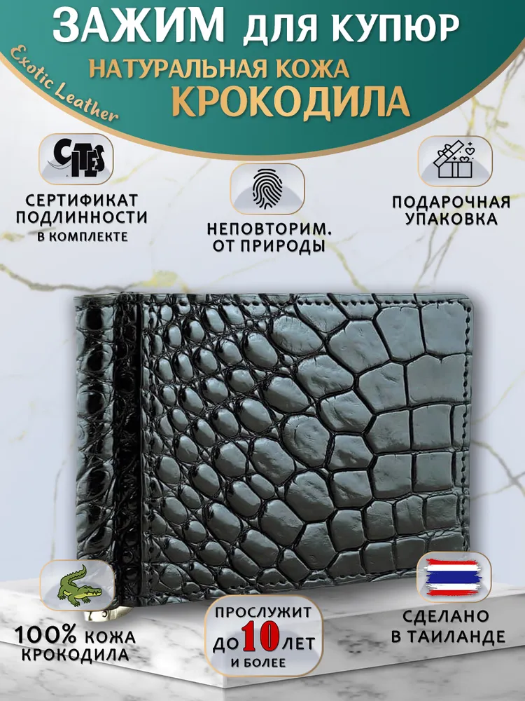 Мужское мягкое портмоне из натуральной кожи крокодила — это идеальное сочетание статуса, комфорта и функциональности для современного мужчины. Это портмоне выполнено в формате 3 в 1: оно сочетает в себе элегантный мужской кошелек, надежный зажим для денег и вместительную визитницу. Благодаря продуманной конструкции, вы получаете компактный аксессуар, который легко помещается в карман, но при этом вмещает всё необходимое. Уникальный материал: При производстве использовалась очень мягкая мелкофактурная кожа с лап и шеи сиамского крокодила (Crocodylus siamensis). Именно эти участки шкуры дают непревзойденную мягкость и эластичность, делая портмоне невероятно приятным на ощупь. Кожа имеет уникальный рисунок и текстуру — каждое изделие получается эксклюзивным. Внутренняя отделка выполнена из нежной натуральной кожи теленка, которая обеспечивает дополнительный комфорт и долговечность. Вместительность и удобство: 7 отделений для пластиковых карт и визиток — всё под рукой Удобный зажим для купюр и банкнот — надежно фиксирует деньги Компактный размер — идеально лежит в руке и в кармане Это премиальное мужское портмоне из Таиланда станет не только вашим надежным помощником в повседневной жизни, но и роскошным подарком для коллеги, начальника, мужа, отца или друга на любой праздник: день рождения, 23 февраля, Новый год или юбилей. Оцените непревзойденное качество натуральной экзотической кожи и подчеркните свой безупречный вкус. Страна производства: Таиланд